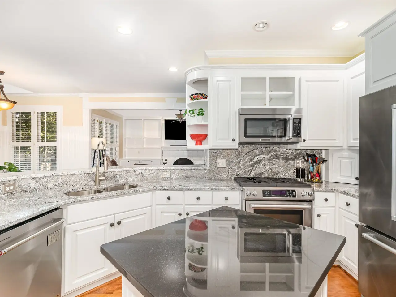 Stunning home in the highly sought-after Wentworth Park neighborhood! Elegant North Raleigh Home with Designer Upgrades & Outdoor Oasis. This residence features brand-new granite kitchen countertops, renovated spa-like Master Bath (new tile floors, new walk-in shower, new light fixtures and mirrors), and freshly painted interior, creating a bright and welcoming space. Hardwood floors, crown molding, custom cabinetry, updated guest baths, and formal living and dining rooms blend sophistication with warmth.The family room offers a cozy fireplace, while the bright eat-in kitchen and spacious upstairs bonus room with rear staircase provide plenty of space to gather.Step outside to enjoy the screened-in porch, an expansive full-length deck, and a park-like backyard with lighted pathways. Perfectly located in North Raleigh, just minutes from top restaurants and shopping.
