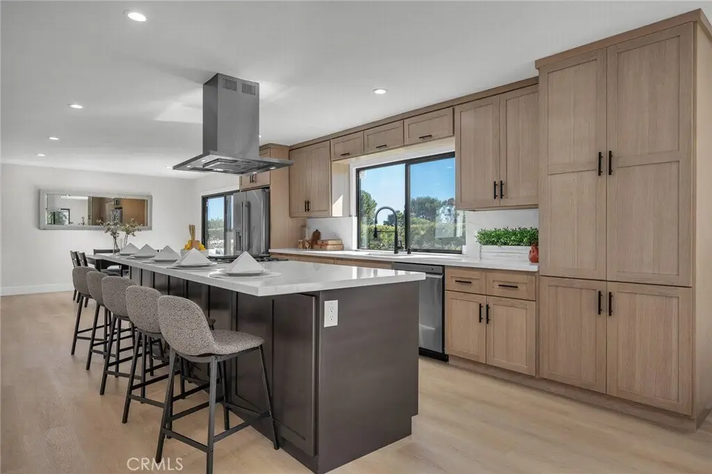Welcome to this beautifully updated & remodeled 4-bedroom, 3-bathroom home, spanning approximately 2,450 square feet on a generous 7,481-square-foot lot with one bedroom and bathroom located on the first floor. Thoughtfully transformed from its original state, this home has been upgraded with modern, high-end finishes, while maintaining an inviting, timeless appeal. The open-concept design downstairs seamlessly connects the living, dining, & kitchen spaces, making it perfect for both entertaining & family living. Upstairs, the enlarged primary bath offers a spa-like retreat, complete with luxurious finishes & a modern touch. Nestled in a prestigious, peaceful cul-de-sac within the highly sought-after Rancho Palos Verdes neighborhood, this home is part of one of the top school districts in the nation, offering the best in education & community. The home features new 6" luxury Bologna vinyl plank flooring, oak & maple cabinetry, Quartz Koville Calacatta Serene countertops that bring a sleek, contemporary style throughout. A brand-new air conditioning & heating system ensures optimal comfort year-round, while the upgraded electrical panel & double-pane windows offer enhanced energy efficiency. Kohler fixtures add a touch of elegance to the kitchen, and sleek black fixtures enhance the bathrooms, complemented by dimmable LED vanity mirrors with an anti-fog feature. The stunning new cedar front door, concrete roof tiles, and fresh landscaping enhance the home’s curb appeal. A new concrete driveway and patio create a welcoming entry, and the home’s Swiss Coffee interior paint, paired with Pure White exterior paint and black trim, gives it a fresh, modern look. The kitchen is a chef’s dream, featuring brand-new stainless steel appliances, ample counter space, and a layout that's perfect for both cooking and entertaining. The primary suite offers a spacious retreat, complete with an enormous closet with built-in storage. All bathrooms have been meticulously remodeled with high-end finishes, and the home also boasts a beautifully remodeled chimney. Outside, the backyard offers breathtaking views of the Palos Verdes Hill, providing the perfect setting for relaxation or entertaining guests. This home blends modern design with traditional charm, offering a truly remarkable space for its new owner. Don’t miss out on the opportunity to make this stunning property your own!