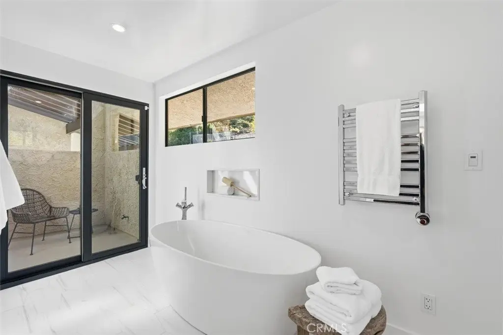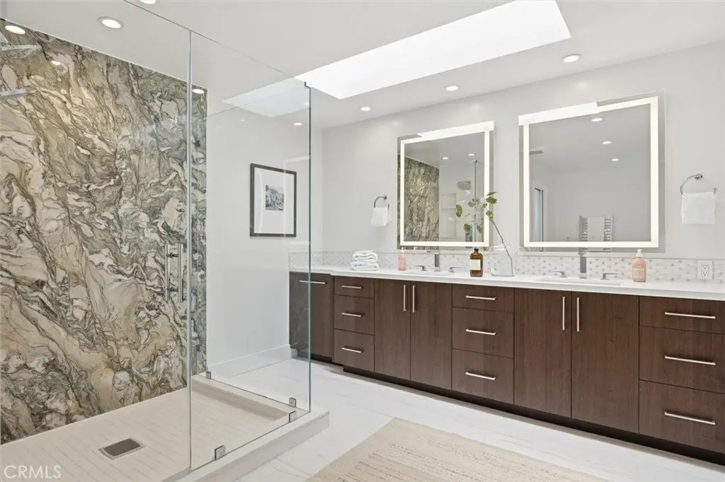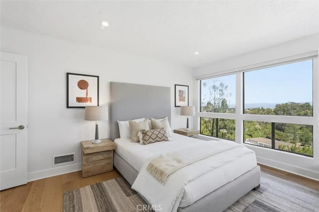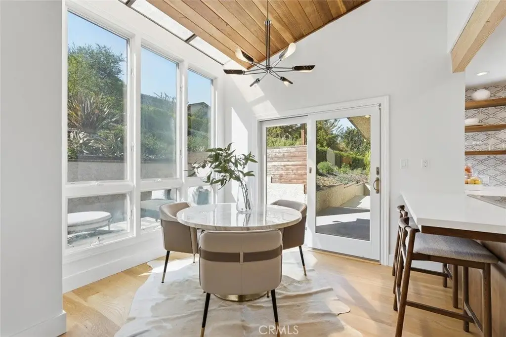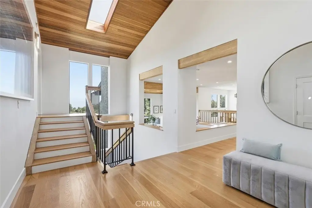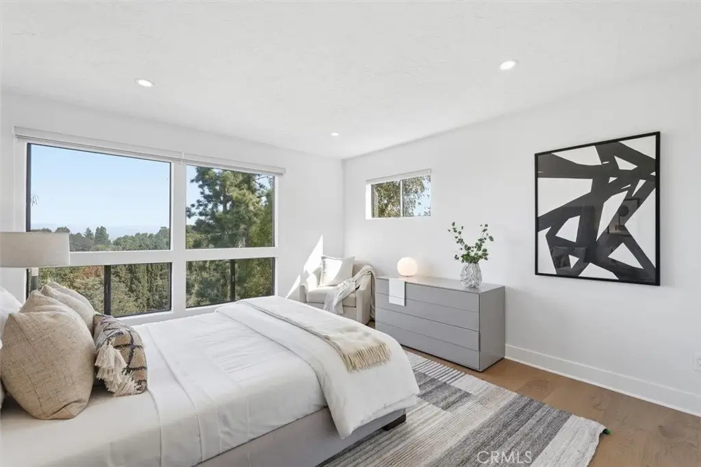 Nestled in the quiet hills of Rancho Palos Verdes, this is the private luxury home you have been waiting for. Boasting stunning views and elegant finishes throughout, this home is a true retreat where you can unwind from bright, peaceful mornings to golden, sunlit evenings. Set at the end of a tree-lined cul-de-sac and private driveway, this extensively remodeled modern residence blends timeless design with thoughtful craftsmanship. Every detail has been carefully chosen to create a home that is elevated, warm, and inviting. Surrounded by nature and framed by panoramic downtown and city-light views, this property offers a sense of calm and seclusion that is rare to find. Resting on over half an acre, the flexible floor plan includes four bedrooms, formal living and dining rooms, a generous family room boasting serene views, and a versatile flex space ideal for an office, media room, or home gym. The gourmet kitchen is a showpiece with Subzero and Wolf appliances, large island perfect for entertaining, and built-in cabinetry throughout. The spacious primary suite offers vaulted ceilings, sweeping city views. The primary bath features a freestanding soaking tub and an expansive glass-enclosed shower, creating a spa-like atmosphere. Each bathroom features modern finishes and attention to detail. Additional highlights include engineered hardwood flooring, thoughtfully placed lighting, and custom built-ins throughout. Outside, multiple patios and deck provide calm spaces for dining and entertaining, complemented by a hot tub and lush landscaping. A three-car garage plus a large driveway provides ample parking for guests. Conveniently located near Peninsula Center’s shops and restaurants and within the award-winning Palos Verdes Peninsula school district, this home offers a perfect blend of quiet luxury, privacy, and sophistication. A rare opportunity to experience the essence of refined living.