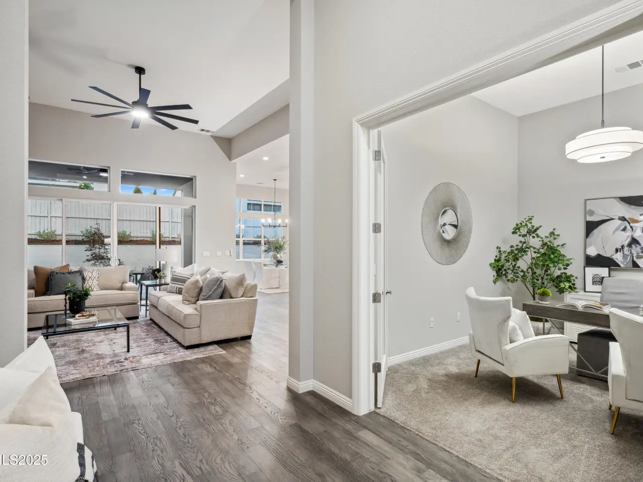 Discover modern luxury living in this exquisite single-level home, ideally situated within the gated community of Latigo at Rancharrah. Built in 2022, this Toll Brothers "Allure" model embodies practical design and sophisticated comfort. The thoughtful layout, features three en-suite bedrooms, a dedicated office/den, and an expansive great room centered around a gourmet kitchen. Extending the living space outdoors, enjoy a covered, cozy al fresco space with a low-maintenance backyard ensuring an effortlessly enjoyable indoor-outdoor lifestyle. Inside, vaulted ceilings create a grand impression in this smartly designed warm home, where no space is wasted. The interior shines with luxury upgrades: rich oak flooring, elegant shaker cabinets, dramatic sliding glass doors, designer light fixtures, and state-of-the-art appliances. The gourmet kitchen, a true chef's haven, offers ample counter space and a large island that serves as a breakfast bar. The adjacent dining area provides an ideal setting for both family meals and intimate gatherings. The primary suite is a sanctuary, complete with a generous walk-in closet and a spacious bathroom featuring dual vanities and a roll-in shower. This incredibly livable home gains additional appeal from its location within the Rancharrah community, anchored by The Club at Rancharrah. The 40,000-square-foot social epicenter forms the vibrant core of the 141-acre private gated community, committed to delivering exceptional experiences. Work, play, and relax across its offerings: fine dining, a luxurious spa, a state-of-the-art fitness center, versatile meeting & event spaces, and diverse outdoor recreation. A tour reveals a resort-style pool & spa, private restaurant & bar, a three-level fitness center with private & group classes, bocce and pickleball courts, and a private spa & nail salon complete with full-service treatments, saunas, and steam rooms.