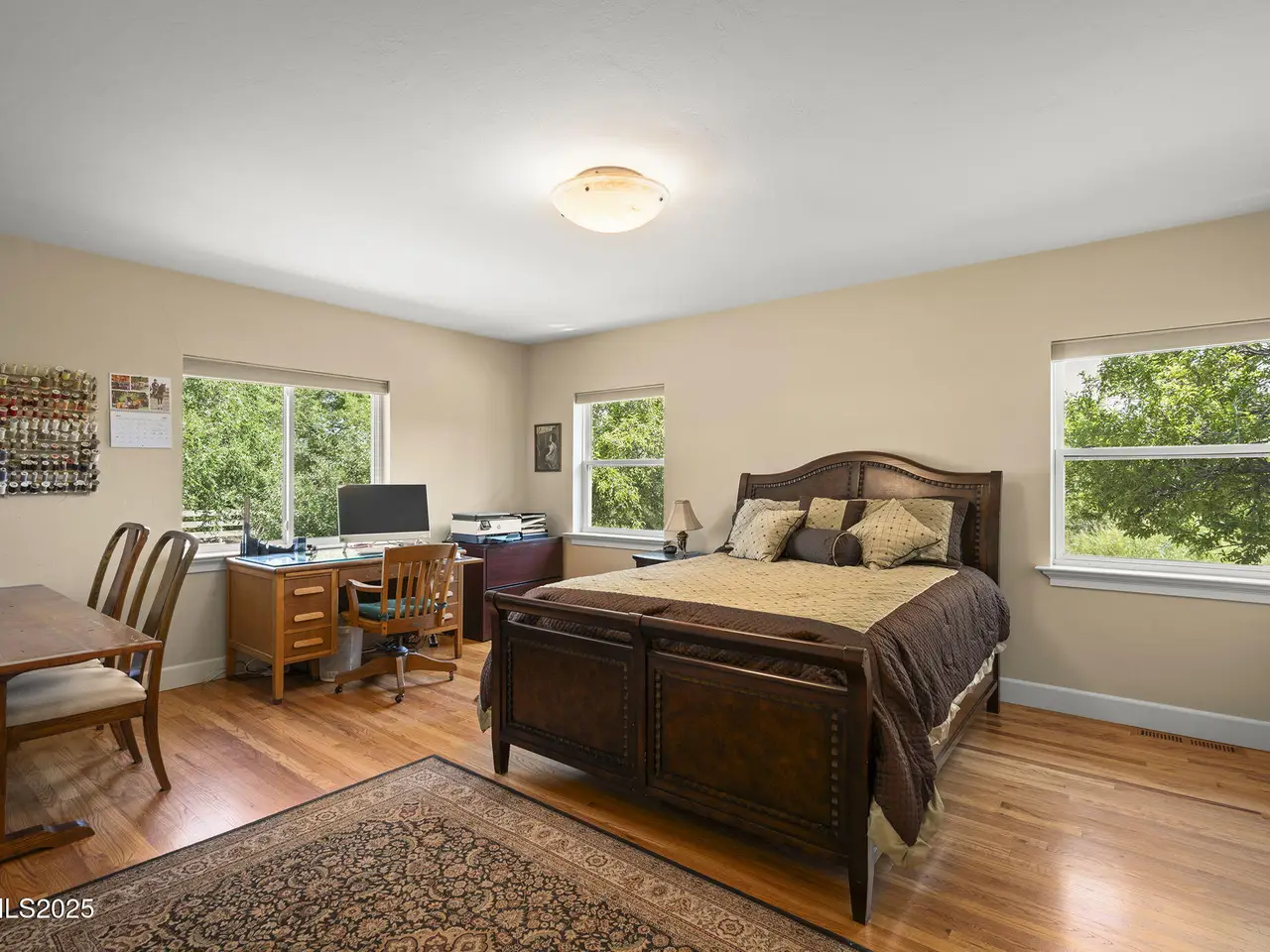 - Hardwood and travertine flooring