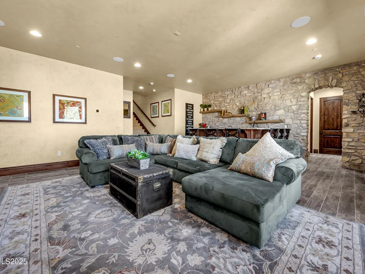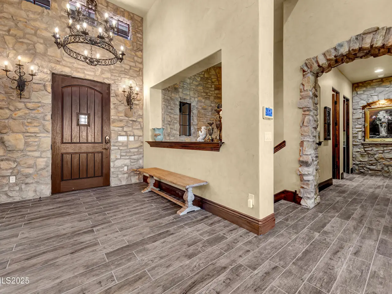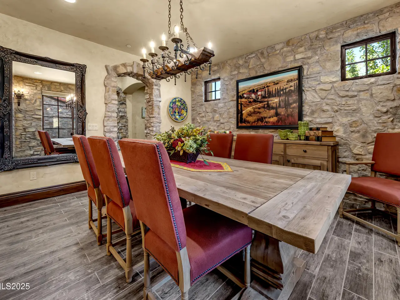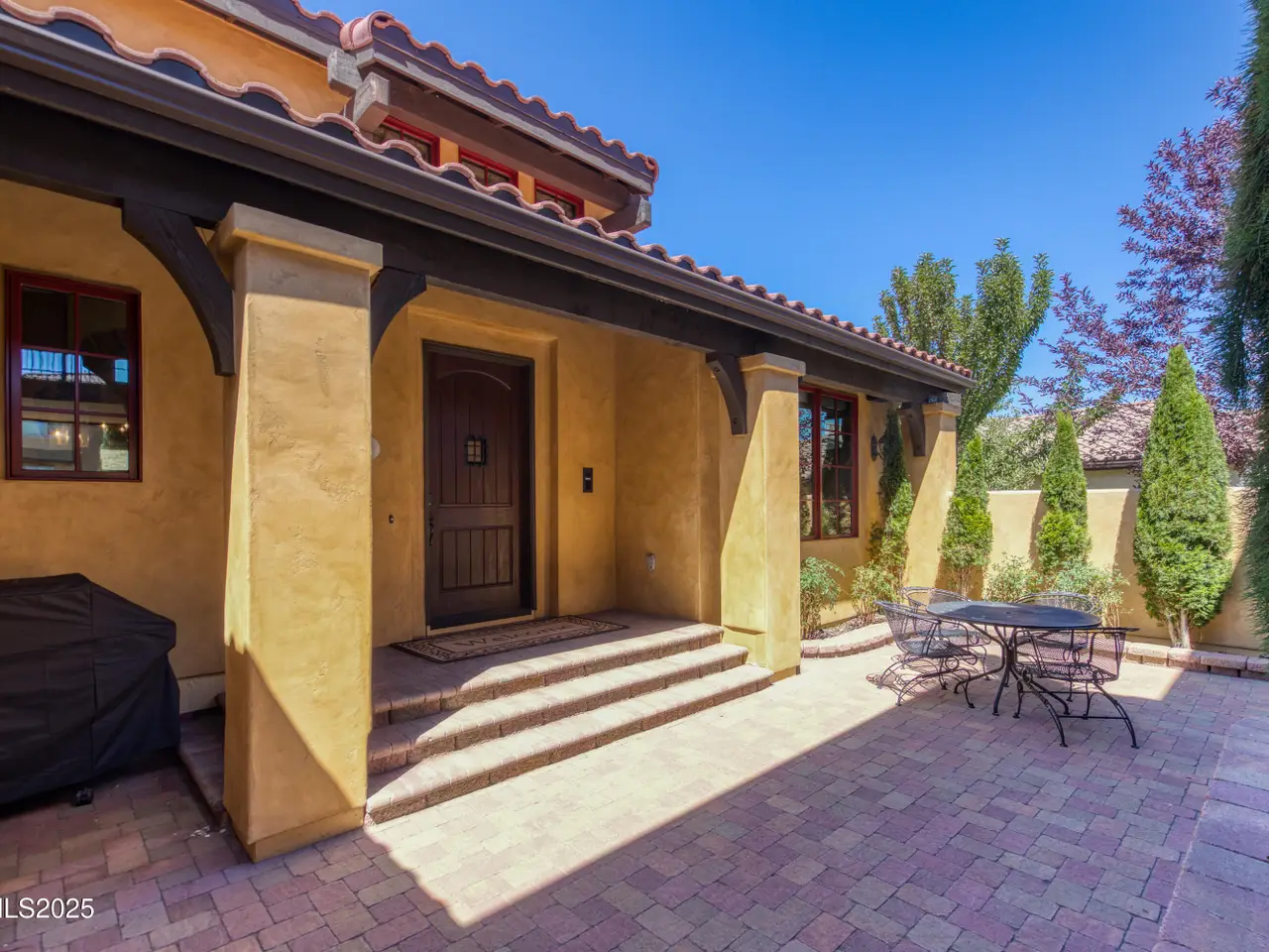 Tucked within the prestigious Villagio community, 3166 Vista Favoloso is a European inspired, private gated communtiy. This stunning Italian Villa home built in 2017, offers refined luxury and security in a tranquil and beautiful setting. This home features four spacious en-suite bedrooms, a casita, and a living area of 4,939 square feet. Thoughtfully designed with luxury spaces, including a courtyard, the primary bedroom, kitchen and great room on the main level, this home features plastered walls with unique faux painting. It combines villa elegance, timeless style, comfort and functionality. At the heart of the house is a spacious layout with high ceilings, a lovely gas fireplace, and a beautiful kitchen that caters to both casual meals and gourmet dining. The home has tile flooring throughout, knotty alder wood doors, encased alder windows, exquisite hand-forged lighting fixtures and spectacular stone walls. The wide hallways and wide doors make the space feel warm and comfortable. Located in the premier southwest area of Reno, this home offers luxury and stunning mountain views. This home is by far the most beautiful in the coveted Villagio complex. In addition to the separate guest quarters or office casita, this home features awe-inspiring elegance and upgrades in every room, along with a downstairs TV room, laundry area an a full-service bar. A covered patio with a stunning private mountain view on the lower level also enhances the property, making this home ideal for multigenerational and family living. A beautiful tile roof, upgraded double-pane windows, a low-maintenance, well-landscaped yet stunning outdoor yard, with just the right amount of lawn and space, along with an exquisite stucco and stone exterior, including water features and an outdoor fire pit, all contribute to the timeless appeal You will not be disappointed when you view this stunning property. No sign on property.