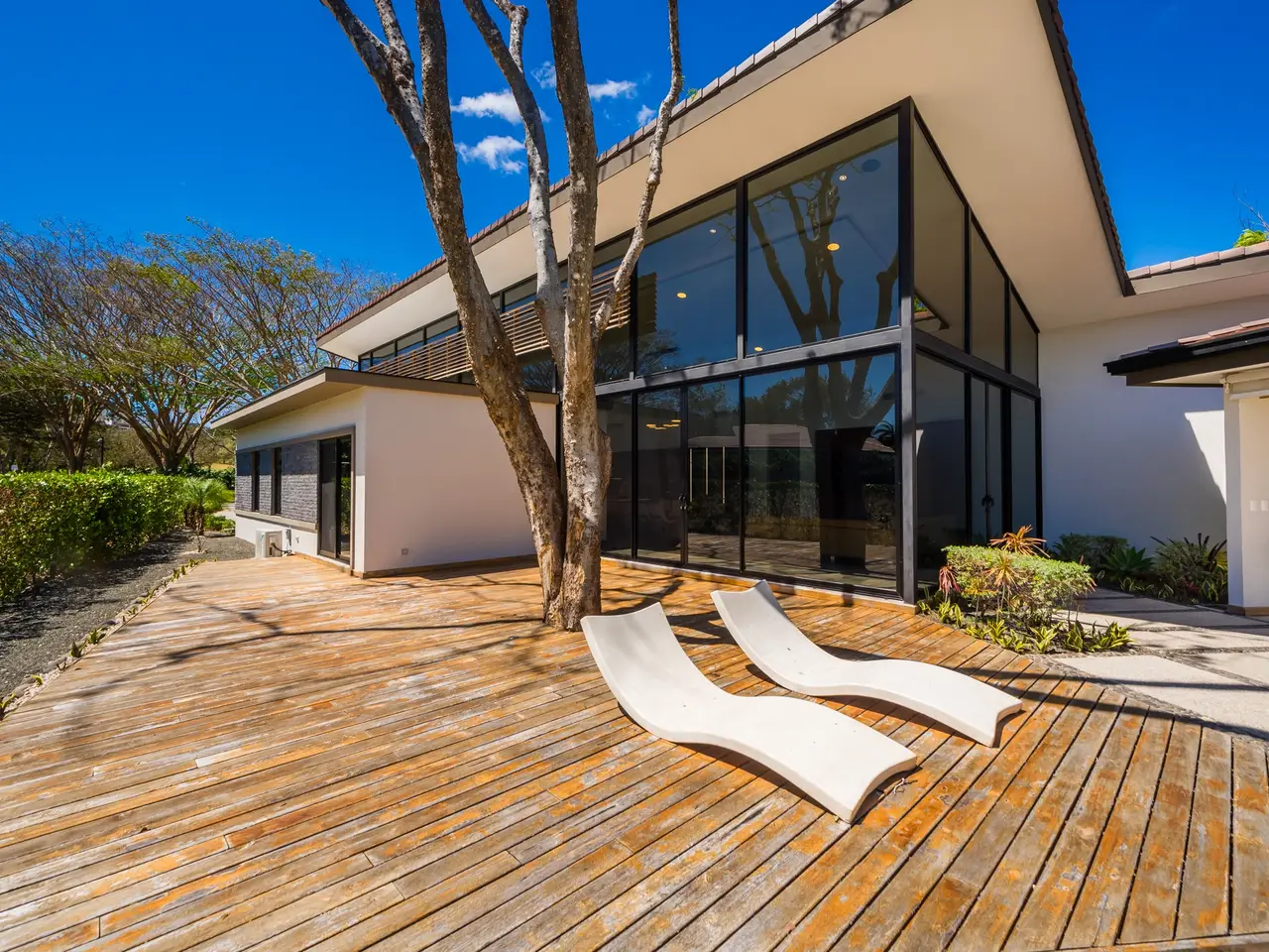 Located within the exclusive Llama del Bosque homes in Reserva Conchal, this single-story masterpiece epitomizes modern architectural elegance. Its strategic positioning alongside the enchanting golf course seamlessly integrates the residence with the vibrant natural surroundings, offering a privileged connection to Playa Conchal—one of the world's most renowned beaches. The interior unfolds to reveal four generously appointed bedrooms, including two luxurious master suites and two comfortable double bedrooms, all featuring private bathrooms and air conditioning. The open design of the social areas creates a harmonious, sunlit environment, blending the kitchen, living room, and dining area. High ceilings amplify the sense of spaciousness, offering breathtaking views of mountains, terraces, gardens, and the inviting pool. Beyond aesthetics, the residence is thoughtfully designed for convenience and luxury. Highlights include a covered terrace with a BBQ, TV, and outdoor furniture set, a swimming pool, jacuzzi, and well-maintained gardens with picturesque views. Practical features such as a laundry area, spacious pantry, storage room, covered garage for three cars, and parking for four vehicles enhance the overall functionality of the home. Situated on the pristine white sands of Playa Conchal, Reserva Conchal spans 2,300 acres and is a premier luxury gated community in Guanacaste, Costa Rica. Its A+ amenities cater to diverse interests, offering a PGA-level golf course, tennis courts, a modern fitness center, hiking and biking trails, and a Beach Club with multiple pools, paddleboards, kayaks, and bikes. Access to 13 bars, restaurants, and two spas at discounted rates, along with proximity to expat schools and the Liberia international airport, make Reserva Conchal a haven for families, retirees, and vacation rentals. Embark on the journey to tropical paradise and embrace the dream lifestyle that Reserva Conchal offers!