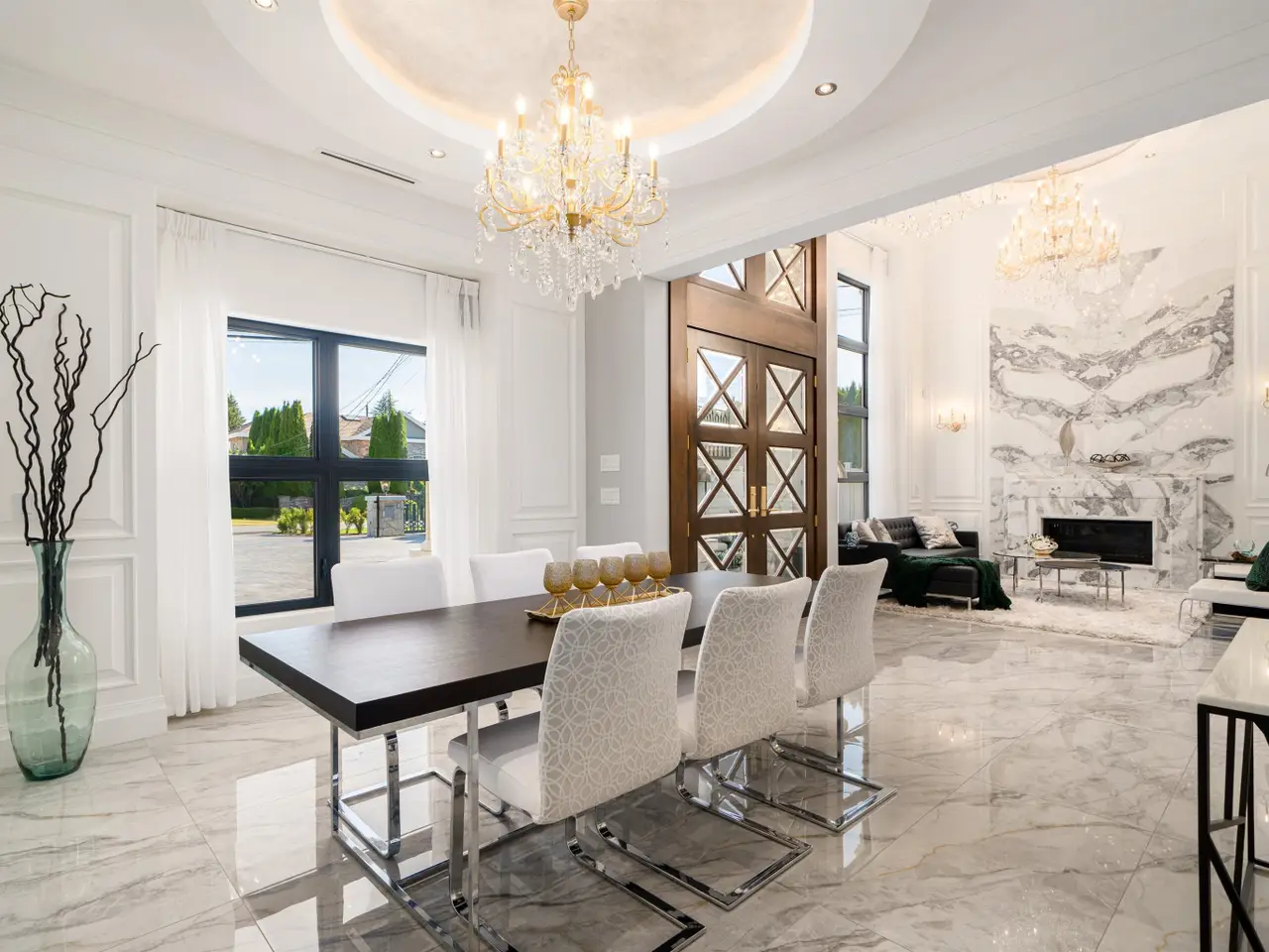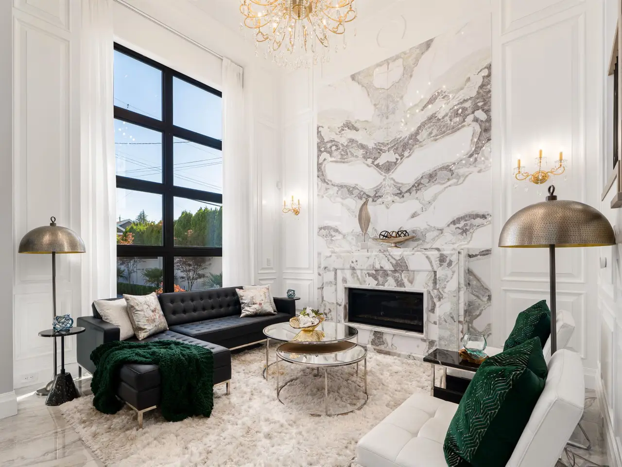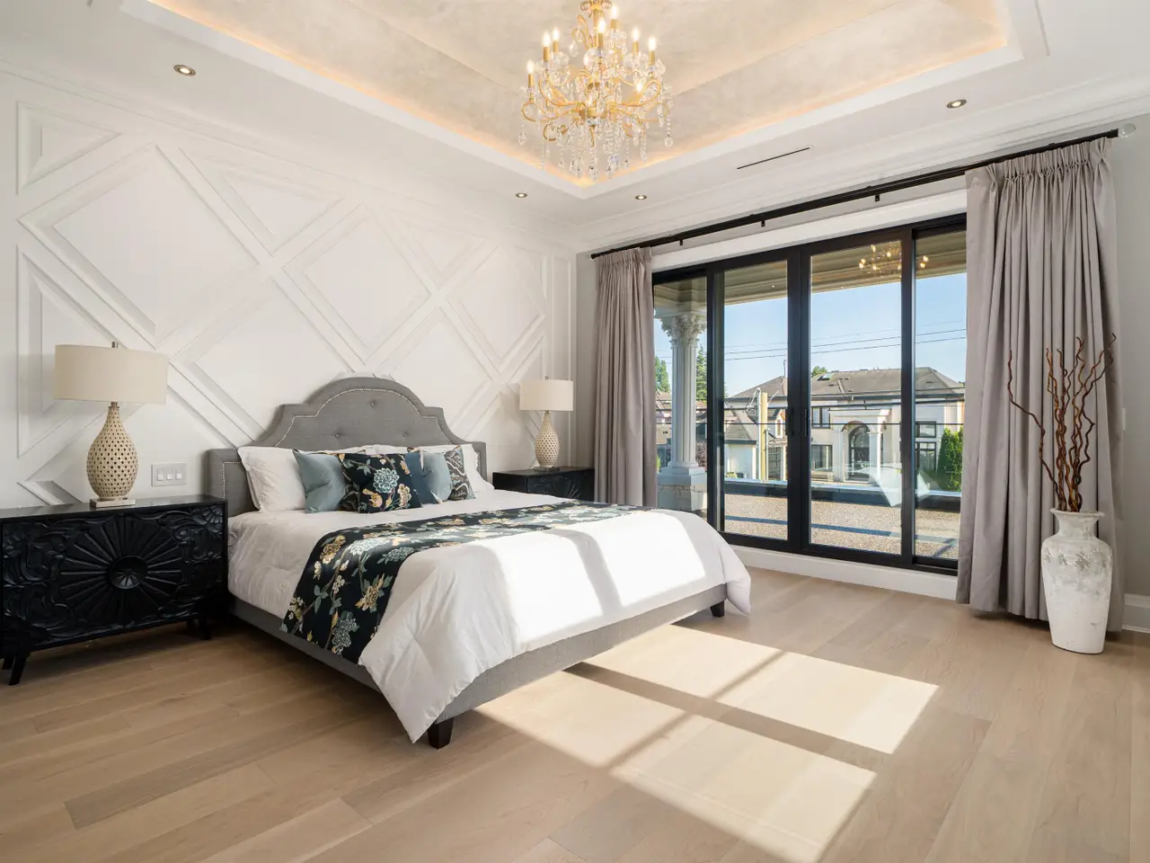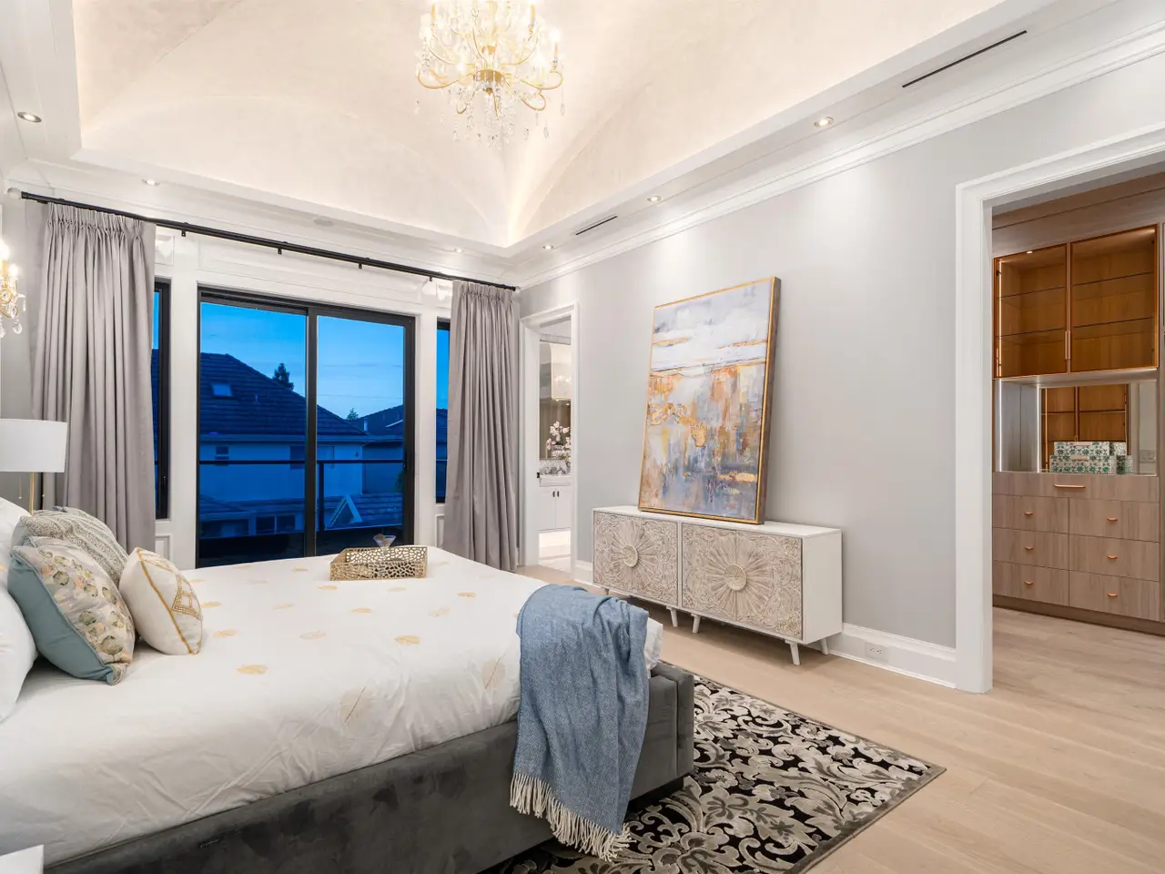 Elegant and luxurious custom home in the prestigious Granville area! North–South facing with a grand foyer featuring a stunning circular ceiling design and artistic wall accents. Italian marble flooring throughout, adorned with dazzling chandeliers. Spacious family room boasts a soaring vaulted ceiling, custom marble wall panel, and a warm fireplace. Gourmet kitchen with European marble countertops, top–tier Miele appliances, and premium cabinetry. Two master bedrooms, one with an expansive sundeck; all four upstairs bedrooms include walk-in closets. Legal suite below. Smart home system with motorized curtains, A/C, HRV, Hikvision intercom. Enjoy a fully equipped media room with wet bar, plus a private sauna. A true masterpiece for the discerning buyer!