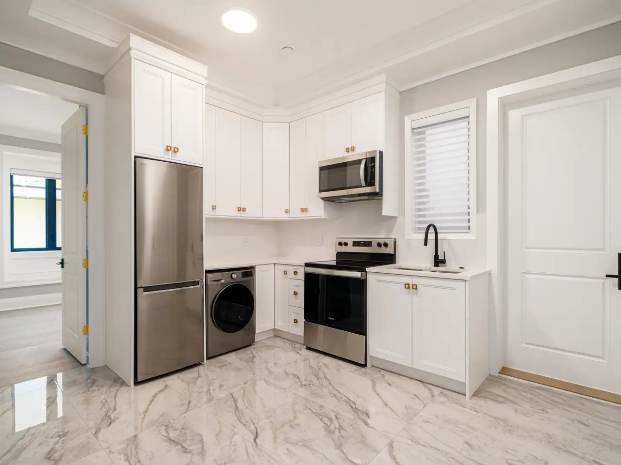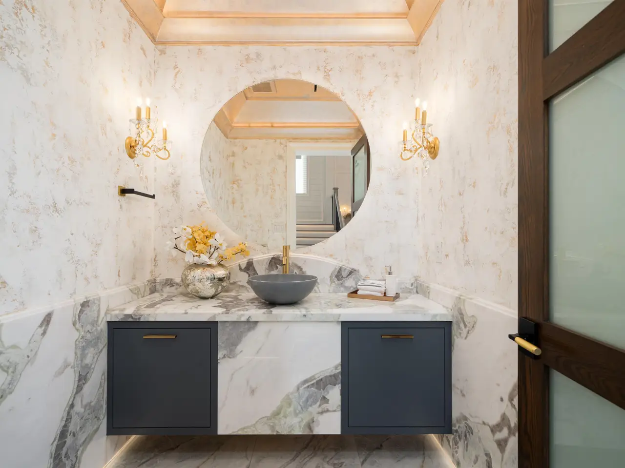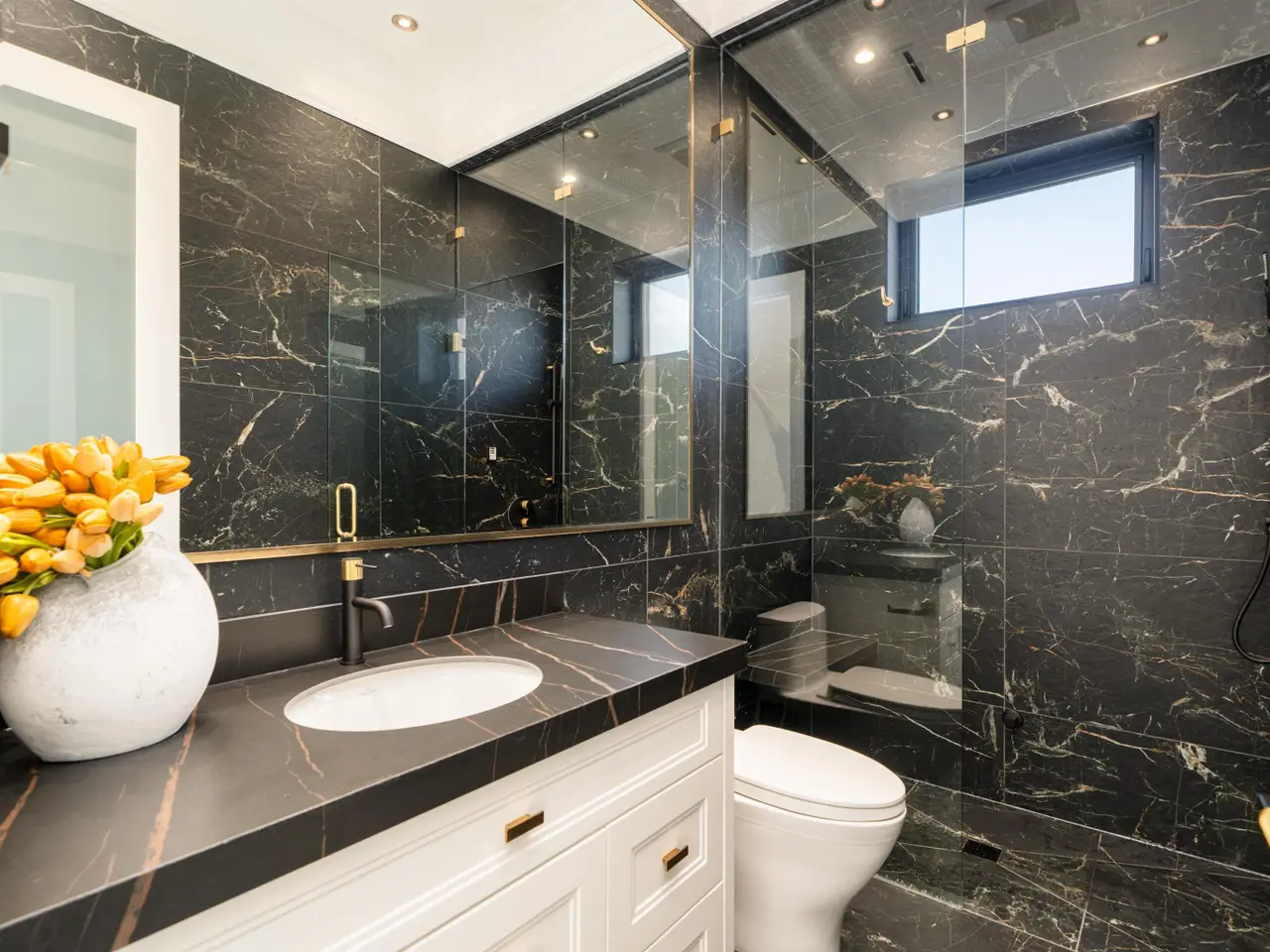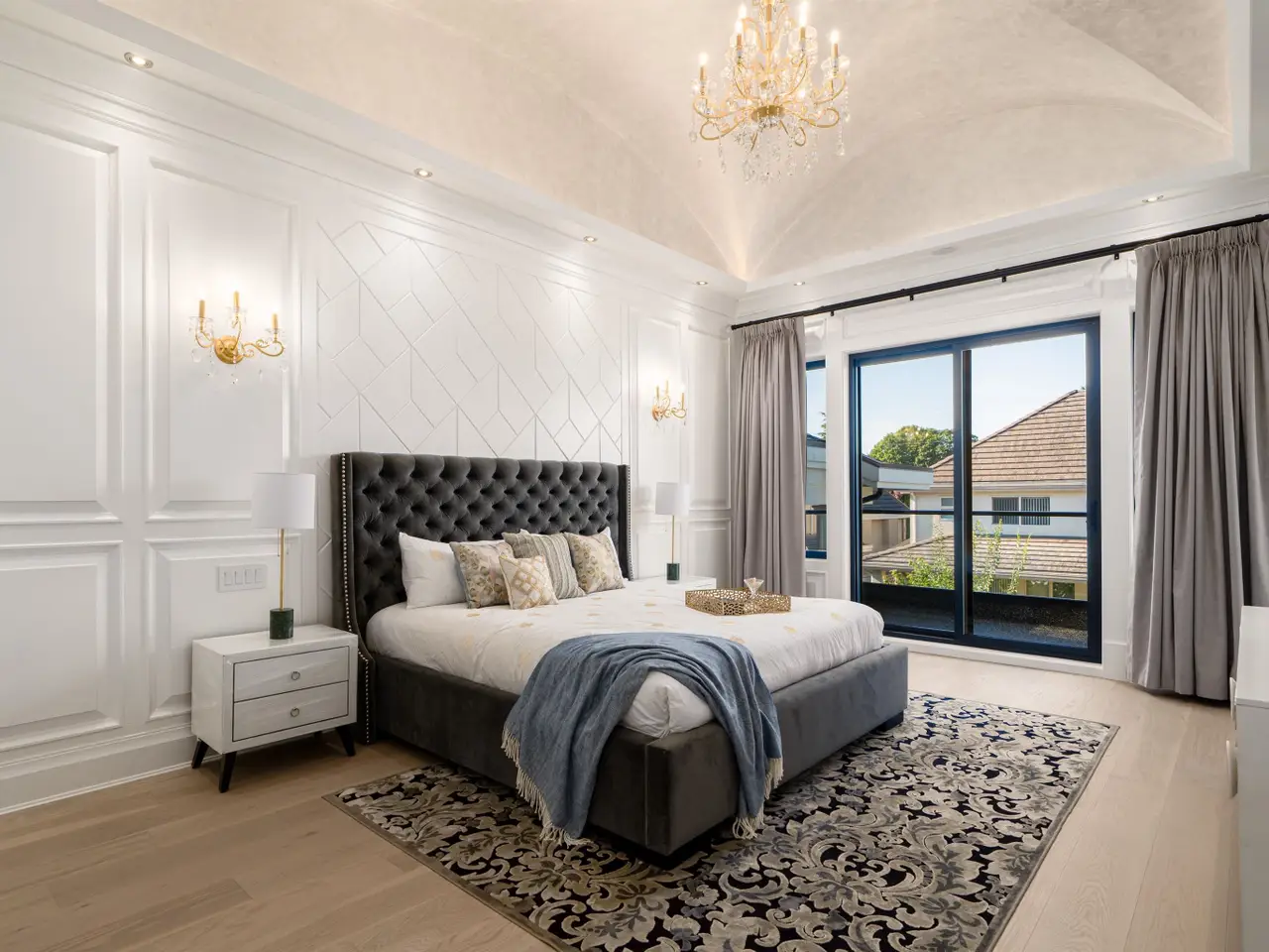 Elegant and luxurious custom home in the prestigious Granville area! North–South facing with a grand foyer featuring a stunning circular ceiling design and artistic wall accents. Italian marble flooring throughout, adorned with dazzling chandeliers. Spacious family room boasts a soaring vaulted ceiling, custom marble wall panel, and a warm fireplace. Gourmet kitchen with European marble countertops, top–tier Miele appliances, and premium cabinetry. Two master bedrooms, one with an expansive sundeck; all four upstairs bedrooms include walk-in closets. Legal suite below. Smart home system with motorized curtains, A/C, HRV, Hikvision intercom. Enjoy a fully equipped media room with wet bar, plus a private sauna. A true masterpiece for the discerning buyer!