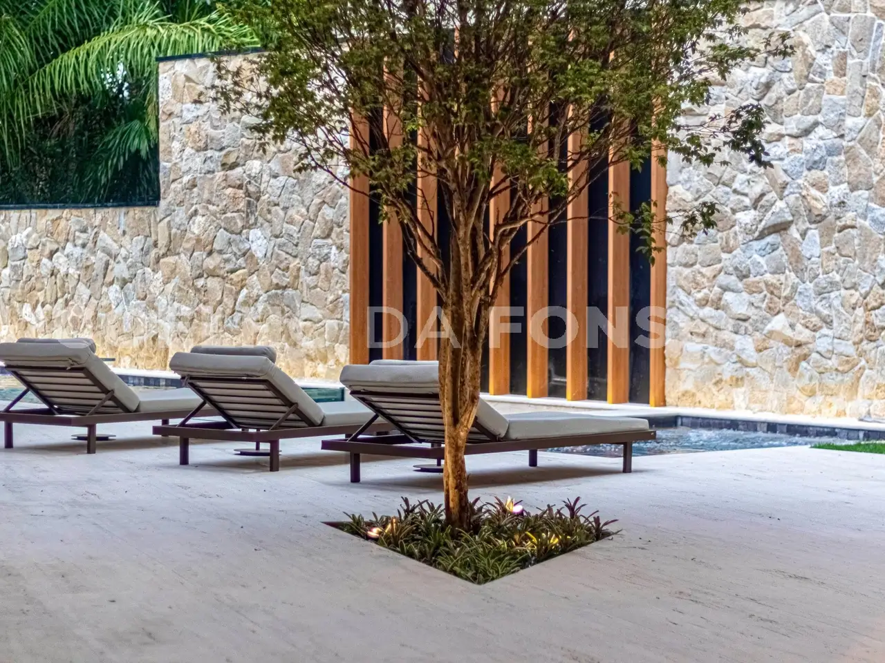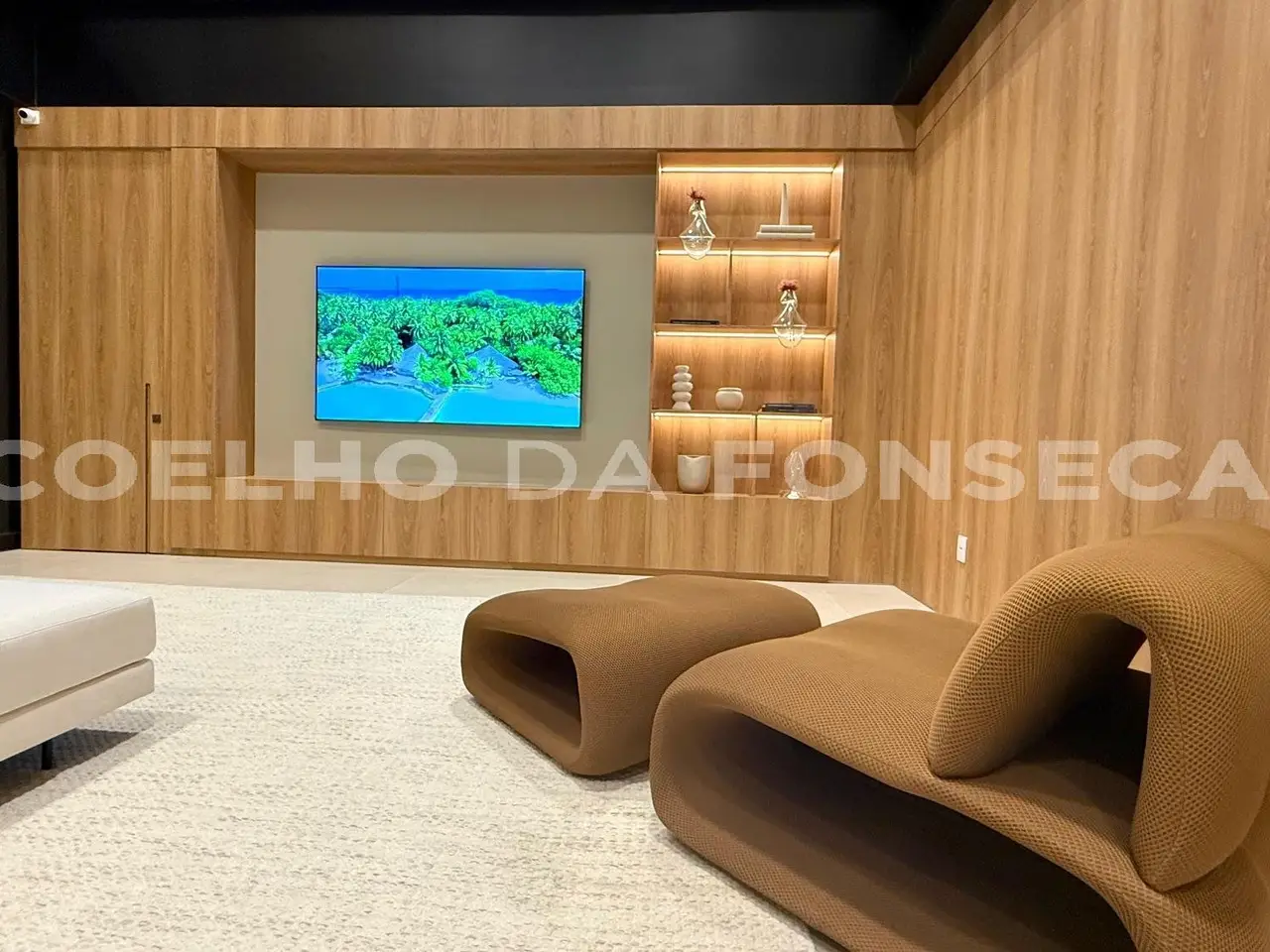 Discover the true meaning of sophistication and comfort in this stunning residence located in one of the most exclusive destinations in Brazil – Riviera de São Lourenço. Privileged Location: Situated in a prime area of Riviera de São Lourenço, the property offers easy access to stunning beaches, renowned golf courses and a variety of leisure and dining options. - New Golf Club - 42 meters of frontage (38 meters of construction) - 120m2 swimming pool - 6 covered parking spaces + 18 parking spaces - 8 suites (with employee quarters) - Cinema room and office - Fully decorated, furnished, fully automated - Elevator for 6 people- Decorative spiral staircase - All appliances by Elettromec - Air-conditioned wine cellar - Roman Travertine marble in all rooms - Large 140” screen in the outdoor area Schedule a visit! House in the Riviera de São Lourenço neighborhood with 1000m² built area, 8 bedroom(s), 8 suite(s), 18 parking space(s), 8 bathroom(s), swimming pool, office, sauna, furnished, air conditioning, employee's room, renovated, balcony, elevator.