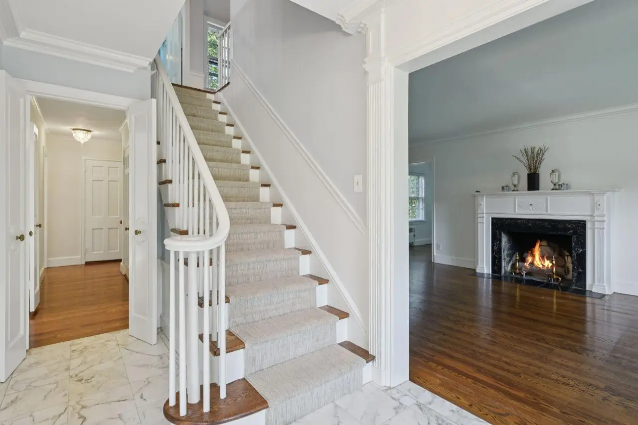 Nestled in the heart of picturesque Old Canterbury on a dead end street , this stately Colonial Revival offers timeless elegance. Brick exteriors, symmetrical facades, a slate roof, and a gracious center hall floor plan set the stage, while decorative crown moldings, wainscoting, and gleaming hardwood floors add layers of sophistication throughout. Step through the classic entryway into a grand foyer adorned with intricate millwork and marble tile floors-an elegant prelude to the home's finely crafted interior. Arched openings to the formal living and dining rooms feature layered casings and exquisite moldings that echo a tradition of bespoke detailing. The sunlit formal living room, anchored by a handsome wood-burning fireplace, flows effortlessly into a cozy den bathed in natural light. The formal dining room, spacious and is ideal for entertaining in style. The updated eat-in kitchen features sleek stainless-steel appliances, granite countertops, and ample cabinetry, perfectly balancing form and function. A tastefully designed powder room and a flexible first-floor suite-ideal for guests or as a home office-complete the main level. Upstairs, the primary suite offers a serene retreat with its private bath and generous walk-in closet. Two additional bedrooms and a stylish family bath provide comfort and space for all. A walk-up attic, accessible from the second-floor landing, delivers convenient and abundant storage. The lower level impresses with its high ceilings, exposed beams, and expansive layout that accommodates a play area, laundry, and utility spaces. Outdoors, the private backyard is a lush sanctuary framed by mature hedging-perfect for dining al fresco or relaxing in quiet seclusion. Additional highlights include an attached two-car garage with storage, central air conditioning, gas cooking and heating, RVC Utilities ,water/garbage/Police and electric Rockville Centre school district. With its blend of classic charm and thoughtful updates, this home is a rare gem ready to welcome its next chapter.