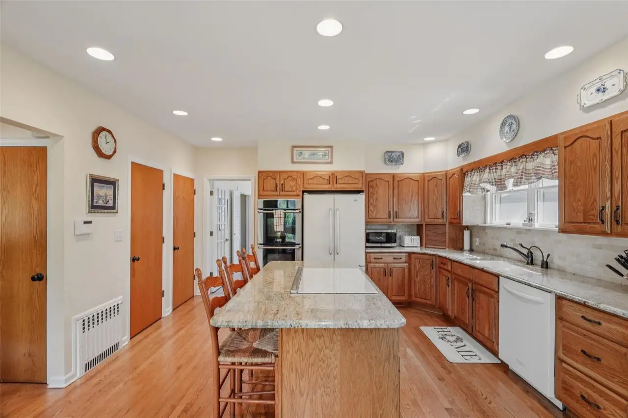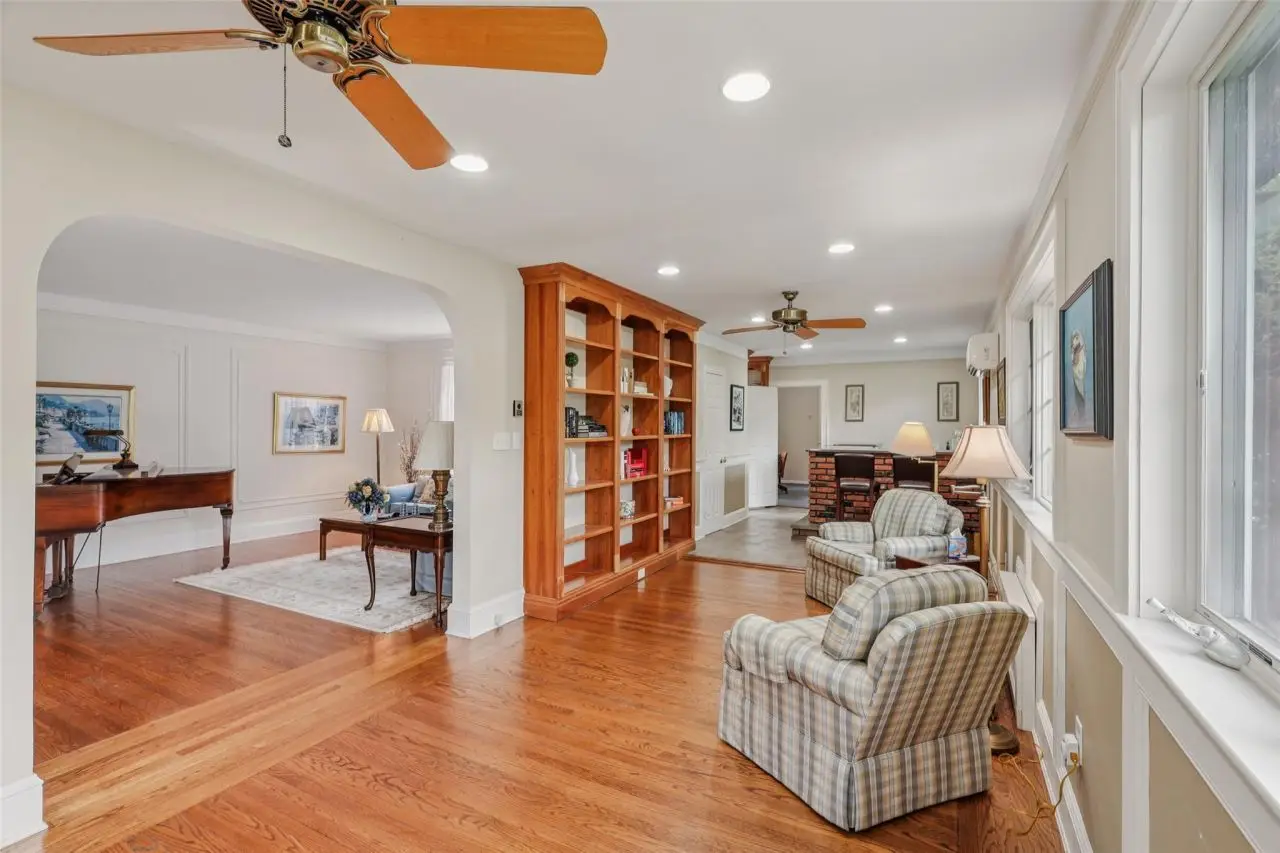 This expansive Center Hall Tudor home offers 5 bedrooms, 3.5 baths, and is filled with natural sunlight throughout. Inside, you'll find a banquet-size formal dining room, a spacious living room with a wood-burning fireplace, and a welcoming family room complete with a wet bar and full bathroom. The first floor also includes an eat-in kitchen, a bedroom, a half bath, and a convenient laundry room. Upstairs, the second floor features three generously sized bedrooms, a hall bathroom, and a luxurious primary en suite. A walk-up third floor provides ample storage space to meet your needs. The large basement offers additional space ideal for entertaining, whether it be a media room, playroom, or home gym. Additional highlights include a two-car detached garage, an alarm system, and in-ground sprinklers.This home offers more than meets the eye. Located close to top-rated schools, parks, shopping, and public transportation, this exceptional property is a rare find. Don't miss your chance to make this dream home yours!