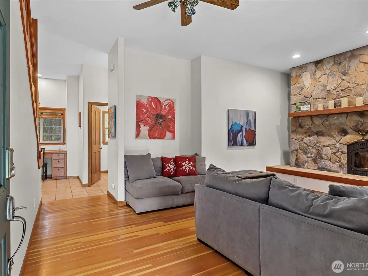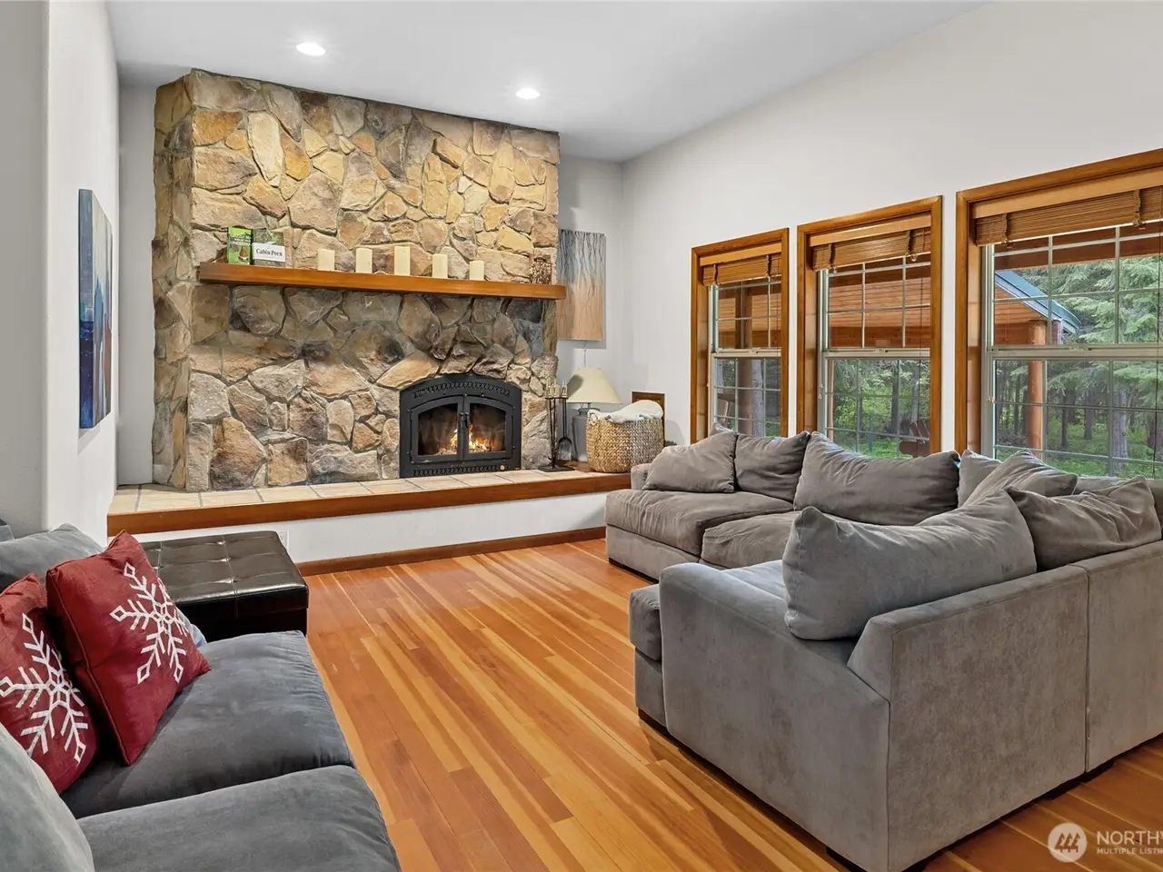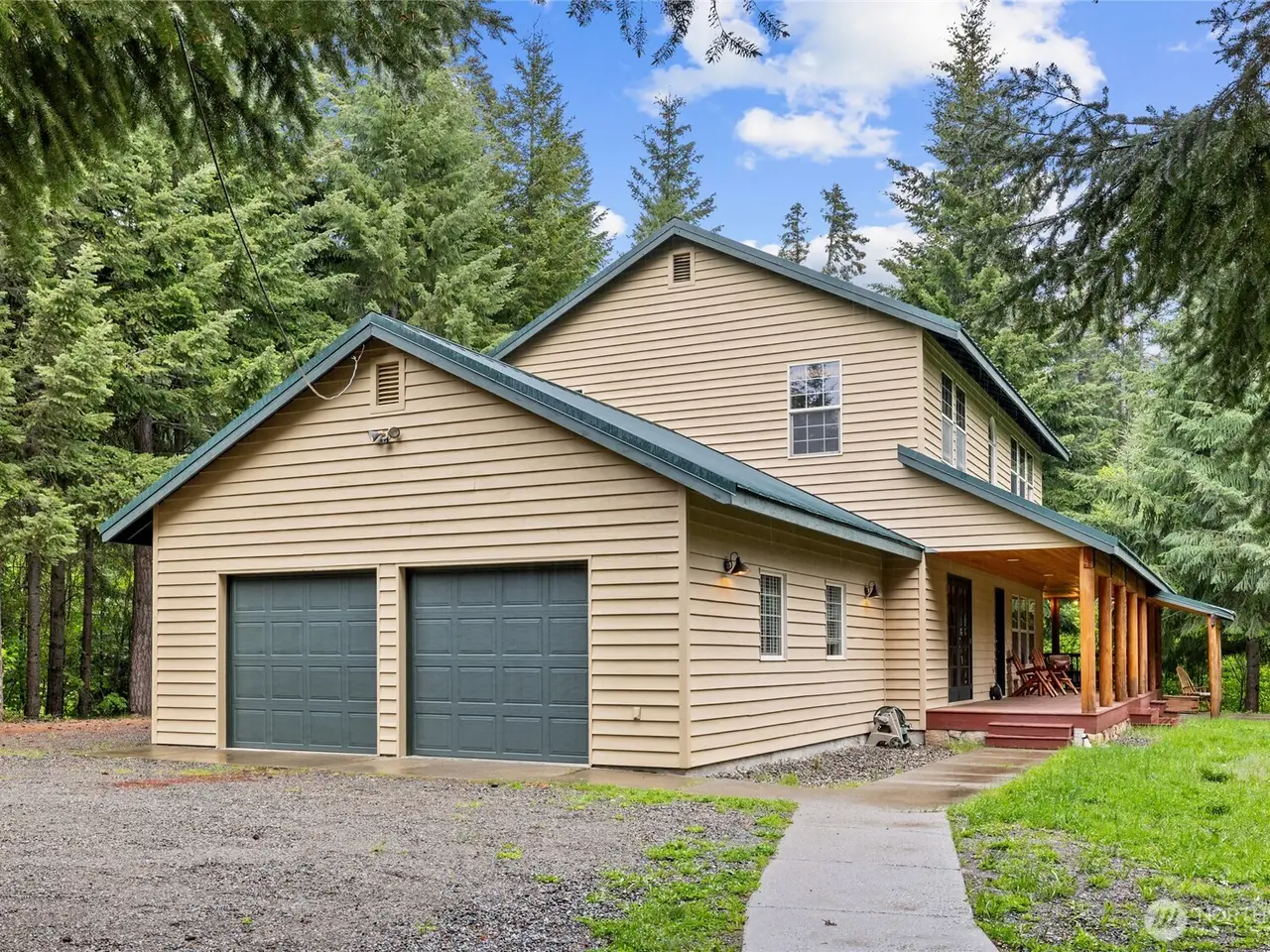 Escape to tranquility on this breathtaking 5-acre retreat, tucked away in the trees along the serene shores of Lake Cle Elum. This secluded retreat offers beauty, privacy, and four seasons of recreational fun! The main house features 3 beds, 3 baths, and a cozy living room with a wood-burning fireplace. The kitchen opens onto a spacious dining area, perfect for entertaining. Enjoy outdoor living on the wrap-around covered deck with a fireplace. Property offers a separate guest house (638 sq ft) with sleeping loft, kitchenette, and garage. Trail access to the beach for a day of relaxation. Whether it's a vacation getaway or your primary residence, this property offers the ultimate in serenity and enjoyment. No HOA, no CC&Rs.