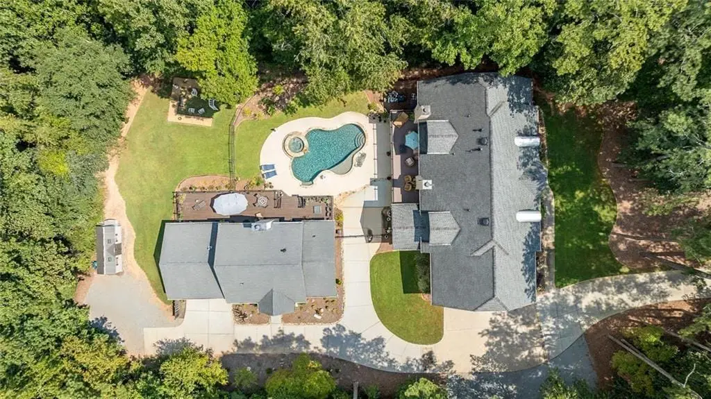 Rare Dual-Residence Estate in Roswell! Discover an extraordinary opportunity to own a private, 2-acre estate tucked away on a quiet cul-de-sac in one of the area's most prestigious communities. This unique property features two fully independent residences. The Main Residence offers 6 bedrooms and 5 baths and the Detached Second Residence has an additional 4 bedrooms and 4.5 baths. This estate was designed for large families, true multi-generational living, guest accommodations, or income-producing investment potential. It offers serene views to a shared backyard sanctuary where birdsong, gardens, and a resort-style pool & spa create everyday tranquility and exquisite gathering spaces. Main Residence - 3,965 sq.ft: The dramatic two-story foyer welcomes you into a home designed for both comfort and entertaining. Featuring a banquet-sized dining room, paneled study, and renovated chef's kitchen with quartz countertops and stainless-steel appliances. The kitchen opens to a bright eat-in breakfast area, an air-conditioned sunroom, and a soaring great room with fireplace, all leading to a brand-new expansive deck perfect for outdoor gatherings. This elegant home includes dual primary suites, one on the main level and one upstairs each with newly renovated bathrooms and generous walk-in closets. There's an additional bedroom on the main level and two more bedrooms upstairs, ensuring flexible space for large families or guests. The finished terrace level opens to the pool area and is an entertainer's dream, with a media/game room, full wet bar, an additional bedroom/office and a very large 400 sq.ft. air-conditioned workshop or hobby room with exterior access (not included in total sq.ft.). Detached Residence - 2,690 sq.ft.: The beautifully designed second residence provides complete privacy and independence from the main residence and offers a traditional layout with vaulted ceilings and a fully renovated kitchen with quartz countertops and a 7 ft. island. The dining area flows into the open-concept living area with a fireplace which leads to its own expansive deck overlooking the nature-rich grounds. The main floor boasts two primary suites (including one with its own sitting area and exceptional closet space), each with private baths. Upstairs on the 2nd floor, you will find two additional bedrooms and one full bath, providing comfortable separation of space. Resort-Style Amenities: Both residences are oriented to a serene, nature-rich shared backyard with a fenced custom-finished pool and waterfall spa that is accompanied by a dedicated pool bathroom. There is over 2,000 sq ft of Trex decking, on 2 separate decks each having beautiful views of the grounds. There is a three-car air-conditioned garage, plenty of parking and lots of green space with a storage shed, seating area, and room to grow. Additional upgrades include professional landscaping with smart sprinklers, smart pool controls, and smart lighting.The backyard, framed by mature trees and dappled light, is ideal for entertaining, hosting large gatherings, or just enjoying morning coffee beneath the shade of the covered patio watching the butterflies and songbirds as deer wander the edge of the lawn. Afternoons drift by beside the pool. Evenings settle around soft landscape lighting and the quiet hum of nature. Location: Located just minutes from Historic Roswell, Trendy Alpharetta, and Atlanta, this property lies within a top-rated public school district and near a sought-after private school. While offering easy access to a large City of Roswell Park with a dedicated dog park, shopping, dining, and entertainment, this estate feels secluded yet offers the perfect blend of privacy, luxury, and convenience. If you are looking to host and live close to your extended family, entertain in style, or enjoy the flexibility of rental income while living in luxury, this versatile estate is ready to exceed every expectation as your everyday retreat that feels a world away.