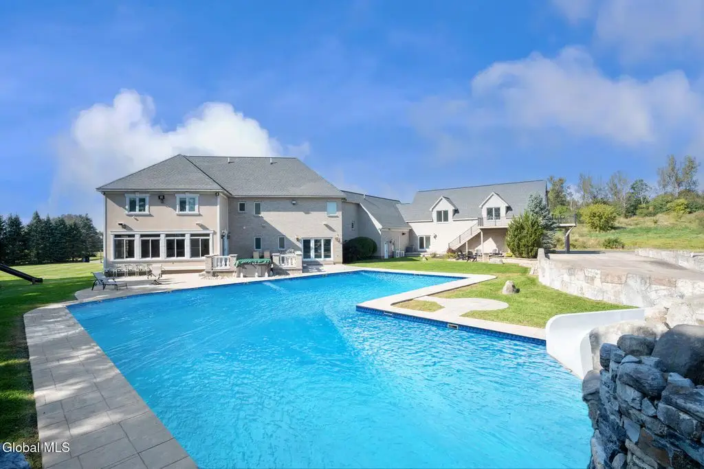 This magnificent estate has a mini, private amusement park w/ helicopter pad! Enjoy huge water slide in heated salt-water pool, go-kart track w/ go-karts included, tennis court, koi pond & volcano display. Two-3 car, temperature controlled oversized garages (6 bays). House comes furnished w/ 5,132 sq. ft. 6 BR, 5 1/2 baths. Surrounded by 30 acres of land, just 20 min from Albany Int'l Airport & 18 min from Sch'dy Airport. Gorgeous, coffered ceilings, gourmet kit, game room & many more upscale features like 4-person jetted tub in one of 3 primary suites! Includes an in-law or guest suite w/ separate entrance. Soak in outdoor hot tub or hang out at the fire pit. Enjoy fall foliage, apple picking, hiking & ski at nearby Maple Ski Ridge or Gore Mt. Close to Saratoga & Lake George. Must see!