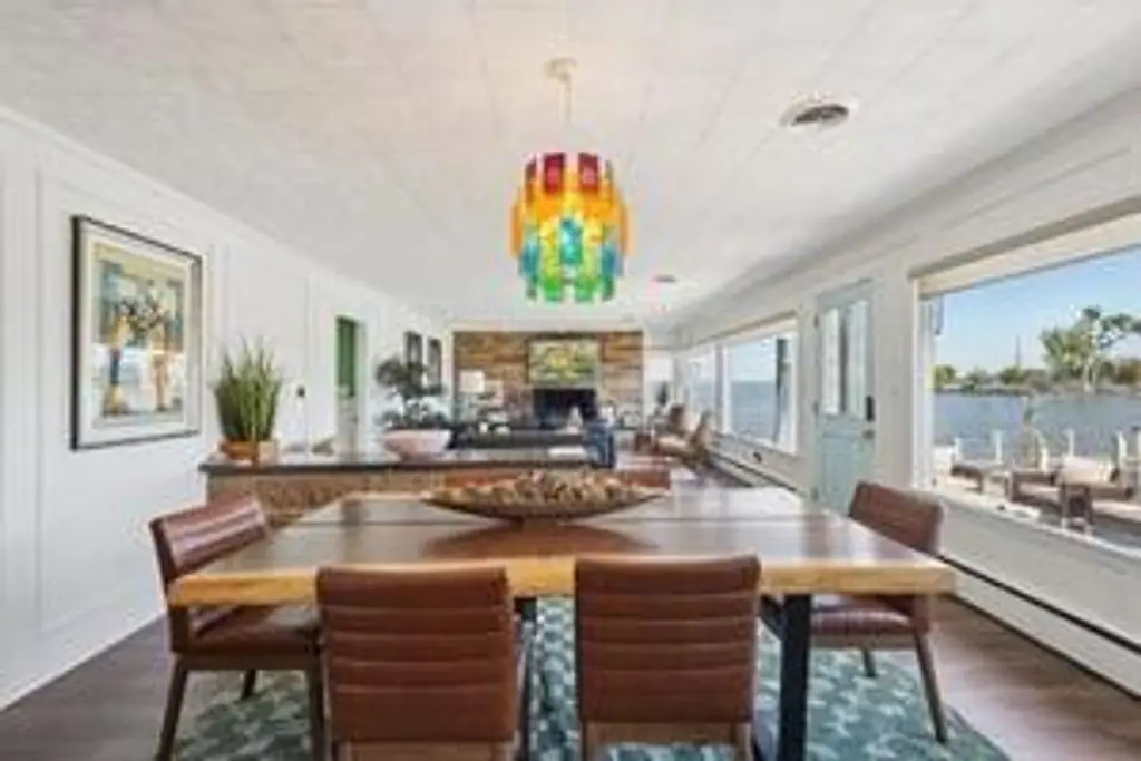 This beautifully updated mid-century-style lake home sits right on open water with sweeping views in every direction. Inside, you'll find just over 1,800 square feet of bright, easy-living space with 3 bedrooms and 2 full baths. The living room centers around a cozy gas fireplace and large picture windows overlooking the lake, flowing naturally into the updated kitchen. The bedrooms are spacious, and both baths have been tastefully updated. The owner's suite even opens to its own private patio -- the perfect place to unwind and enjoy the view. Step outside and you'll see what makes this home truly special -- an expansive waterfront setting with your own private dock and more than 500 square feet of patio space designed for entertaining. Whether it's morning coffee by the water or sunset boat rides, this home makes every day feel like a getaway. The property also includes a second lot, giving you over 13,000 square feet in total, with plenty of room to expand or create more outdoor living space. There's also off-street parking for five or more cars. This one is ready for you to move in and start enjoying the lake life.