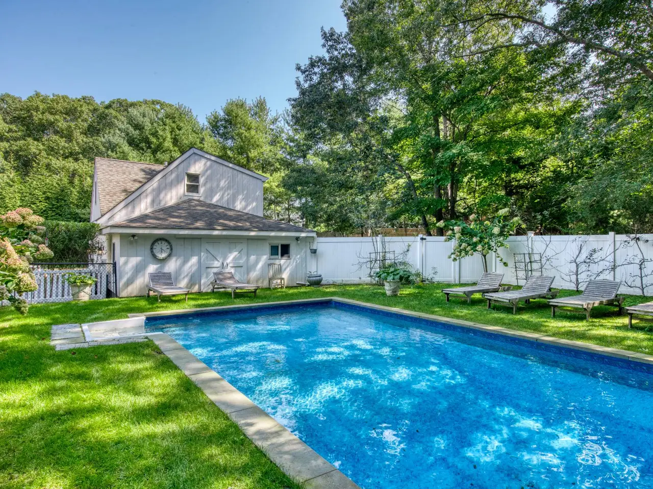 Enjoy life in Sag Harbor in this completely renovated 3200sf+- 4 bedroom, 8 bath farm style home set on 1.22 acres with heated pool on a quiet Cul-de-sac. The completely renovated home now has stunning new hardwood floors, new open kitchen with marble countertops, pantry, new baths, open dining leading out to the deck overlooking the pool area and yard. The first floor boasts a light filled living room with wood-burning fireplace and a family room with a full bath and laundry. Second floor has two en-suite bedrooms and a primary suite with a walk-in closet and an office. The expansive 860sf+- finished lower level has high ceilings to accentuate the spaciousness to accommodate a 4th bedroom downstairs, full bath, gym, playroom and media room with a separate access. Outside, enjoy summers around the heated 20 x 40 pool and landscaped grounds not far from bay beaches, marinas, organic farm stand - Serene Green, restaurants and Cromer's Market. Long Beach & Sag Harbor Village. Another added bonus is the detached 2-car garage/pool house & a 630 sq ft rec room w/ full bath above, perfect for a separate home office or exercise studio. A building permit for pickleball court has just been issued! . The Seller has also applying for septic approval with the DEC to allow 7 bedrooms. Fantastic opportunity awaits.