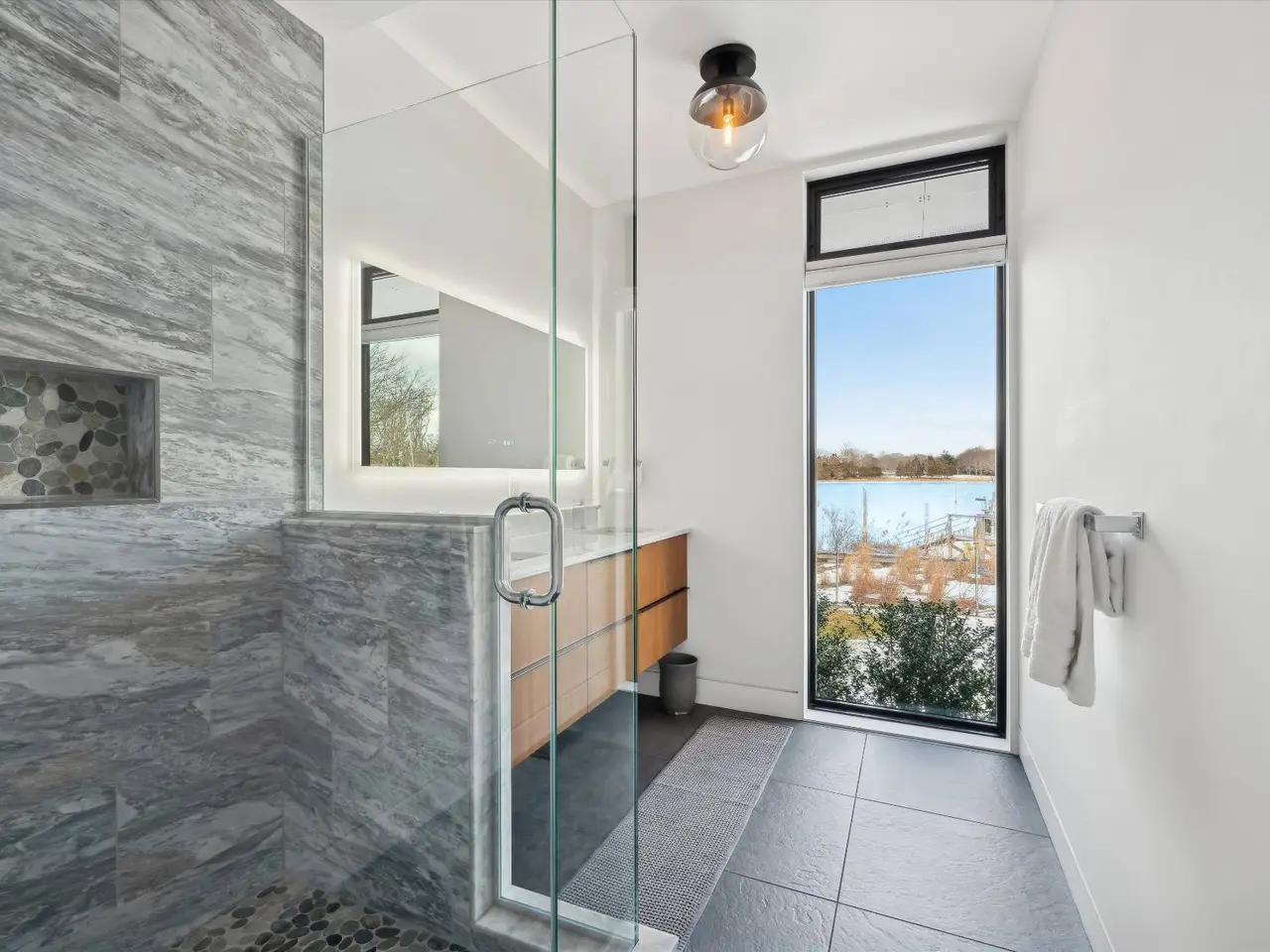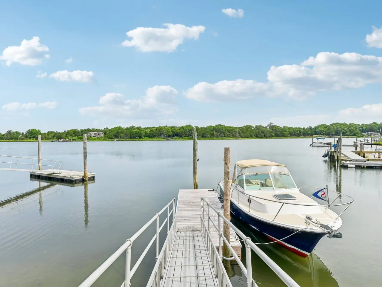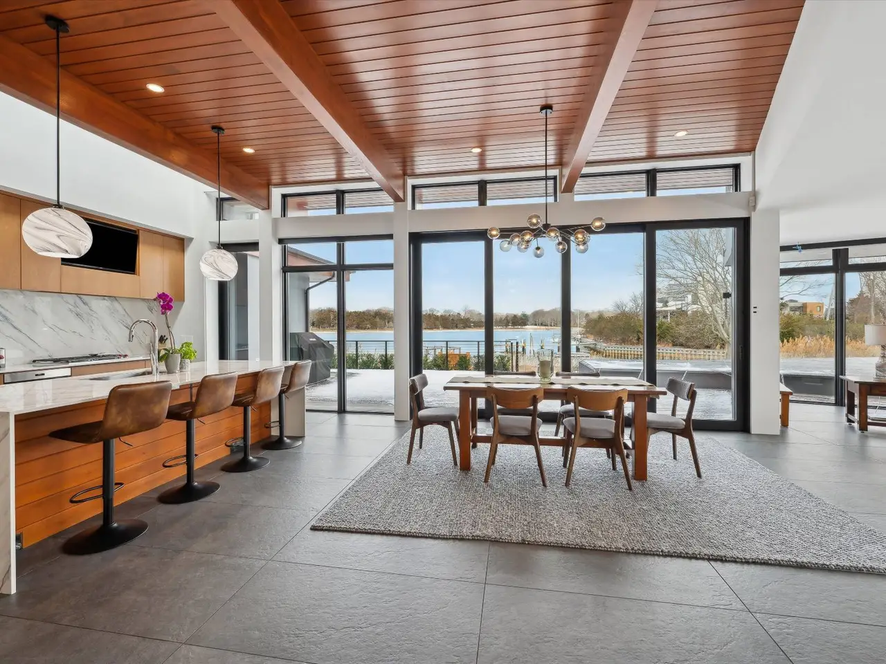 This exquisite five-bedroom, five-and-a-half-bath residence, a creation by the esteemed Turkel Design, is meticulously crafted to leverage its prime location, offering breathtaking water views of Sag Harbor Cove from nearly every vantage point. A grand two-story foyer welcomes you into the open-concept living area, which seamlessly connects to the gourmet eat-in kitchen. This culinary space is appointed with marble waterfall countertops, bespoke cabinetry, a convenient butler's pantry, and top-of-the-line appliances, including dual Wolf wall ovens, a Sub-Zero refrigerator, and a Bosch dishwasher. Floor-to-ceiling glass throughout the living areas captures expansive water vistas and provides direct access to the outdoor sanctuary. Your first floor also includes a Jr. primary with walk-in closet, heated bathroom floors his home is replete with modern conveniences, including a 4-zone dual-hybrid heat pump propane furnace system, power window shades in the living and primary bedroom, a Ring camera system, pre-wiring for additional exterior video cameras, central vac, and a multizone irrigation system. Further enhancing its self-sufficiency are a 16kw solar panel system and a Generac 24kw generator. Practicality is key, with direct access from the garage to a generous laundry/mud room, and a powder bath. The attached two-car garage adds to the home's functionality. Upstairs, the primary bedroom suite offers an oversized walk-in closet, and a sleek freestanding tub set against a wall of glass, providing unparalleled views of Sag Harbor Cove. The second floor also hosts three additional en-suite bedrooms and a convenient second-floor laundry. The luxurious exterior features a free-form saltwater pool and spa, controlled by a Pentair system, all set within extensive teak decking. A charming wood-burning fireplace on the deck overlooks Sag Harbor Cove, complemented by indigenous landscaping, a new bulkhead, and dock. With direct water access, residents can easily explore the surrounding coves, bays, and waterfront restaurants on Shelter Island and the North Fork. This modern masterpiece presents an unparalleled opportunity to experience luxurious waterfront living in Sag Harbor. Listing ID:923252