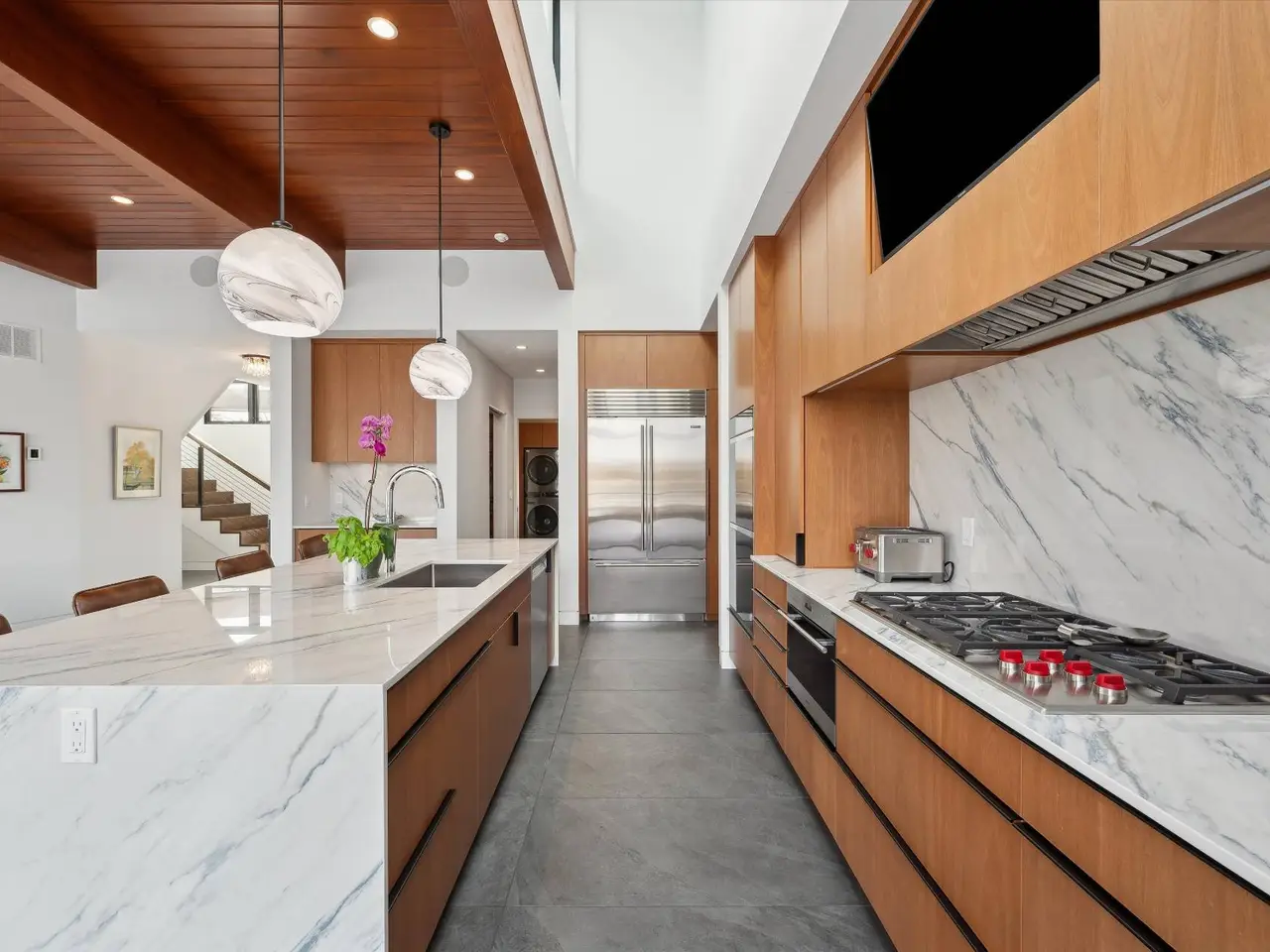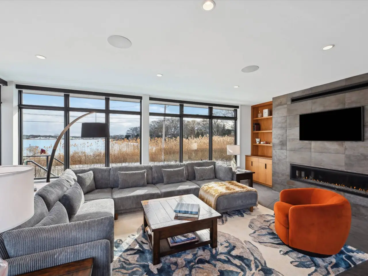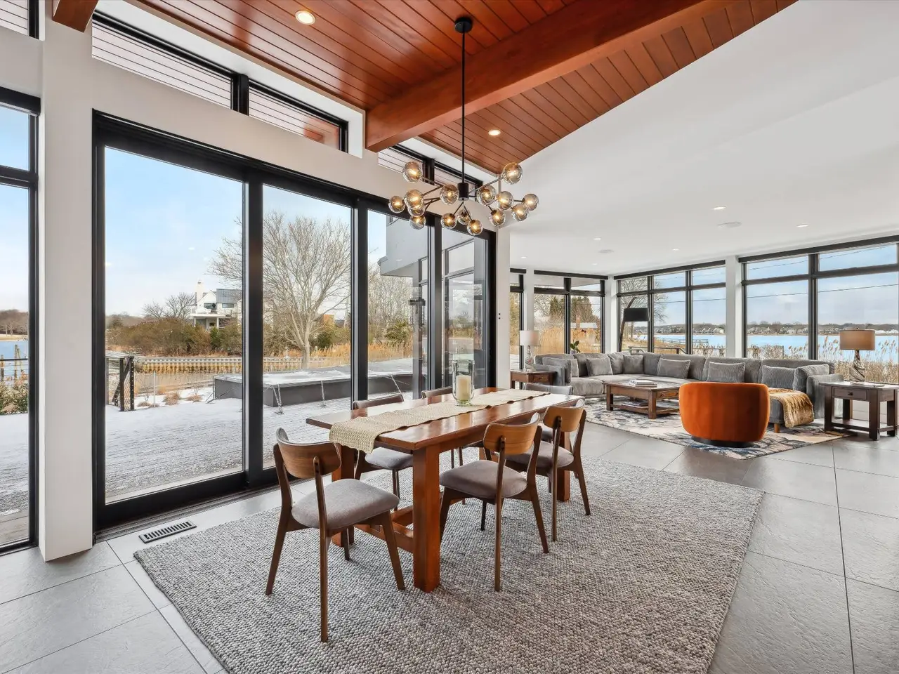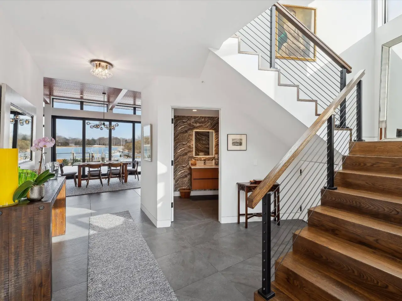 This exquisite five-bedroom, five-and-a-half-bath residence, a creation by the esteemed Turkel Design, is meticulously crafted to leverage its prime location, offering breathtaking water views of Sag Harbor Cove from nearly every vantage point. A grand two-story foyer welcomes you into the open-concept living area, which seamlessly connects to the gourmet eat-in kitchen. This culinary space is appointed with marble waterfall countertops, bespoke cabinetry, a convenient butler's pantry, and top-of-the-line appliances, including dual Wolf wall ovens, a Sub-Zero refrigerator, and a Bosch dishwasher. Floor-to-ceiling glass throughout the living areas captures expansive water vistas and provides direct access to the outdoor sanctuary. Your first floor also includes a Jr. primary with walk-in closet, heated bathroom floors his home is replete with modern conveniences, including a 4-zone dual-hybrid heat pump propane furnace system, power window shades in the living and primary bedroom, a Ring camera system, pre-wiring for additional exterior video cameras, central vac, and a multizone irrigation system. Further enhancing its self-sufficiency are a 16kw solar panel system and a Generac 24kw generator. Practicality is key, with direct access from the garage to a generous laundry/mud room, and a powder bath. The attached two-car garage adds to the home's functionality. Upstairs, the primary bedroom suite offers an oversized walk-in closet, and a sleek freestanding tub set against a wall of glass, providing unparalleled views of Sag Harbor Cove. The second floor also hosts three additional en-suite bedrooms and a convenient second-floor laundry. The luxurious exterior features a free-form saltwater pool and spa, controlled by a Pentair system, all set within extensive teak decking. A charming wood-burning fireplace on the deck overlooks Sag Harbor Cove, complemented by indigenous landscaping, a new bulkhead, and dock. With direct water access, residents can easily explore the surrounding coves, bays, and waterfront restaurants on Shelter Island and the North Fork. This modern masterpiece presents an unparalleled opportunity to experience luxurious waterfront living in Sag Harbor. Listing ID:923252