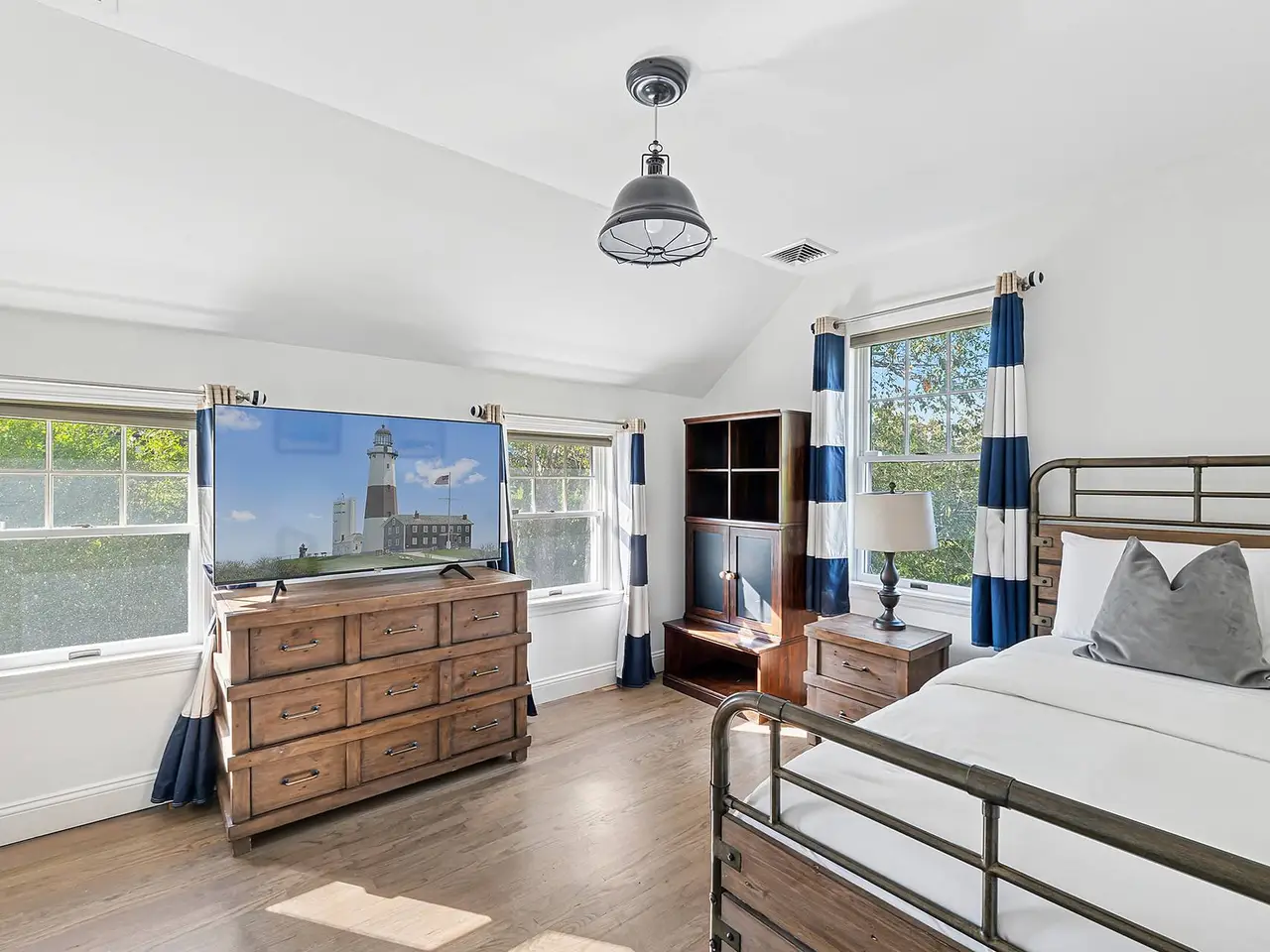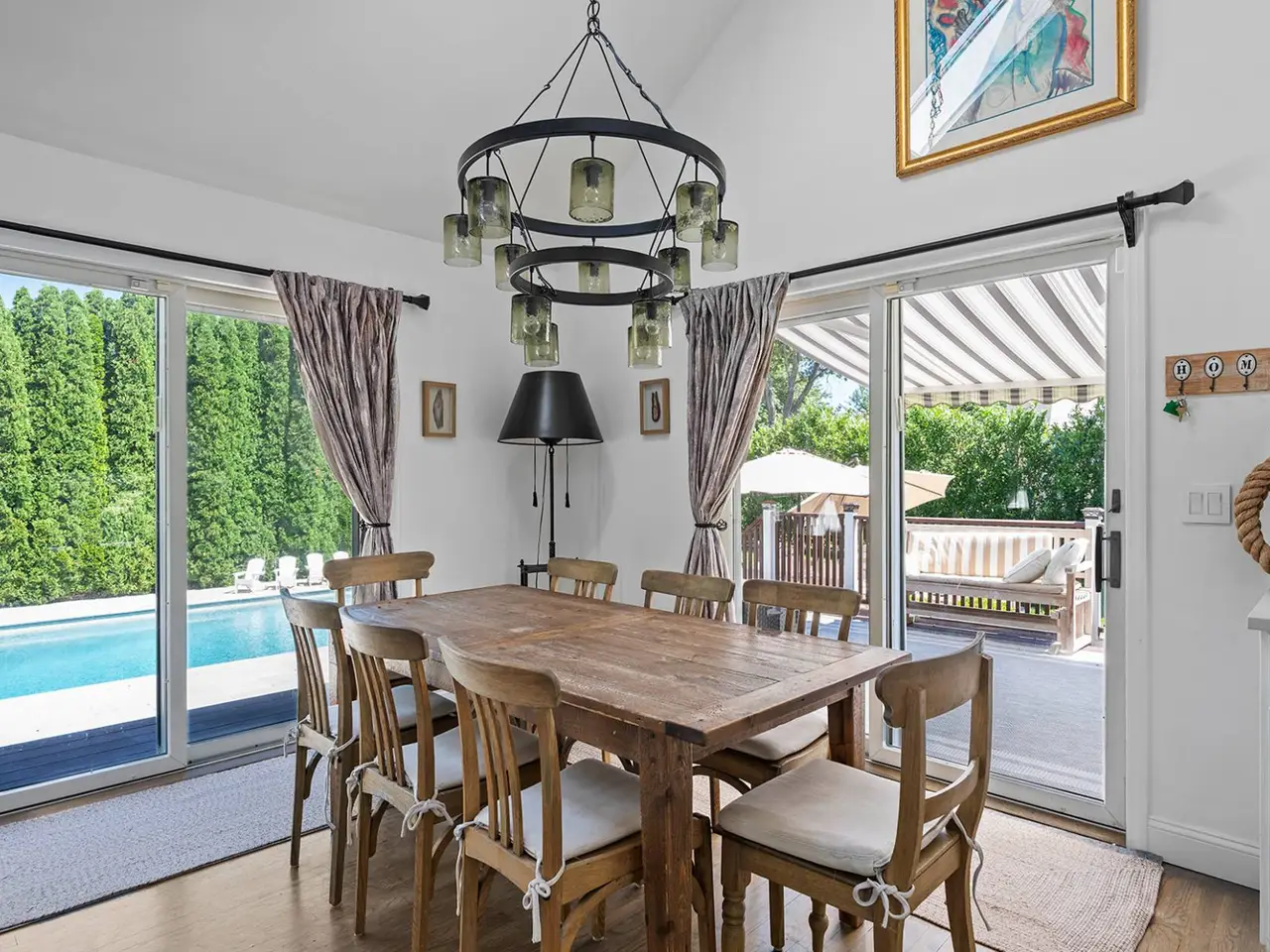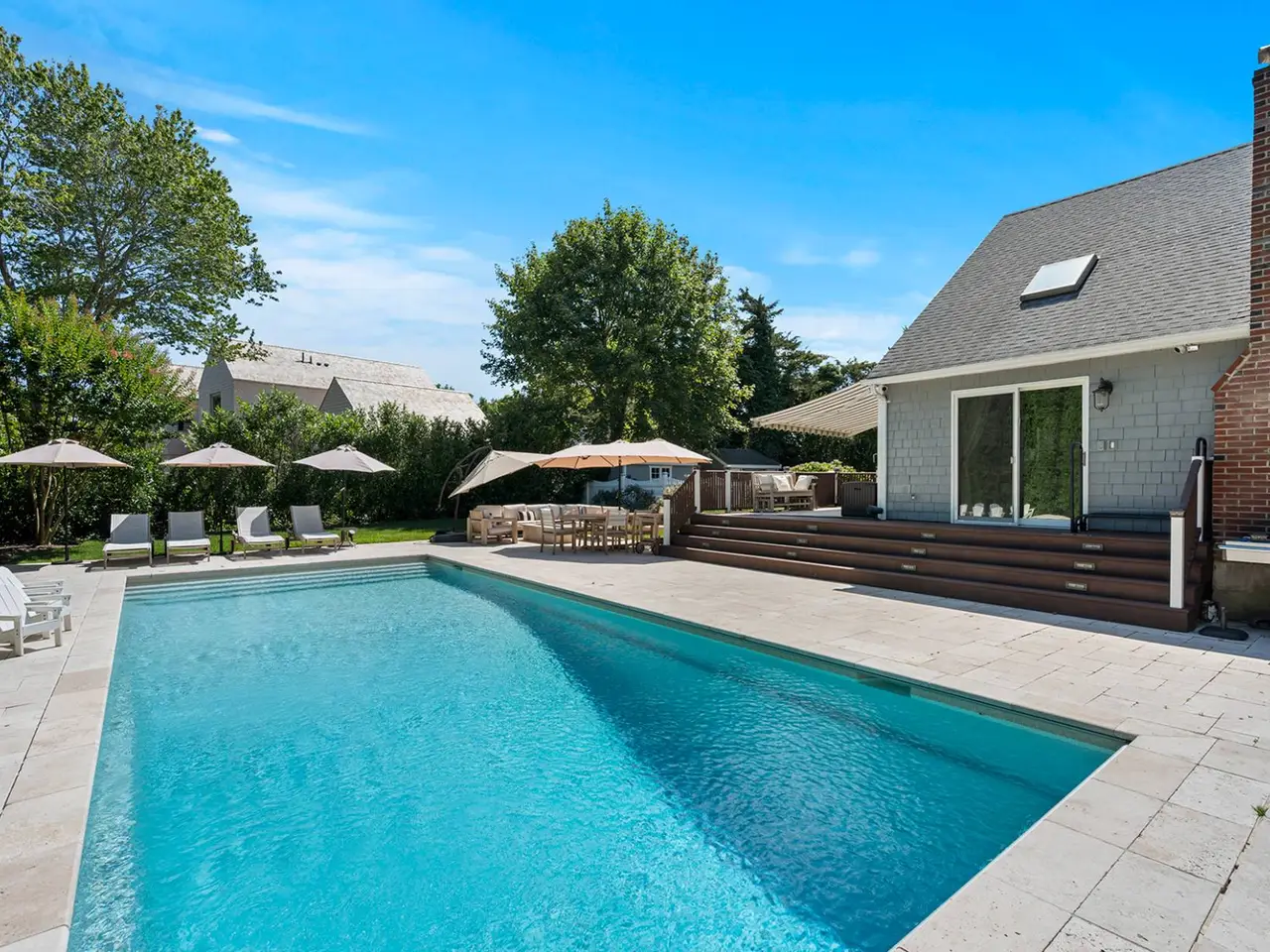 RP#: 240817: Sag Harbor Rental - Bay Point Spend your summer in style at this beautifully updated 4-bedroom, 3-bath rental in the coveted waterfront community of Bay Point, Sag Harbor. Just minutes from the village and a moments from Foster Memorial Beach, this tastefully appointed home offers a perfect blend of modern comfort and Hamptons charm. Step inside to an open-concept living area with cathedral ceilings and natural light streaming through skylights. The gourmet kitchen features top-tier stainless steel appliances-including a Bertazzoni range-white quartz countertops, a farmhouse sink, and stylish grey-beige-white interior tones throughout. The main-level primary suite offers a private entrance and barn doors for added seclusion. Upstairs, two guest bedrooms share a full bath with elegant finishes and raindrop showerheads. The lower level is ideal for entertaining, complete with a spacious media lounge, wet bar, a fourth bedroom, and an additional full bath featuring a glass walk-in shower and designer tile. Outside, enjoy a beautifully landscaped and private setting complete with a 20' x 40' heated in-ground pool, outdoor shower, and multiple seating areas for lounging or dining alfresco. Located just 1.5 miles from Sag Harbor Village and minutes from Serene Green Organic Farmstand, this home offers convenience, tranquility, and access to everything the Hamptons has to offer-including those unforgettable west-facing sunsets at the nearby beach.Listing ID 924714