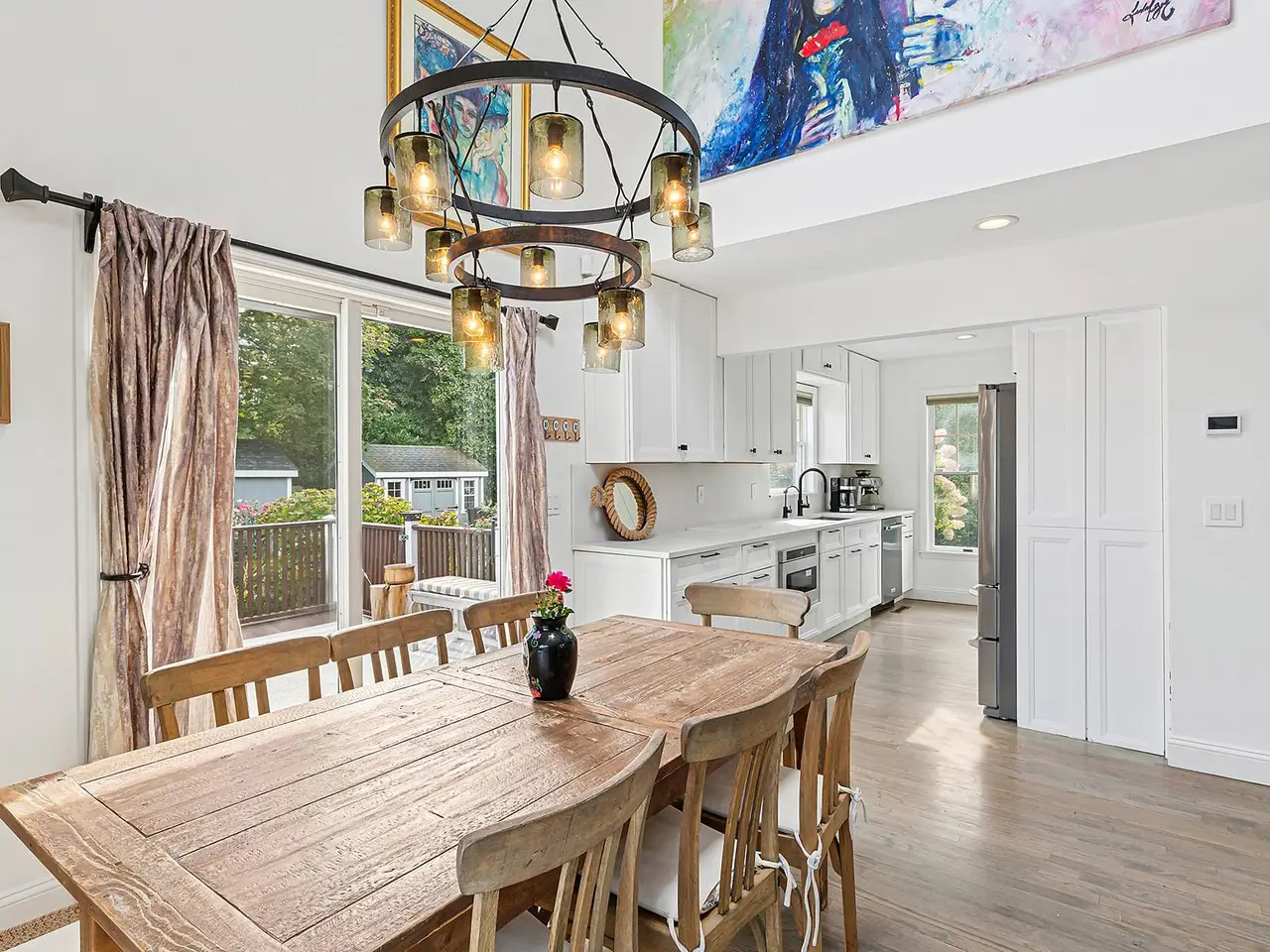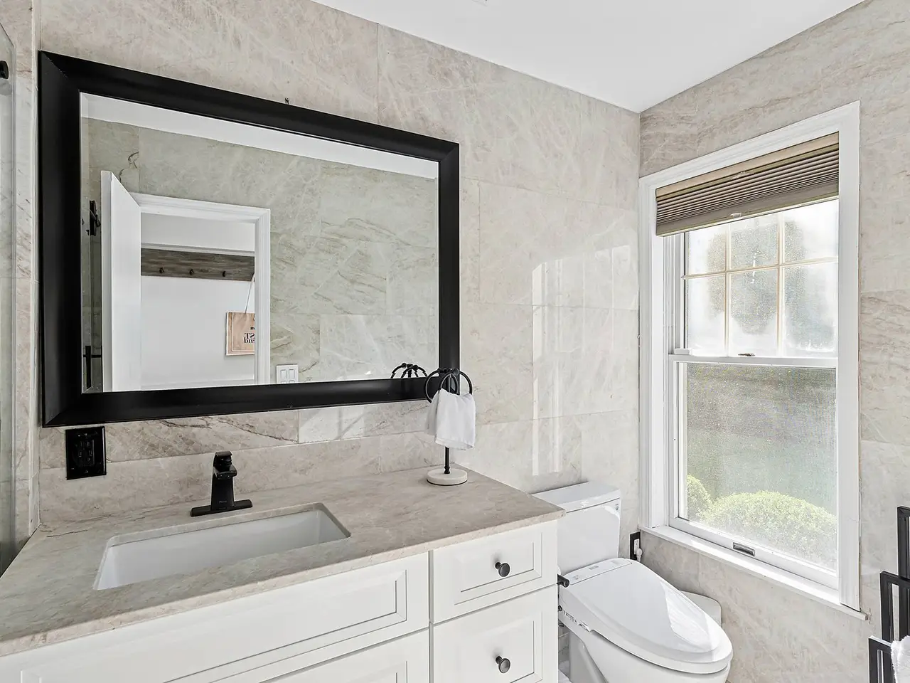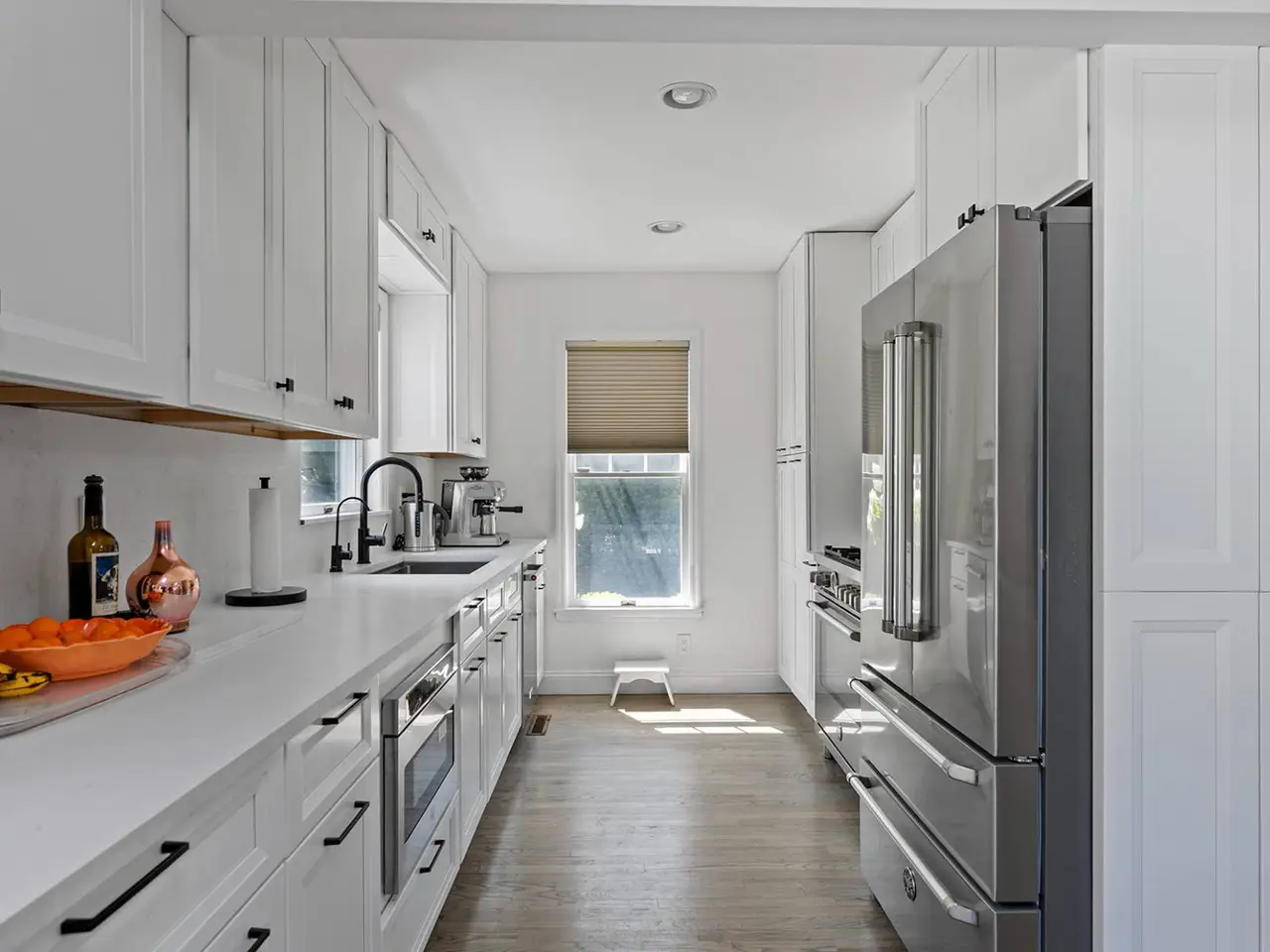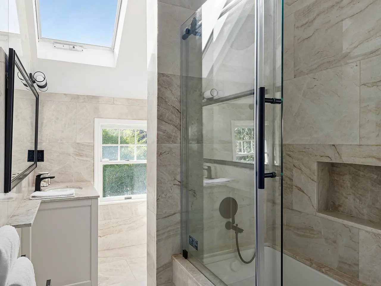 RP#: 240817: Sag Harbor Rental - Bay Point Spend your summer in style at this beautifully updated 4-bedroom, 3-bath rental in the coveted waterfront community of Bay Point, Sag Harbor. Just minutes from the village and a moments from Foster Memorial Beach, this tastefully appointed home offers a perfect blend of modern comfort and Hamptons charm. Step inside to an open-concept living area with cathedral ceilings and natural light streaming through skylights. The gourmet kitchen features top-tier stainless steel appliances-including a Bertazzoni range-white quartz countertops, a farmhouse sink, and stylish grey-beige-white interior tones throughout. The main-level primary suite offers a private entrance and barn doors for added seclusion. Upstairs, two guest bedrooms share a full bath with elegant finishes and raindrop showerheads. The lower level is ideal for entertaining, complete with a spacious media lounge, wet bar, a fourth bedroom, and an additional full bath featuring a glass walk-in shower and designer tile. Outside, enjoy a beautifully landscaped and private setting complete with a 20' x 40' heated in-ground pool, outdoor shower, and multiple seating areas for lounging or dining alfresco. Located just 1.5 miles from Sag Harbor Village and minutes from Serene Green Organic Farmstand, this home offers convenience, tranquility, and access to everything the Hamptons has to offer-including those unforgettable west-facing sunsets at the nearby beach.Listing ID 924714