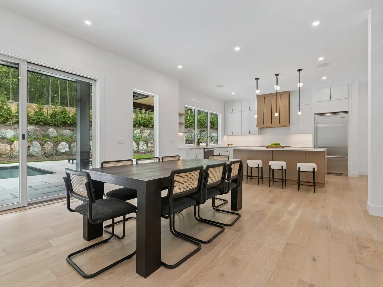 185 Old Millstone Road, Sag Harbor. New Build 5 bedroom (permitted for 6), 5 1/2 bath Luxury Home in the Hamptons. This magnificent new construction, nestled in the heart of one of the Hamptons' most picturesque towns, with the most beautiful freshwater ponds and a 40-acre natural reserve, promises a blend of natural environment/sceneries, luxury and comfort just minutes from local amenities like restaurants, shops, the harbor, and beach. Spread over an acre of land, this spacious 7000+ sq ft. modern farmhouse includes a 2100 sq. ft. unfinished lower level w/ 10' ceilings, a 2183 sq. ft. first floor w/10' ceilings and a 1855 sq.ft. second floor w/ 9' ceilings. The interior is bathed in natural light, enhancing its warm touches and creating a welcoming atmosphere. The open floor plan integrates the living room with a cozy fireplace, a gourmet dining area, and a chef's kitchen equipped with high-end appliances. The five beautifully designed bedrooms, including a grand primary suite ensuring peace and privacy. The private backyard with a gunite pool and professionally landscaped garden is perfect for outdoor entertainment. The 713 sq. ft 2 car attached garage with an unfinished 713 sq. ft. loft space creates endless opportunities. The property has exclusive access to a creek at the edge of it that leads to hiking trails along its side to the famous Trout Pond in Sag Harbor. This pre-construction project also offers prospective buyers the unique chance to personalize their future home to fit their lifestyle. This property is perfect for those looking to quickly move into a tailored luxury home.
