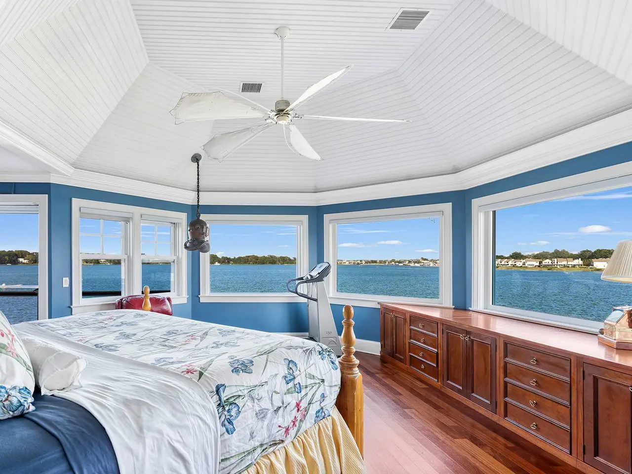 What could be more exciting than living this summer waterside and poolside looking out over the harbor to Sag Harbor Village? This stunning nauticalesque 4 bedroom 4 bath compound with waterviews from every room has an open kitchen, dining and living area and a majestic den with movie style reclining seating. The second floor has 2 light filled, spacious en-suite bedrooms with waterside balconies . The other 2 bedrooms and bath are smartly located in the separate newly renovated beach cottage off of the expansive back patio. The patio wraps around the home on 2 bulkheaded waterfronts perfectly designed for the outdoor bar pavilion, a heated gunite saltwater pool, a lush lawn and a full service deepwater dock. Across the street from Foster Memorial Long Beach and minutes to Sag Harbor Village. The privacy and calm from being on the peninsula of Bay Point is truly a one of a kind summer get-away.