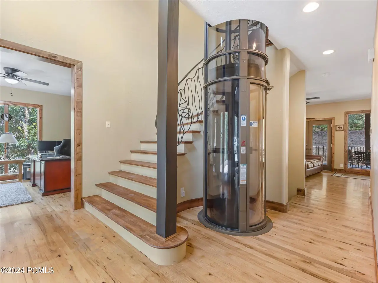 Nestled near the top of the gated community of Emigration Place, this spacious home invites you to enjoy the splendor of mountain living just minutes outside of Salt Lake City. With 5306 square feet, 5 bedrooms, 5 bathrooms, an office, multiple family rooms, and an elevator to provide ease of access to all three levels, there's room for every aspect of your lifestyle. The two-level entry invites you in with a sweeping stairway repurposed from a Salt Lake church and custom metal handrails which wrap around the glass and metal elevator. An oversized kitchen with two islands, a covered deck and formal and informal dining areas make entertaining a breeze. Upstairs another deck allows you to enjoy the beautiful sanctuary of Emigration Canyon just steps from your primary suite with fully renovated lux bathroom. A junior suite completes the upper level. The basement features three more bedrooms, two full bathrooms, a theater room and additional family or game room. The 3-car garage with built in workbench is supplemented by additional parking for 3 more cars and the perfect spot for your camper or boat as you prepare to enjoy the outdoor recreation opportunities that surround you along the Wasatch front and back!