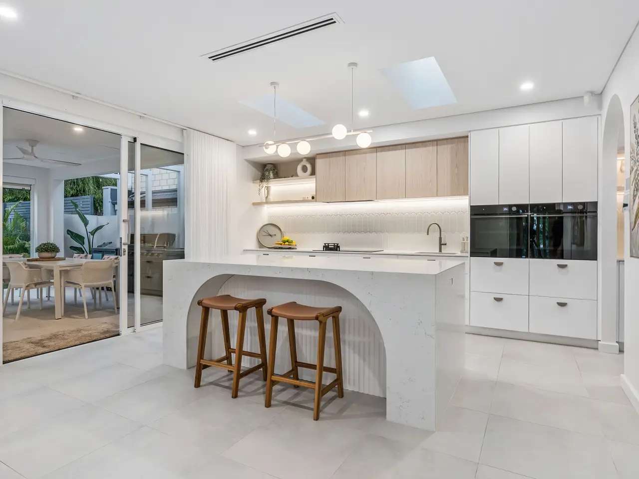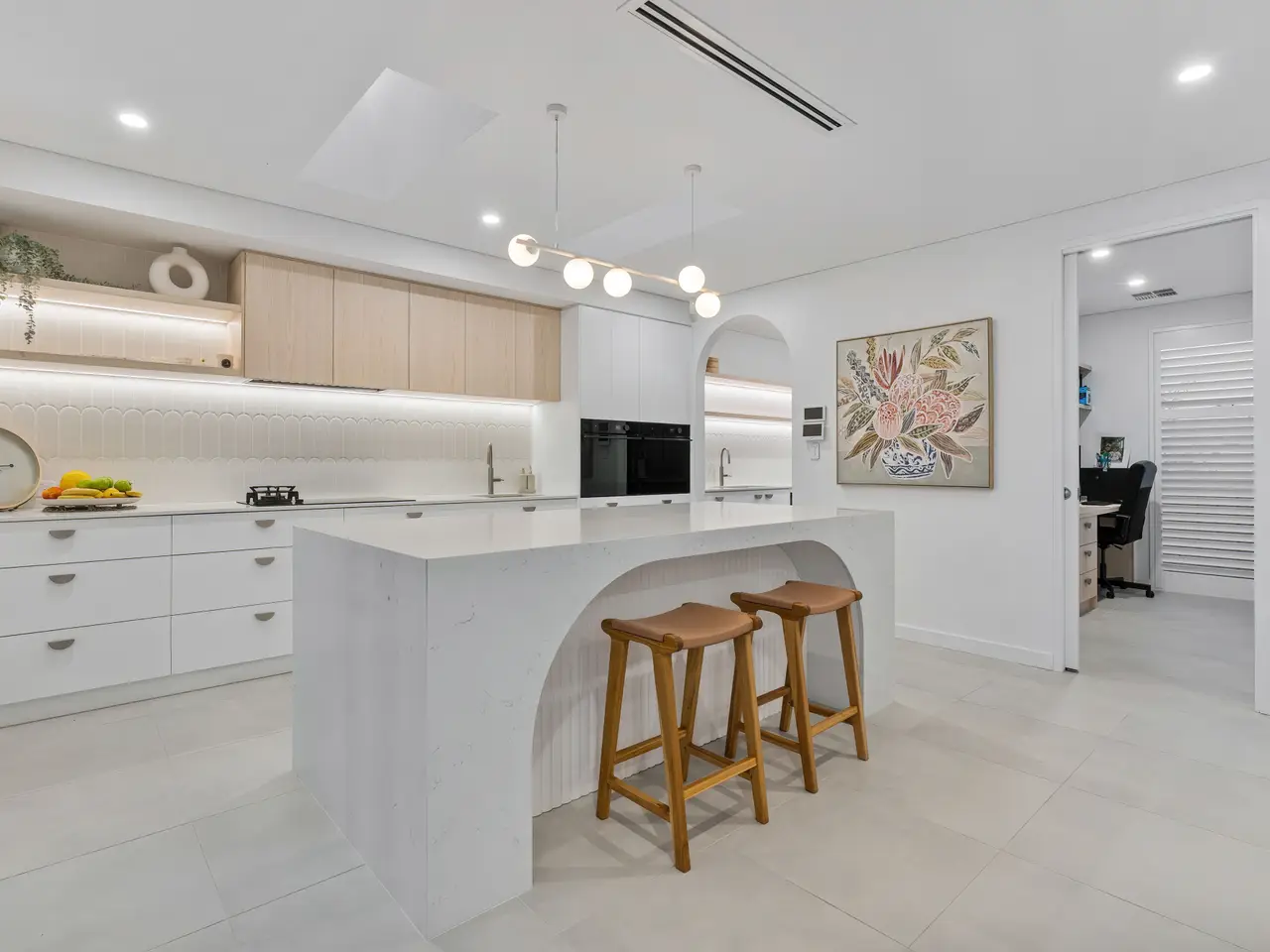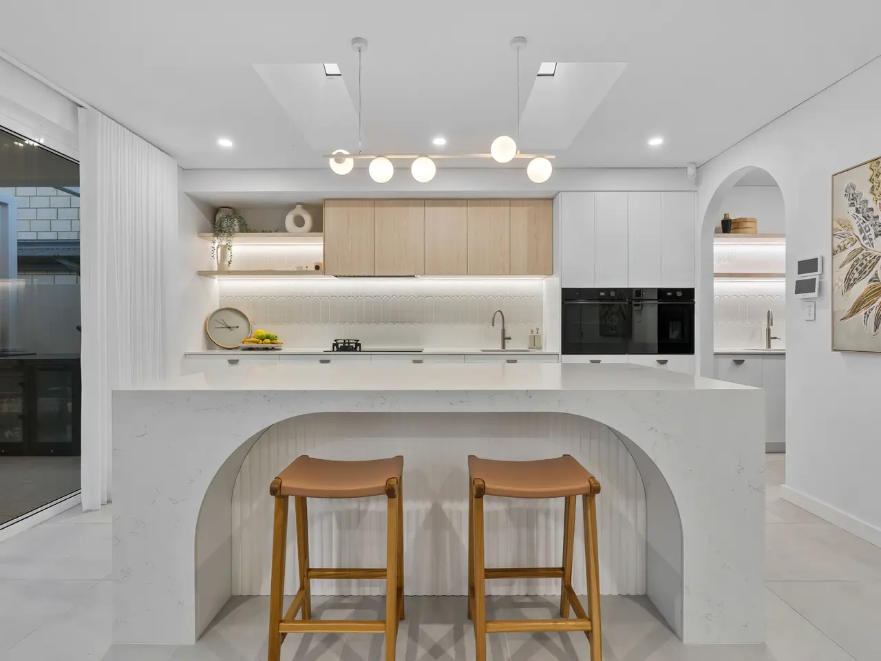 Designed by Claire Webster | Custom-built by Marshall Homes Elegant and refined, this residence less than a year old showcases a symphony of design elements. Curved walls and graceful arches blend seamlessly with expansive glass, soaring ceilings, polished plaster, and feature stone. Rich timber tones and washed aggregate complete the palette, creating an atmosphere of timeless sophistication and opulence. The grand entrance sets the stage, welcoming you and your guests into a main living space designed to impress. The kitchen commands attention with a sculpted curved island finished in elegant coved panelling and crowned by a statement pendant that creates the perfect atmosphere. Equal parts beauty and function, it features eye-level double ovens, a discreet scullery with a four-door pantry and soft-close drawers, along with an integrated dishwasher ensuring every entertaining experience is effortless. The dining area is defined by a curved feature wall and positioned alongside a private cellar. Softly lit to highlight its rustic brick flooring and textured walls, this space elevates wine storage into a striking display, an inviting setting to select the perfect vintage with family and guests. The open-plan lounge offers a refined retreat with a dramatic void that floods the interior with natural light. Classic sash windows frame tranquil views of the pool, set right to the water's edge. This premium design detail evokes the ambience of a private resort, allowing you to enjoy the outlook while supervising morning swims or relaxing in comfort. Seamless indoor-outdoor living flows to the alfresco, overlooking a private lawn where children and pets can play freely. Enclosed by rendered brick walls, the sparkling pool forms a secluded sanctuary for relaxation and memorable gatherings, complete with an outdoor shower for ultimate convenience. The ground-floor master suite is complete with a luxurious ensuite showcasing a double vanity, oversized shower, and a walk-in dressing room with bespoke cabinetry. Thoughtfully positioned to frame serene views across the pool, it offers the perfect retreat at the end of each day. A dedicated office or study with sliding doors provides both privacy and versatility, making it an ideal space for working from home or quiet reflection. The staircase continues the architectural narrative, its arched balustrade forming a sculptural statement as it rises to the upper level. Here, three king-sized bedrooms are beautifully appointed and serviced by a bathroom featuring a hotel-inspired bath, shower, and separate powder room. From the landing, sweeping views extend across the dramatic void, one of the home's most unforgettable design elements. The upstairs lounge offers versatility as a second living zone, theatre, activity room, or private retreat, with windows on both sides welcoming natural breezes and framing views of the pool and landscaped lawn. A graceful curved wall completes the composition, echoing the home's architectural detailing with perfect continuity. For added convenience, the fully rendered double garage provides direct access into the home and ample space for parking and additional storage, all finished with sleek precision. Blending bold architecture with contemporary comfort, every detail has been thoughtfully curated to deliver a refined lifestyle, highlighted by signature features: • Built by Marshall Homes, less than one year old • Stone masonry, polished plaster, and elegant curved walls • Ground-floor master suite with tranquil pool views • Sparkling pool with an outdoor shower • Double-height void over the lounge with stunning water edge views • Entertainers kitchen with Island, pendant lighting and scullery • Ducted air-conditioning for year round comfort • Expansive glass and skylights allowing plenty of natural light in • Wine Cellar with lighting • Double garage with extensive built-in storage • Theatre, games, or activity room for flexible living • Bedroom suites with built-in cabinetry and ceiling fans • High ceilings, shadow lined cornices and skirtings • Fully reticulated gardens with LED lighting and three-phase power • Keyless entry and app-controlled surveillance for ultimate security Positioned on the tranquil Salter Point peninsula and surrounded by multi-million-dollar residences, this address combines prestige with convenience. Families enjoy the ease of walking to Aquinas College, with other esteemed schools St Pius X Catholic Primary, Manning Primary, Wesley College, Penrhos College, and Curtin University, all within close reach. Everyday needs are met at the nearby Ley Street and Welwyn Street shops, including the much-loved Henry M's, while Waterford Plaza provides fresh produce and casual dining at the vibrant Varsity Bar. For premium retail, cinemas, and essential services, Westfield Garden City is only minutes away, and seamless access to both north and south freeway on-ramps makes travel effortless. For boating and fishing enthusiasts, the Gentilli Boat Ramp is just around the corner, offering direct access to the Canning and Swan Rivers. A thoughtfully placed outdoor sink ensures easy clean-up after the day's catch, keeping your interiors pristine while enhancing the lifestyle of this waterfront enclave. Opportunities of this calibre are exceptionally rare once secured, never repeated. For the buyer ready to act, this residence delivers not only a home but a true legacy of luxury.
