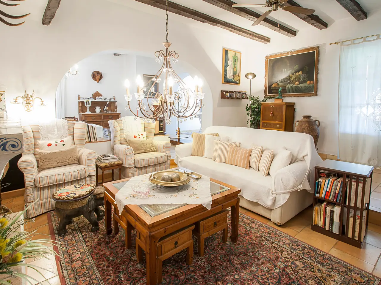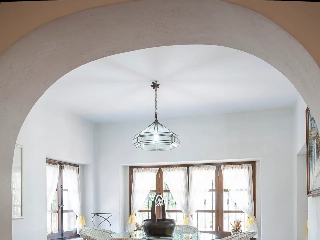 This rural villa features classic Valencian architectural styling. Situated on over 4,700m2 of land made up of well-established gardens, the 6-bedroom, 5-bathroom home covers a built area of 706m2, complete with terraces and courtyards. Close to the services and centre of San Antonio de Benagéber, a small town just west of Valencia, the property exudes the charm and tranquillity of a traditional country home yet simultaneously offers luxury and style. Accessed from one of two entrances, you pass under a classic Spanish gateway to a drive lined with vintage lampposts that leads through the verdant grounds to a spacious open forecourt with parking areas. The elegant covered terrace is large enough for it to be set up as an outdoor dining area, since the property is currently used as a fine dining restaurant. From here, the view is towards green lawns and tall trees, while the interior of the villa is marked by rustic charm and refinement. The pretty country kitchen combines modern facilities with lots of decorative and architectural appeal, including wooden windows and doors, vaulted wooden-beamed ceilings and a separate laundry room connected to the kitchen by a broad archway. The same interplay of plastered walls, hand-glazed tiles and wooden beams adds character and elegance to the living area, which is made up of a sizeable dining room with some steps down to a large and comfortable lounge complete with rustic fireplace. These areas, next to the covered terraces, form the heart of the villa, which also features six spacious bedrooms full of character and five stylish bathrooms. Another typically Mediterranean feature is the enclosed courtyard with a built-in bar and guestrooms, ideal for relaxing and especially entertaining. The property offers a great deal of privacy, with a pretty garden, terraces, swimming pool and also stables, with space to ride.