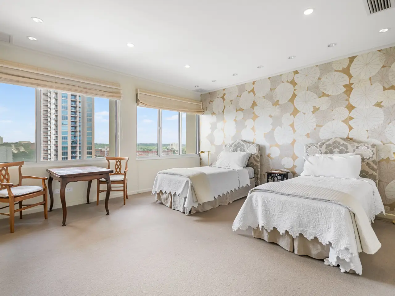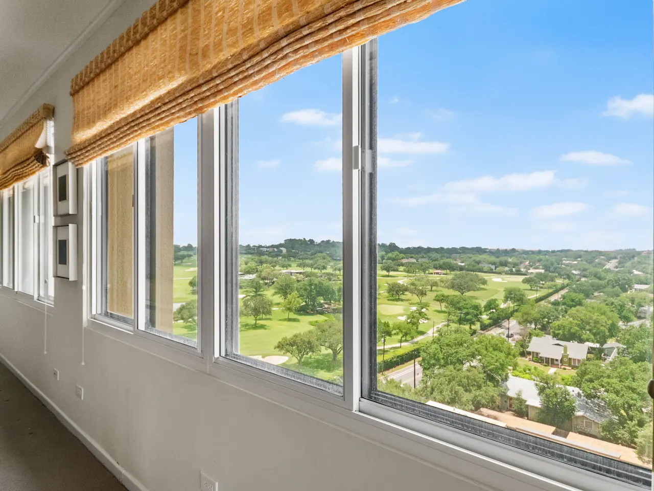 Perched high above the vibrant heart of Alamo Heights in San Antonio, this luxury high-rise condo offers a blend of modern sophistication, breathtaking views, and unmatched convenience. Step inside and you're greeted with floor-to-ceiling windows that flood the space with natural light and great views of the San Antonio Country Club golf course. The living space features sleek hardwood floors, cozy spaces, and incredible floor plan to take in the views from every room. The kitchen has a functional layout right off the main living room to make it easy for entertaining. The master suite is a tranquil retreat with a large walk-in closet, and a spa-inspired bathroom and a spacious sitting room. 3 generous size bedrooms with built-in cabinets, custom closets, bookcases and storage. This condo is just a walk across the street to the San Antonio Country Club and quick access to city life.