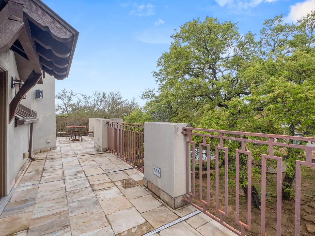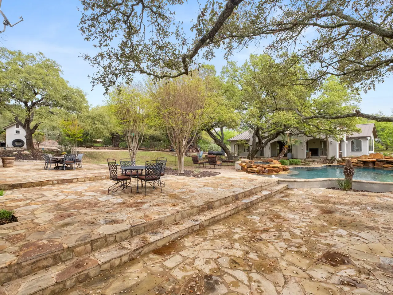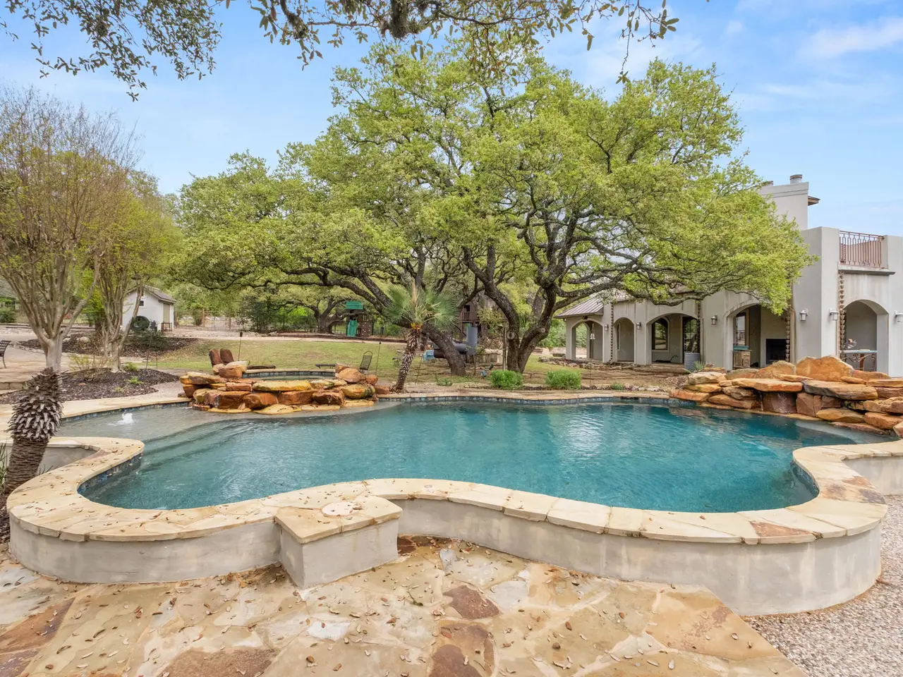 Welcome to 25052 Whistling Wind, a Mediterranean masterpiece nestled in the exclusive Hidden Spring Estates. This gated community gem, crafted by the esteemed Malatek Home Builders, rests on nearly 3 acres of lush, picturesque land, offering breathtaking views of the enchanting Hill Country. As you enter this luxurious estate, you'll find two distinct residences: a grand main house and a charming guest house. The main house, spanning approximately 3,200 square feet, boasts a thoughtfully designed floor plan. The primary suite, located on the first floor, serves as a serene retreat with a sumptuous en-suite bathroom featuring an oversized garden tub and a stand-up shower. The main level also includes an elegant dining room, perfect for cozy dinners, and a spacious island kitchen that flows seamlessly into the inviting living area, ideal for entertaining loved ones. Upstairs, the home offers comfortable and private secondary bedrooms. Step outside to find an expansive wooden deck, creating an intimate setting for special gatherings and memorable moments. Beyond the deck, a generous sparkling pool awaits, heated for year-round enjoyment and relaxation. Additional outdoor amenities include an in-ground trampoline, a dog run, and a tree house. The main house includes an attached 2-car garage. Designed with the famous Ballory Hotel in New York City mind, the nearly 1,600-square-foot guest house, ensures that visitors feel right at home with every comfort provided. It features a full kitchen and family room, two bedrooms downstairs, and an upstairs loft that can serve as an office, media room, or third bedroom. The walkout balcony on the second level provides extensive views of the surrounding hill country. The guest house also includes an attached 2-car garage. A private utility drive provides convenient access for contractors needing to service the property. 25052 Whistling Wind is a rare sanctuary in San Antonio, offering an exquisite blend of luxury, space, and tranquility amidst the stunning beauty of the Hill Country. Welcome home.