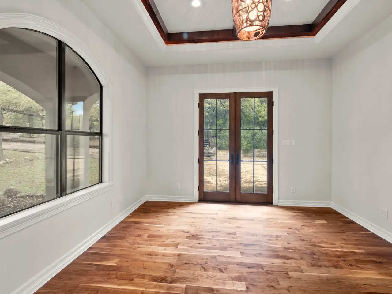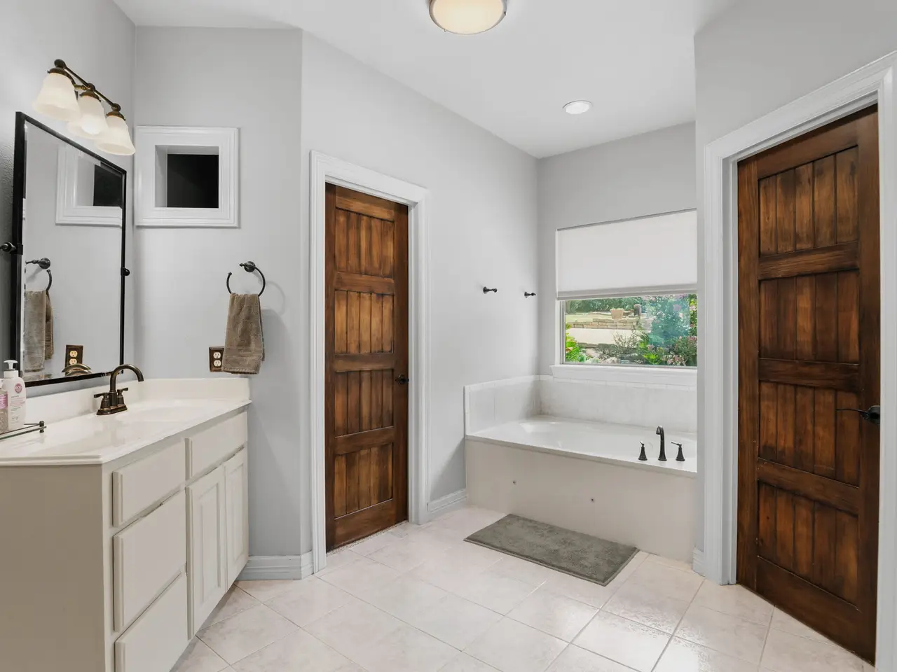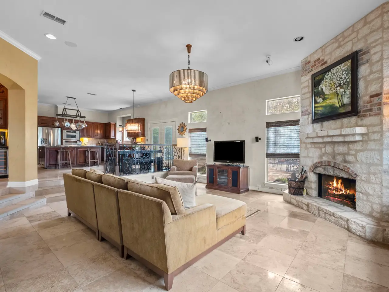 Welcome to 25052 Whistling Wind, a Mediterranean masterpiece nestled in the exclusive Hidden Spring Estates. This gated community gem, crafted by the esteemed Malatek Home Builders, rests on nearly 3 acres of lush, picturesque land, offering breathtaking views of the enchanting Hill Country. As you enter this luxurious estate, you'll find two distinct residences: a grand main house and a charming guest house. The main house, spanning approximately 3,200 square feet, boasts a thoughtfully designed floor plan. The primary suite, located on the first floor, serves as a serene retreat with a sumptuous en-suite bathroom featuring an oversized garden tub and a stand-up shower. The main level also includes an elegant dining room, perfect for cozy dinners, and a spacious island kitchen that flows seamlessly into the inviting living area, ideal for entertaining loved ones. Upstairs, the home offers comfortable and private secondary bedrooms. Step outside to find an expansive wooden deck, creating an intimate setting for special gatherings and memorable moments. Beyond the deck, a generous sparkling pool awaits, heated for year-round enjoyment and relaxation. Additional outdoor amenities include an in-ground trampoline, a dog run, and a tree house. The main house includes an attached 2-car garage. Designed with the famous Ballory Hotel in New York City mind, the nearly 1,600-square-foot guest house, ensures that visitors feel right at home with every comfort provided. It features a full kitchen and family room, two bedrooms downstairs, and an upstairs loft that can serve as an office, media room, or third bedroom. The walkout balcony on the second level provides extensive views of the surrounding hill country. The guest house also includes an attached 2-car garage. A private utility drive provides convenient access for contractors needing to service the property. 25052 Whistling Wind is a rare sanctuary in San Antonio, offering an exquisite blend of luxury, space, and tranquility amidst the stunning beauty of the Hill Country. Welcome home.