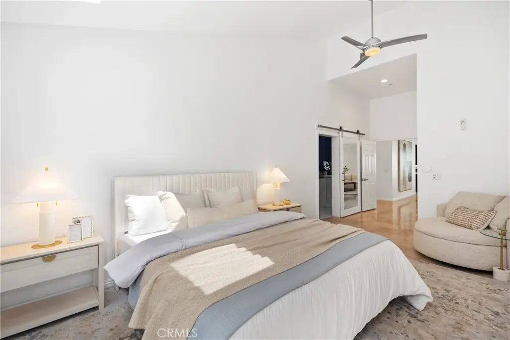 Two luxurious primary suites feature walk-in closets, spa-inspired bathrooms, and in-suite washer/dryers--creating a private, retreat-like experience on either end of the home. A versatile third bedroom with a custom wall bed provides flexible use as an office, guest room, or studio. Additional highlights include motorized shades, hard surface flooring throughout, and abundant storage.