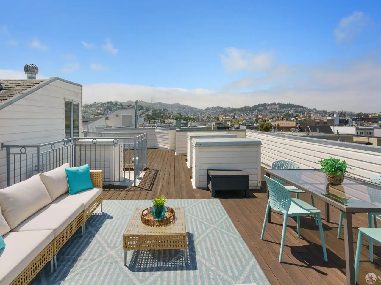 Hot Home Hot Price! Bright and open two-level top-floor condominium residence lives like a house and offers views with all three bedrooms on the same level. The dramatic main floor features a sun-filled Great Room with a chef's kitchen, formal dining, spacious living area with gas fireplace, powder room, and laundryperfect for entertaining or relaxed living, all framed by views of Twin Peaks, Buena Vista, and downtown. The lower level includes three generous bedrooms, including a serene primary suite with en-suite bath, plus a stylish guest bath. A deeded rooftop terrace crowns the home with sweeping panoramic views, ideal for lounging, grilling, or soaking up the Mission Dolores sun. Side-by-side independent garage parking and a location in the heart of the Missionjust off the Valencia Corridorput you moments from the city's best dining, cafes, Dolores Park, playgrounds, bike lanes, BART, and freeway access. A rare blend of scale, light, and location in one of San Francisco's most vibrant neighborhoods.