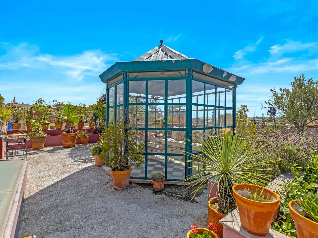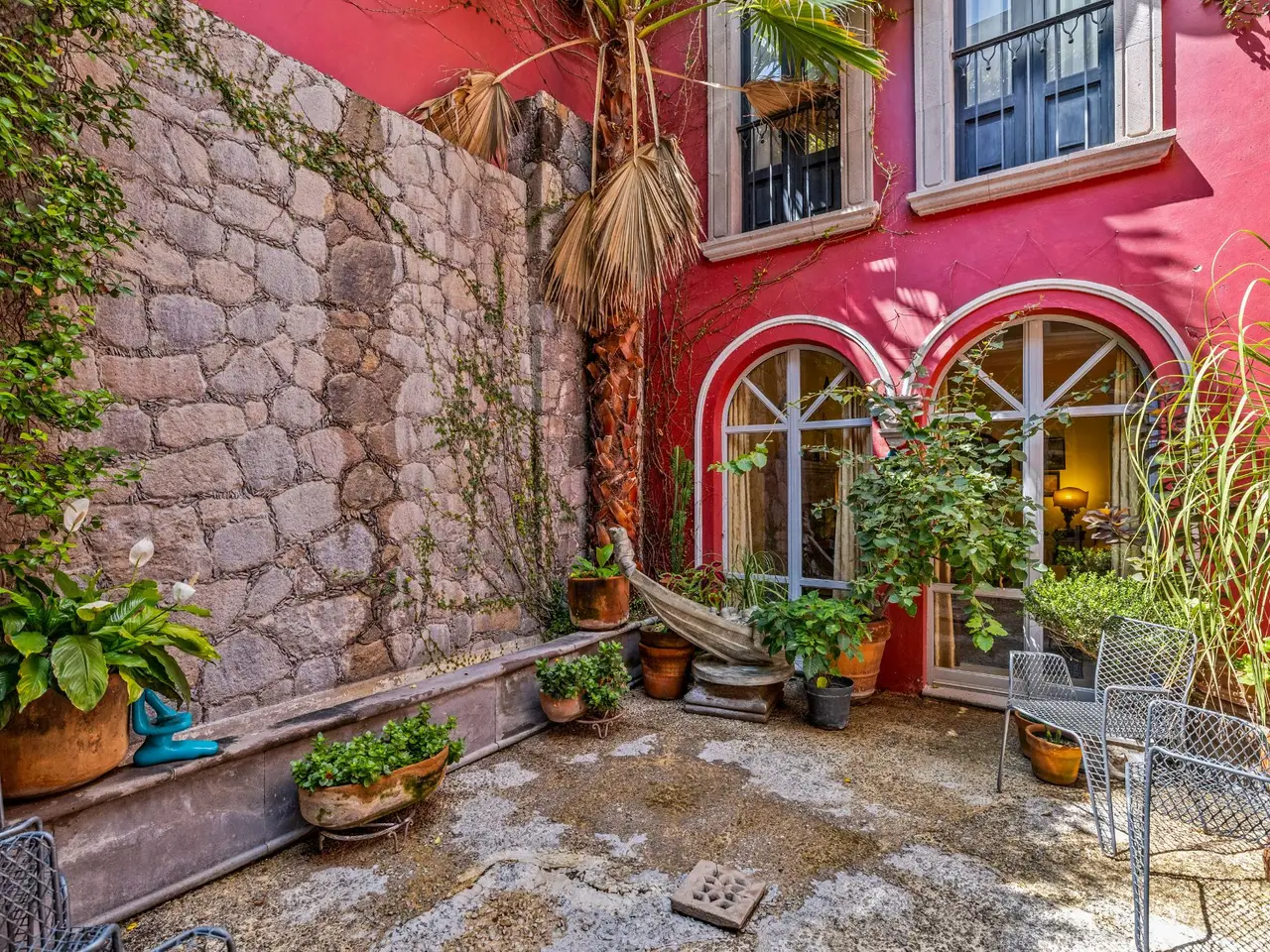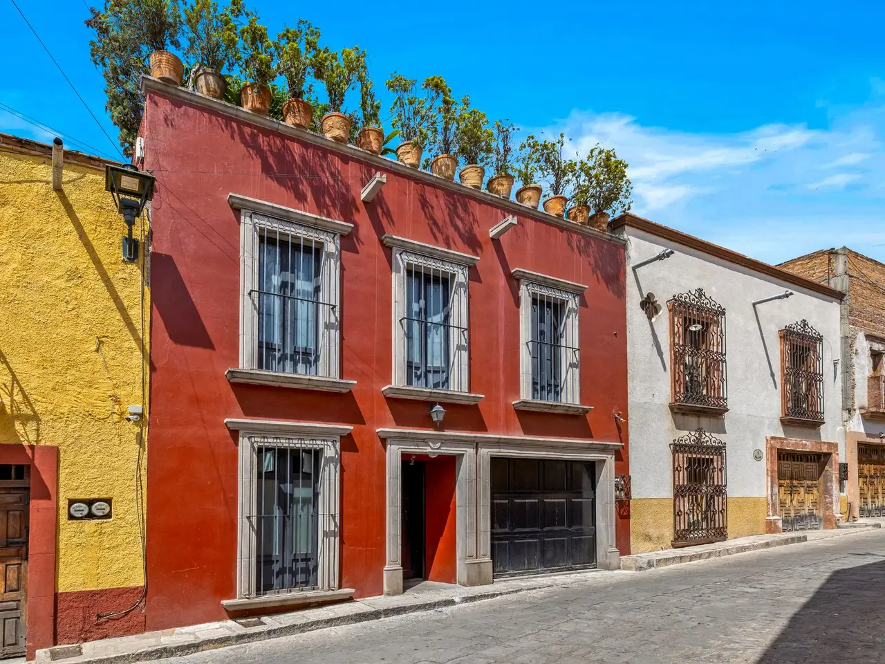 Welcome to Ca’rossa Where Mexican Colonial charm meets Italian elegance in San Miguel de Allende’s Centro. From the moment you arrive, the striking red façade framed with cantera surrounds on every window, the front door, and garage sets the tone for this exceptional residence. Step inside through a thoughtfully designed corridor that opens to the dining area, where arched French doors perfectly frame the outdoor living space. Whitewashed Saltillo tile floors and stenciled ceilings create an airy, light-filled atmosphere that immediately feels both refined and welcoming. The heart of the home is its interior patio, a serene space visible from both the dining and living areas. With its “inspiration wall” fountain, it invites moments of gardening, al fresco dining, or quiet relaxation. Just off the dining area, the galley-style kitchen delights with granite countertops, generous cabinetry, and handcrafted mosaics in cheerful tones of yellow, white, and blue—an inspiring setting for cooking and entertaining. A cozy library nook, guest half-bath, and an elegant living room painted in warm tones complete the first floor. Here, a carved cantera fireplace with floral relief takes center stage, complemented by a stone accent wall, light well, and a second fountain. A private garage offers convenience at this level as well. Second Level Up the graceful staircase, the Saltillo tile continues. The primary suite is a retreat unto itself with a cantera fireplace, a view over the patio, and a spacious en suite bath featuring custom wood cabinetry, double sinks, a bathtub, and shower. True to European tradition, the W.C. is set apart from the bathing area. An adjacent office or den—finished with a striking mosaic floor—offers versatility as a workspace or even a smaller bedroom. Down the hall, the guest suite enchants with another carved wood fireplace surround and a beautifully tiled bathroom. Like the primary suite, this room also overlooks the tranquil patio. Third Level & Rooftop On the third floor, discover a third bedroom with en suite bath, a laundry room, and direct access to the expansive rooftop terrace. Bursting with greenery, this terrace is anchored by a charming glass gazebo—perfect for dining, reading, or creating art. A shaded loggia with vines and foliage evokes the romance of dining al fresco in Italy. One level above, a second sun terrace offers breathtaking 360° views of San Miguel. From here, admire the iconic Parroquia, San Francisco, the Oratorio, and Las Monjas churches, along with panoramic sunsets over the city skyline. The Opportunity Ca’rossa is more than a home—it’s a lifestyle. With its seamless blend of Colonial Mexican architecture and European sophistication, it offers charm, comfort, and character at every turn. Don’t miss this exquisite opportunity—schedule your private showing today. This unique opportunity is significantly reduced to allow current 90 year-old owner lifetime use of home. So if your timing is flexible, this is an amazing deal for you!