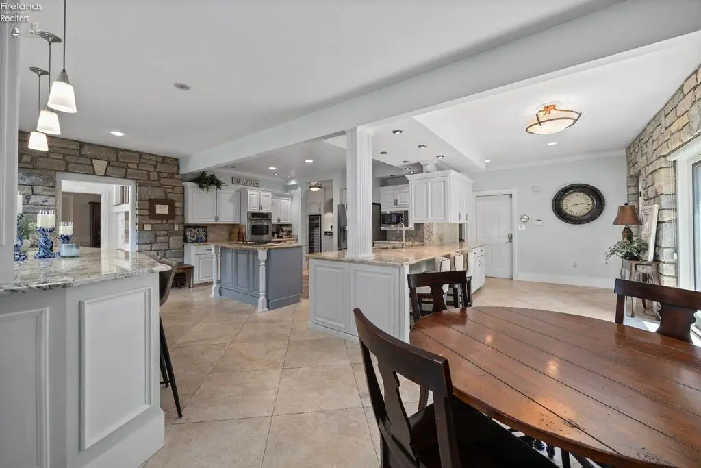 Splendida tenuta di lusso sul lungomare - Vista alba e tramonto / 1,5 acri / 5.000 piedi quadrati Benvenuti nel vostro rifugio privato sull'acqua, dove lusso, svago e natura si fondono. Questa tenuta interamente in mattoni offre viste mozzafiato all'alba e al tramonto con 41 metri di lago incontaminato e 44 metri di baia protetta, immersa in oltre 6000 metri di splendidi giardini. Godetevi una vita in stile resort con una spiaggia sabbiosa, un campo da pallavolo privato, un campo da minigolf e ampie zone giorno all'aperto perfette per intrattenere o rilassarsi. Riunitevi intorno al focolare a gas, esplorate la cabana con bagno completo o imbarcatevi direttamente dalla vostra rampa privata. All'interno, oltre 460 metri quadrati di spazio meticolosamente progettato includono 4-5 camere da letto, quattro bagni completi e due bagni di servizio, e finiture di lusso in tutti gli ambienti. L'ingresso principale con cancello garantisce la massima privacy. L'ampio soggiorno è un vero spettacolo, con pietra lavorata su misura, un accogliente camino e un open space che si apre sulla cucina gourmet, completa di isola e dettagli in legno e pietra. Eleganti piastrelle in travertino peruviano si fondono armoniosamente nelle zone giorno principali. Una sala dedicata alla degustazione dei vini con cella frigorifera invita a momenti di tranquillità o a vivaci incontri. La grande suite principale al primo piano vanta un bagno privato in stile spa, cabina doccia, doppio lavabo, cabina armadio personalizzata e accesso al patio. Uno studio al piano principale con camino contribuisce a creare un'atmosfera calda e accogliente. Al piano superiore si trovano un ampio loft, tre camere da letto aggiuntive e due bagni completi, perfetti per gli ospiti o la famiglia. Che vogliate intrattenere gli ospiti sull'acqua, godervi una tranquilla serata accanto al fuoco o immergervi nella vista panoramica, questa tenuta offre la vita da Vacationland al suo meglio.