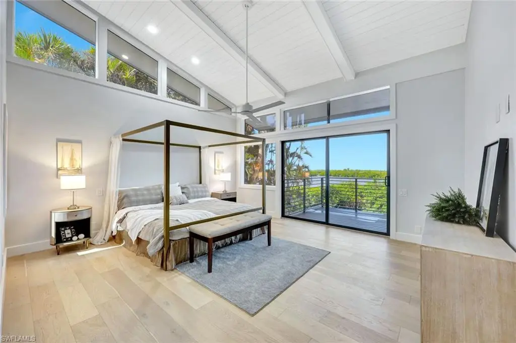 PRICE REDUCTION Please Bring Your Offers! Set within the serene enclave of Heron's Landing along the unspoiled waters of Clam Bayou, this extraordinary waterfront residence is a true architectural gem with furnishings negotiable. Originally envisioned in the spirit of Frank Lloyd Wright's Prairie-style design, the home reflects a deep connection to its natural surroundings through clean horizontal lines, expansive overhangs, and thoughtfully framed views that invite the outdoors in. Elegantly spanning over 3,000 square feet, the main level features four beautifully appointed bedrooms, three full bathrooms, and a powder room, offering both refined comfort and effortless flow. The primary suite is a sanctuary of its own, complete with dual walk-in closets, a spa-like soaking tub, and a luxurious dual-head shower. Two guest suites each enjoy private en suite baths, while a fourth bedroom provides double closets and serene treetop views. Graceful soaring ceilings and walls of glass allow natural light to cascade through the interiors, highlighting the architectural artistry and drawing focus to the lush mangroves and tranquil waters beyond. A private elevator ensures seamless movement between levels, adding ease and elegance to daily living. The heart of the home the chef's kitchen combines striking aesthetics with culinary functionality. Outfitted with a waterfall-edge quartz island, sleek gloss cabinetry, top-tier Thermador appliances, and a pot filler faucet, it's as well suited for quiet mornings as it is for lavish entertaining. Nearby, the laundry room offers abundant built-in storage and a deep utility sink for added practicality. The lower level features a 2-car garage and three versatile bonus rooms, one with an en suite bathùperfect as a studio, fitness room, or guest retreat. Outdoors, a saltwater pool and spa invite restful afternoons and al fresco evenings beneath the stars, framed by the natural beauty of Sanibel Island. Tucked along the peaceful edge of Clam Bayou, this residence captures enchanting views at every turnùimagine sipping coffee as herons glide across the water, or launching your kayak from the shoreline for an afternoon paddle through protected waters. This is more than a homeùit is an experience in graceful coastal living, where architectural sophistication and nature exist in perfect harmony. Opportunities like this are rare; schedule your private showing and discover the soul of Sanibel living.