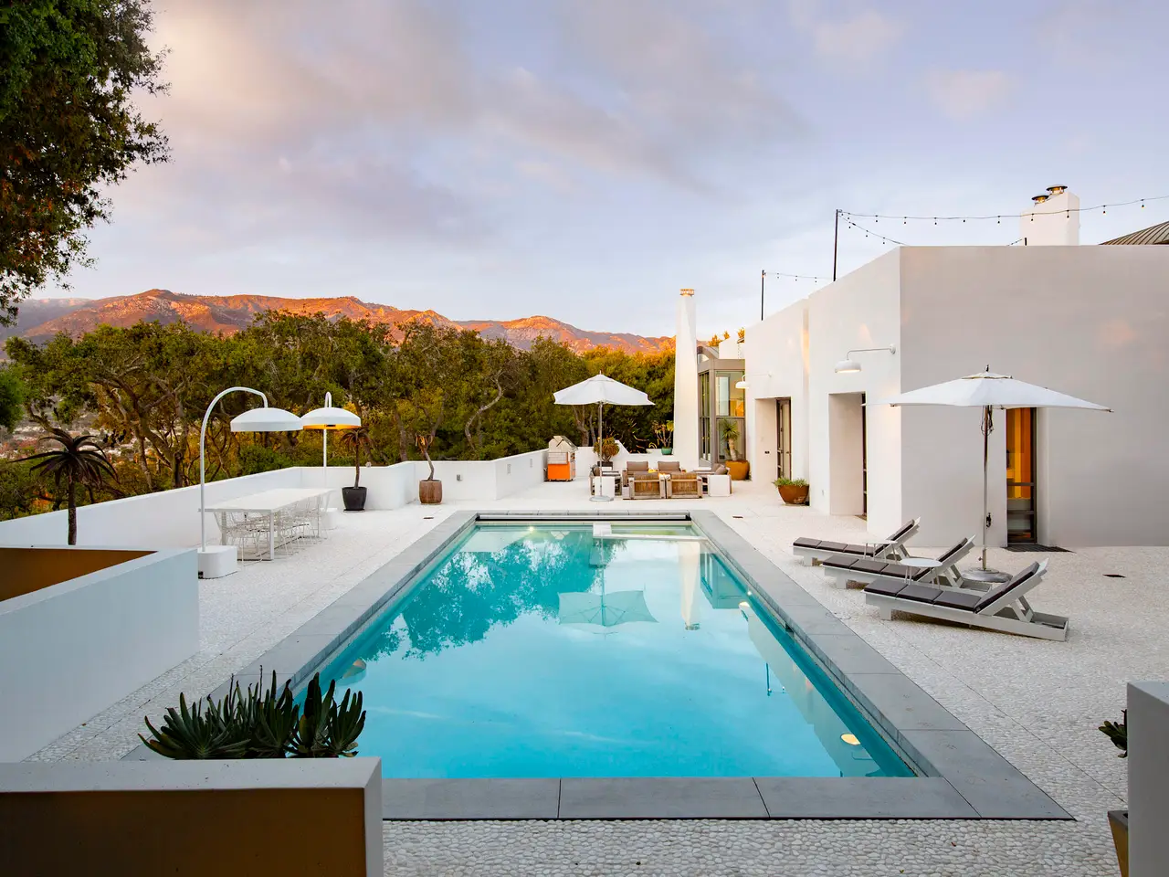This elegantly and fully remodeled contemporary estate is a masterclass in modern design. Sweeping mountain views, incredible natural light, and striking volume conjure the sense of a zen retreat. Set on 2.39 acres, this home seamlessly blends modern luxury with indoor-outdoor living. Floor-to-ceiling windows frame breathtaking views, while expansive terraces, a newly rebuilt pool, and a rooftop deck offer stunning spaces to relax and entertain. The reimagined kitchen/family room is the heart of the home, featuring custom Leicht cabinetry, 3 spacious islands, brand new luxe appliances and lighting. A 3,000-bottle wine cellar, serene primary suite, and state-of-the-art upgrades elevate this stunning property. A rare blend of style and craftsmanship, this is Hope Ranch living at its finest.