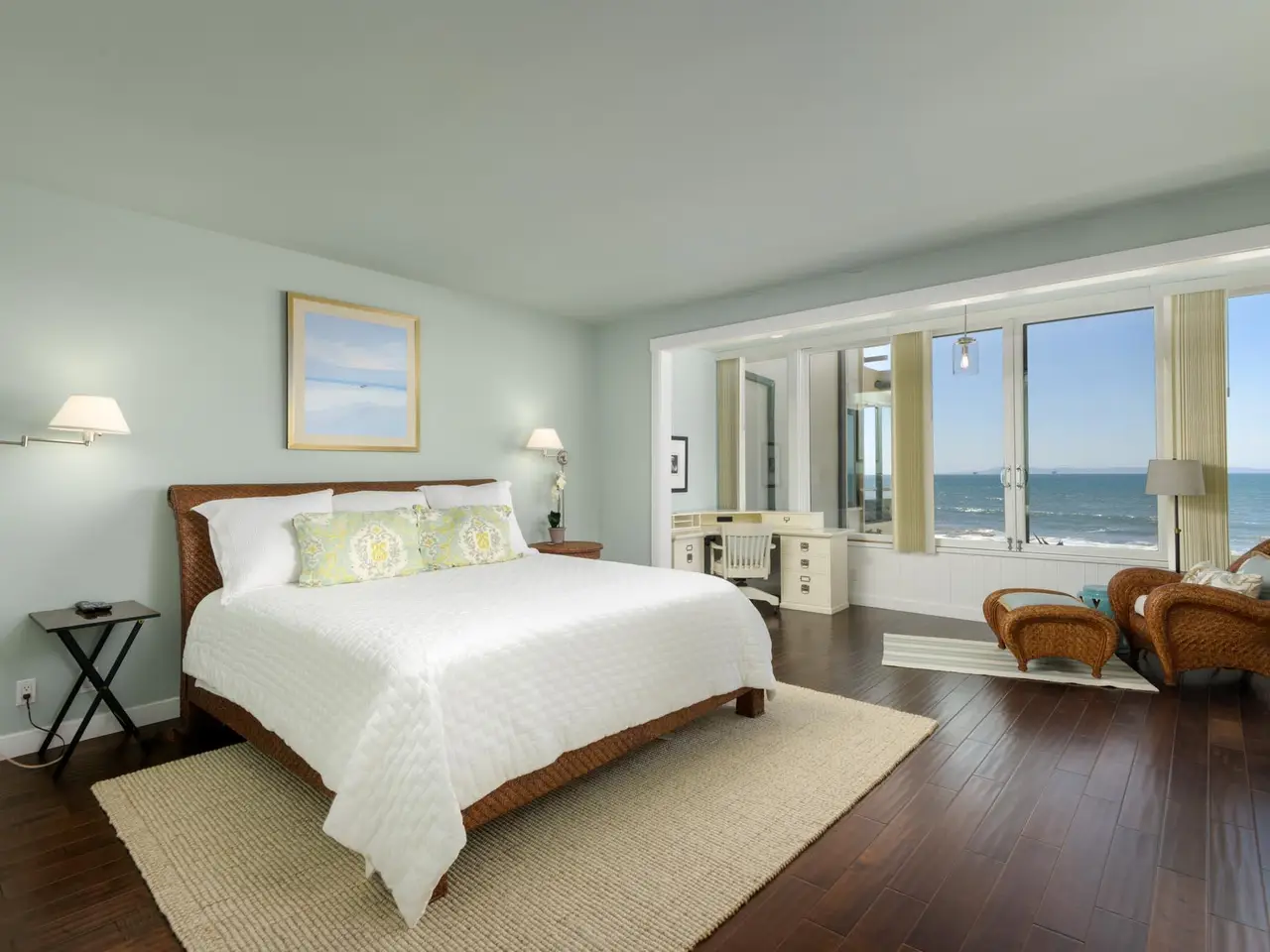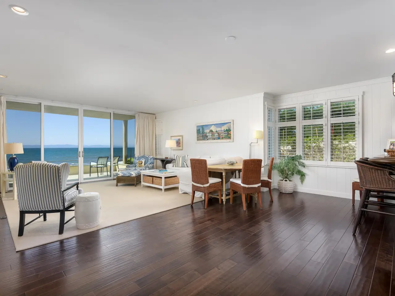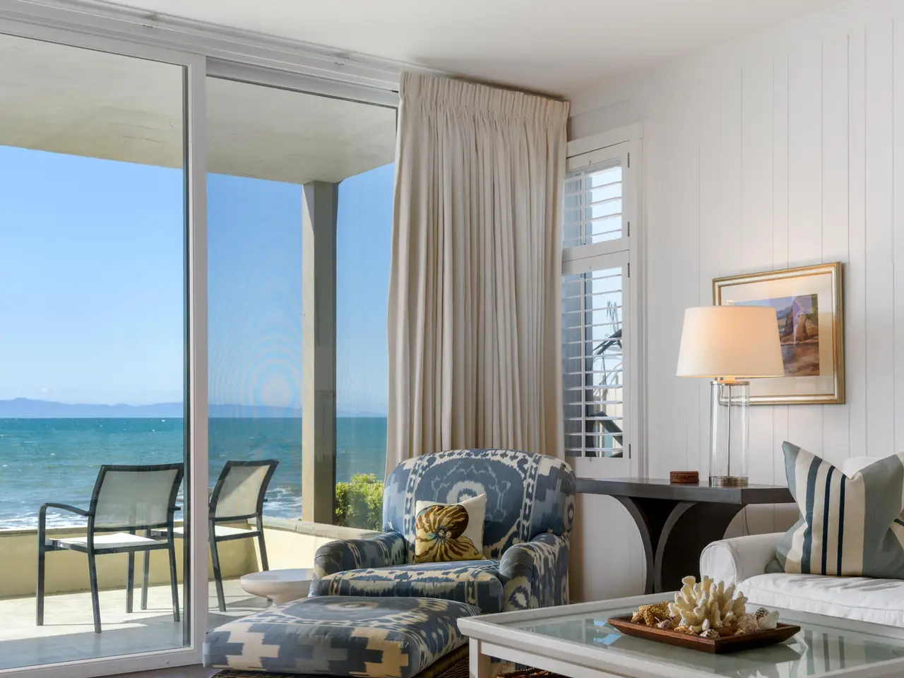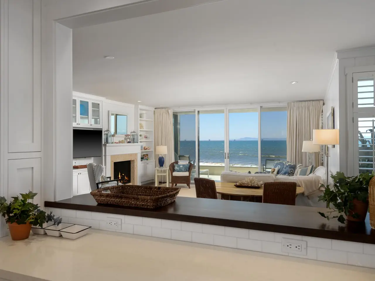 Welcome to one of the most sought-after oceanfront locations in Montecito--an exceptional ground-floor condo in the prestigious Bonnymede community. Perfectly positioned on the coveted southwest corner, this residence has walk-out access to the beach and sits directly adjacent to the iconic Coral Casino and offers uninterrupted views of the Pacific Ocean and Channel Islands. Step inside to an expansive open-concept layout, where the light-filled living room with a cozy fireplace seamlessly flows into a beautifully remodeled gourmet kitchen. Designed with both elegance and comfort in mind, the condo has been fully renovated in a timeless Cape Cod beach style by renowned designer Dick Meyn, combining relaxed coastal charm with refined finishes. Wake up to breathtaking ocean vistas from from the spacious primary bedroom and enjoy the soothing sounds of waves just steps away. The home features two bedrooms and two luxurious bathrooms, thoughtfully appointed to enhance the sense of peace and retreat. Additional highlights include a private two-car garage, exclusive access to the beach, and resort-style amenities such as a sparkling community pool and well-maintained tennis court. Whether you're looking for a full-time residence or a serene getaway, this once in a generation opportunity to acquire one of the most coveted locations in Bonnymede, offers the ultimate in beachfront living.