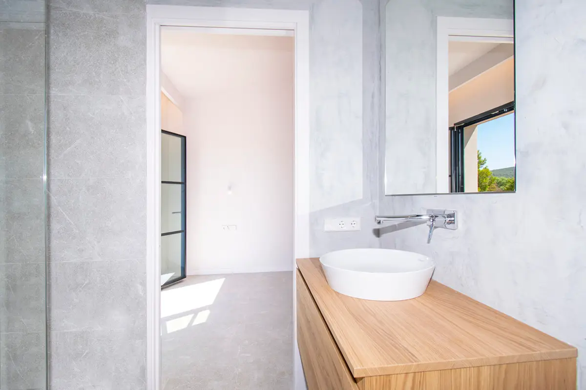 This newly built finca in the immediate vicinity of Santa Maria and therefore also close to Palma was recently completed and offers all the amenities that one would expect in this segment. A spacious building with many advantages, embedded in a beautifully landscaped garden with a pool, terraces and a sheltered, covered terrace with an outdoor kitchen. The living-dining area with the integrated kitchen and the large window over two floors lets a lot of light into the house and creates a beautiful atmosphere. The house has a total of five double bedrooms, each with its own en-suite bathroom. The property also has a complete basement and the double garage is also located here. The technical equipment includes high-quality branded appliances, integrated air conditioning, and underfloor heating which is operated via a heat pump. A viewing is recommended in any case. Parking Space 3 x garages