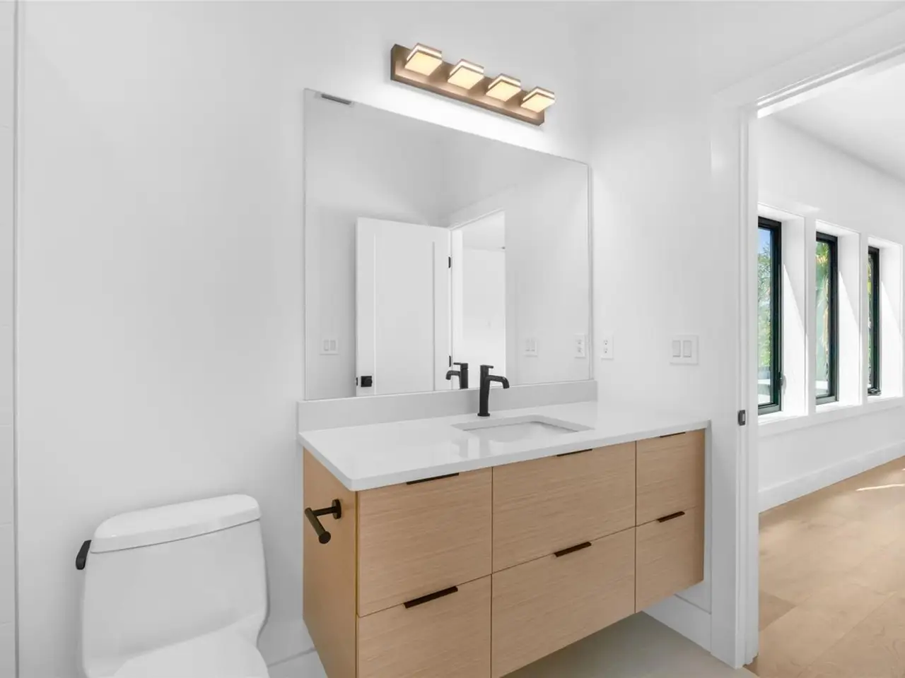 Modern refinement blends seamlessly with elegance and comfort in this stunning, new construction masterpiece from TDI Coastal Homes. An ideal location, this home is situated 10 minutes from the world famous Crescent beach on Siesta Key and just minutes to downtown Sarasota. Peace of mind is assured as this property is not in a flood zone and is perched a safe 21 feet above sea level. With a front facade that boasts clean lines and a captivating mix of wood, stone and a unique commercial style glass garage door, your curb appeal will be undeniable as you welcome family and friends into your sophisticated sanctuary. Cutting edge material and design does not sacrifice quality and durability as the engineered hardwood floors throughout the first floor create the perfect foundation for the exquisite open concept design. A chef's kitchen, featuring Thermador appliances, quartz countertops, an oversized island, intriguing fixtures and a walk-in pantry, lies at the heart of the home and is undoubtedly where your guests will gather to enjoy your inspired culinary creations. Find respite in your primary suite that will envelope you in luxury as you rest and recharge from your days filled with Suncoast adventures. The first floor also offers a home office, mud room, laundry space and multiple sets of sliders to the outdoor oasis consisting of a spacious lanai with a fully appointed outdoor kitchen and multiple seating areas. The refreshing pool will keep you comfortable on sunny afternoons while the warm spa will soothe as the day fades into night. The second floor grants room for guests or additional personal space with three generous bedrooms; one bedroom with a private bath and two that share an adjoining bath. Additional features to include a mosquito misting system for added comfort, a two car garage, and a reverse osmosis system for clean, filtered ice and water. With an incredible location in a vibrant community and top notch schools just around the corner, this home offers the best of Sarasota, brimming with culture, recreation, convenience and the quintessential Florida lifestyle. TDI Coastal Homes creates homes to meet your lifestyle through innovative design and meticulous attention to creating a space that feels extravagant yet effortless.