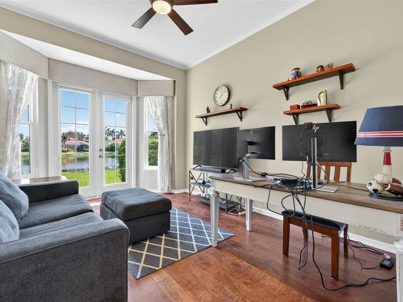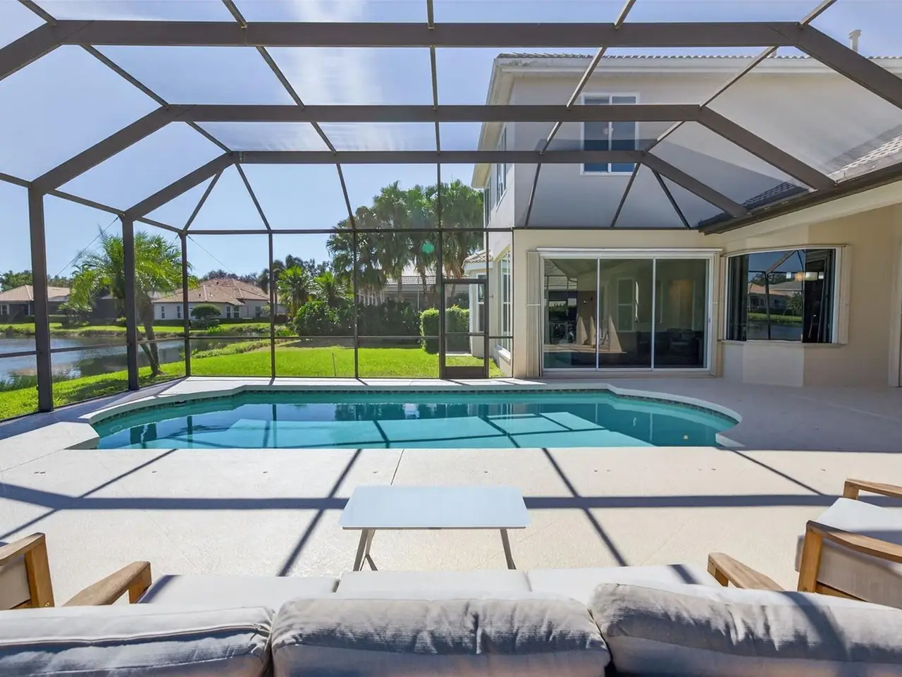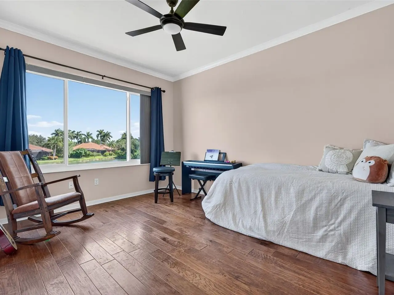 Enjoy peaceful premium lake views and over 3,500 sq. ft. of elegant living space, designed for both comfort and entertaining. This 4 bedroom, plus 2 office/flex rooms, 3 bath home offers a great floor plan for many uses. The main level includes the primary suite, private guest room, plus office while the second floor adds a spacious bonus/media room plus two additional bedrooms and an office/flex room. The home features hurricane-impact windows, wide-plank engineered hardwood flooring and lots of natural light. A spacious kitchen with an oversized island, granite counters, and gas range. The expansive pool area overlooks the shimmering lake, offering a serene backdrop from nearly every room. A 3-car garage, and spacious lot complete the package. Silver Oak is an exclusive sought-after enclave of luxury homes known for its lush landscaping and mature oaks. A gated community, and ideal Sarasota location minutes from world-class beaches, dining, shopping, and the Legacy Trail. Please See Video Walkthrough (Virtual Tour 1) for a comprehensive view of the home!