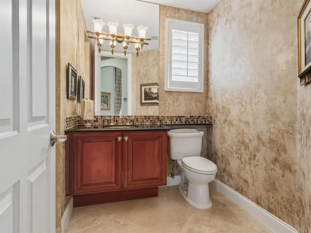 Lakefront masterpiece in the prestigious Founders Club. Crafted by renowned builder Todd Johnston, this 5 bedroom, 5.5 bathroom home offers 6,800 square feet of sophisticated living space. Luxurious craftsmanship abounds as you enter through the grand formal double-door entry featuring a mosaic marble inlay opening to coffered ceilings soaring above elegant hardwood and travertine marble floors throughout. Extensive millwork and hand built cabinetry highlight quality at every step. The gourmet kitchen boasts double Sub-Zero refrigerators, a six-burner Viking gas range with griddle, and a dedicated wine room with 100 bottle storage and double wine fridges. The luxurious owners wing encompasses the primary bedroom, palatial bathroom, two large walk-in closets, and two additional bonus rooms perfect for a nursery, wellness space, secondary office, or additional living space. A spacious home theater is adjacent to this luxurious wing. Also on the first floor you'll find a large and sophisticated study with exquisitely crafted cabinetry and built-in book case for professionals woking from home or private reading space. Guests will appreciate the first-floor guest suite with en suite bathroom, wet bar, and refrigerator. The downstairs bonus room offers flexibility as a fifth bedroom or game room. Upstairs are two more bedrooms each with their own bathroom as well as a large family room and balcony. This estate lot brings sweeping views of the lake and golf course from the manicured lawns and the heated saltwater pool and spa surrounded by tumbled marble pavers and a fully equipped outdoor kitchen - ideal for entertaining. A whole house generator, new roof (2020) and newer AC units. Residents of The Founders Club enjoy world-class amenities, including an 18-hole Robert Trent Jones Jr. golf course, elegant clubhouse with dining, fitness center, tennis and basketball courts, sand volleyball, and scenic walking trails. Don't miss the opportunity to make this magnificent home yours!