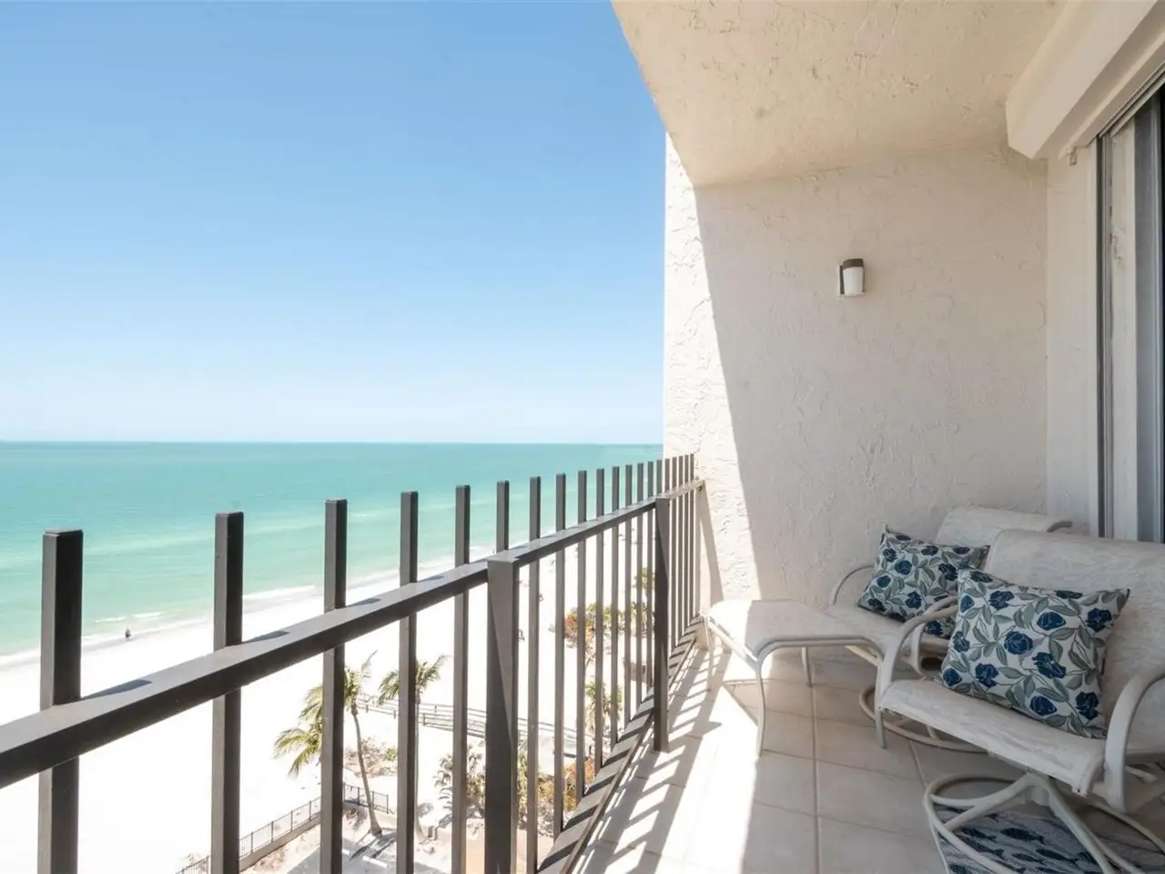 Spectacular Panoramic Ocean Views Await you from this DIRECT BEACHFRONT corner unit with both southside and eastside balconies. This spacious light and bright 2 bed/2 bath unit with open floor plan offers 1,536 sf of living space and is located at The Lido Beach Club on beautiful Lido Key. Wake up each morning to sweeping Gulf views and the soothing sound of waves. Enjoy miles of pristine soft white sand and shimmering aqua waters from two private balconies - perfect for watching Sarasota's world-famous sunsets! This resort-style community offers every amenity imaginable: a sparkling pool, a pickleball court, a state-of-the-art fitness center, and a spacious community meeting room with a full kitchen ideal for Super Bowl & Holiday events. Secure access, on-site management, and plenty of guest and vendor parking add peace of mind. Step outside to embrace the Florida lifestyle - swim, boat, kayak, or simply relax on the beach with your favorite drink. Hop aboard the complimentary Wave Runner Trolley just steps away and explore nearby St. Armands Circle with its world-class shops, fine dining, and lively events. You are minutes to Sarasota's vibrant arts scene, renowned live theaters, and championship golf courses. This is coastal living at its finest. Come relax and enjoy the lifestyle you have always dreamed of!