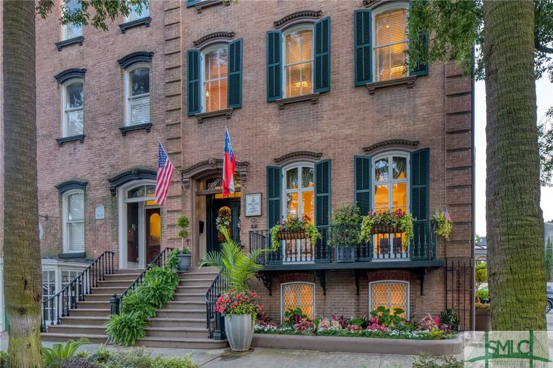 This classic Savannah gray brick townhome, located in the heart of Savannah's National Historic Landmark District, was built in 1871 as one of the premier single-family homes of its time. This stately residence has been exquisitely restored over the years and features many original stunning period details, including spacious parlors, fireplaces, high ceilings, original windows, hardwood floors and beautiful plaster moldings. Additional features include a carriage house that offers garage parking for 3 cars with apartment above & elevator access to all floors in the main residence. Currently operating as an inn, this residence has 10 en-suites and offers a highly desirable separate garden-level living space and carriage house apartment, each with its own private access. Property holds active Non-Owner Occupied STVR certificates that transfer with the sale of the property to enable the property to be rented on a s-t basis. Walking distance to Forsyth Park, Bull Street, galleries and restaurants.