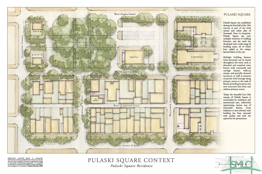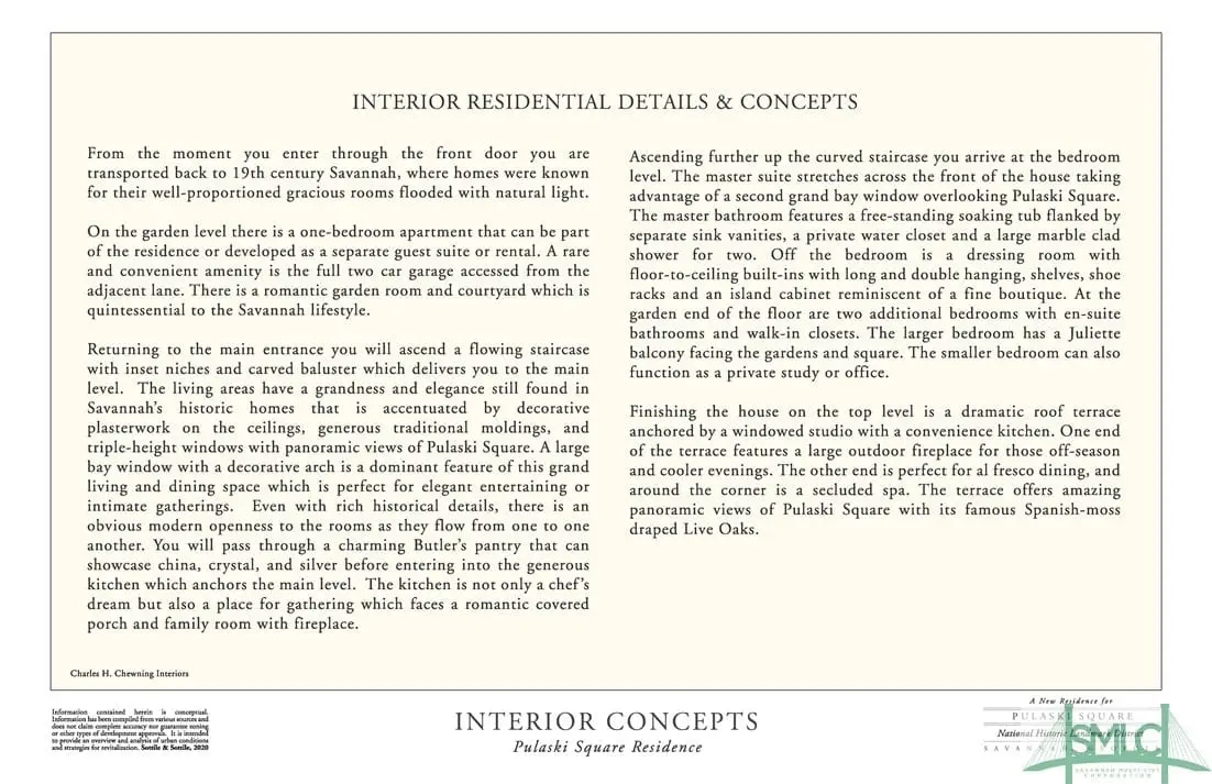 Once-in-a-lifetime opportunity to custom design a mansion on Pulaski Square. This home is made possible by a team of Sottile and Sottile, Charles H. Chewning Interiors, and JAK Homes. You will have the unique opportunity to work in tandem with the builder and interior designer to customize the interior of what will be the finest new build added to Savannah's historic fabric in the last century. The living areas will have a grandness and elegance found in Savannah's historic homes, accentuated by decorative plasterwork on the ceilings, generous traditional moldings, and triple-height windows with panoramic views of Pulaski Square. Even with rich historical details, there is an obvious modern openness to the rooms as they flow from one to the other. The top level is a dramatic roof terrace with a large outdoor fireplace, a secluded spa, and panoramic view of Pulaski Square. House to be completed within 24 months of a signed contract.