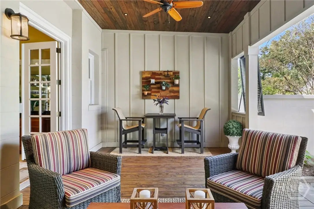 Escape to this stunning, pristine Savannah home, where historic charm meets modern luxury. The beautiful stucco exterior and inviting entryway set the stage for a truly elegant experience. Inside, you'll find an open kitchen and dining area perfect for entertaining. The gourmet kitchen, with its large island and stainless steel appliances, flows seamlessly into the inviting dining space. After dinner, retreat to the spacious living room, featuring a beautiful fireplace and large windows that fill the space with natural light. The serene primary suite offers a cozy fireplace and a luxurious ensuite bathroom, ensuring a private and peaceful sanctuary.Enjoy the convenience of an in-home elevator and the tranquility of a private, two-tiered rear courtyard, an ideal oasis for morning coffee or evening cocktails. A charming storage structure at the back of the property offers additional storage or potential for a studio. This home isn't just a place to live; it's a lifestyle. Imagine yourself savoring the best of Savannah living in a home that caters to your every need. This is more than a listingit's your next chapter. Don't miss the opportunity to see it for yourself.