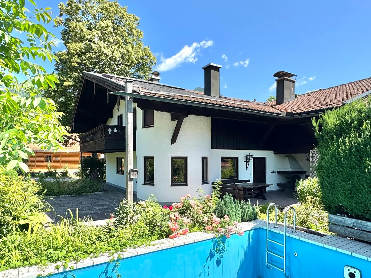 For sale is a spacious multi-generational home built in 1979 with a total living space of approximately 320 m², a total usable space of 360 m², and a plot of approximately 829 m². The property is in good condition but requires renovation, but its solid construction offers a wide range of design options. A permit for a large carport has already been granted, but this was not realized. The house, which is ideal for multi-generational use, is divided into two residential units, each spanning two floors. The smaller unit offers approximately 100 m² of living space, while the larger unit, at approximately 220 m², offers more space for a larger family. A floor space calculation is currently being prepared. A total of nine rooms are available to the residents, including six bedrooms and four bathrooms, allowing for a comfortable layout. A standout feature of the property are its four balconies, each offering impressive mountain views, thus providing the ideal retreat for relaxing outdoors. The spacious terraces on the ground floor and an additional living area in the basement with a terrace, bathroom, and adjoining sauna expand the living space and offer flexible usage options for leisure and relaxation. The house is equipped with underfloor heating, which provides pleasant warmth even in the colder months. Several large, licensed fireplaces offer additional heating options and create a cozy living atmosphere. The property's outdoor area includes a garden with an outdoor pool, providing refreshment in the summer months. The property itself is partially protected from prying eyes, ensuring maximum privacy. Despite the upcoming modernization measures, the property offers a very well-preserved structural fabric, providing a solid foundation for individual redesign wishes. This property represents an excellent opportunity to invest in a spacious, versatile living solution that impresses with its flexibility and location. We cordially invite you to arrange a personal viewing to gain your own impression of the possibilities and potential of this property.