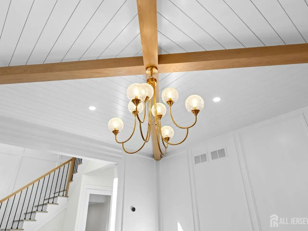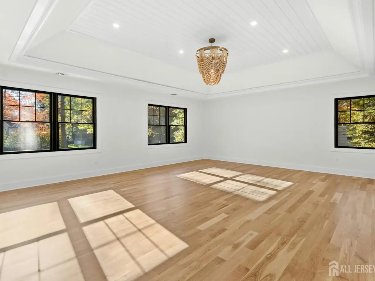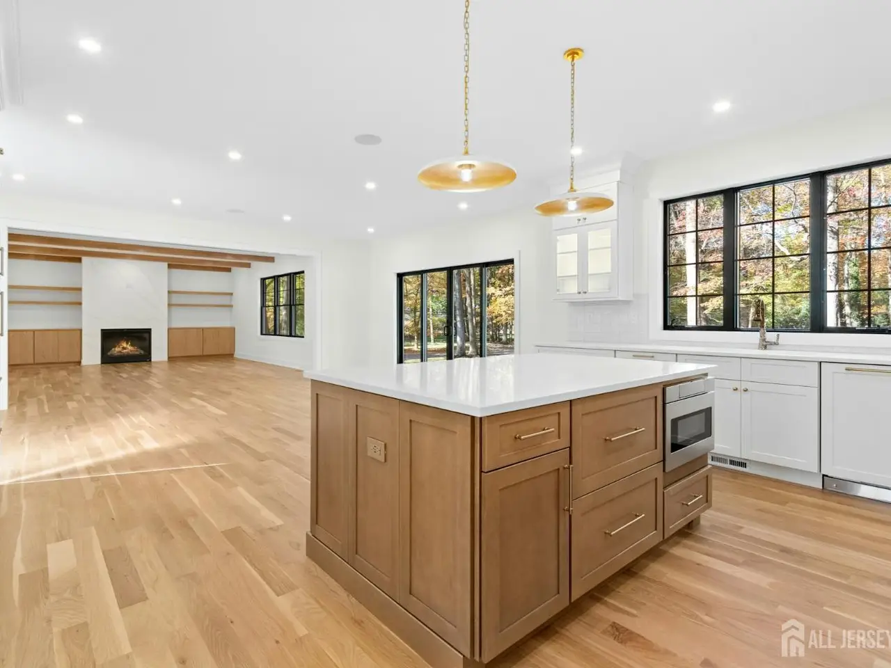 Welcome to a residence that redefines custom living. This brand-new 7,500+ square foot estate set on a level .95 acre lot is not just a house...it's a statement of vision, timeless design, and craftsmanship. Perfectly situated in one of Scotch Plains' most desirable neighborhoods, this home seamlessly blends modern sophistication with classic architectural elegance. Step inside through the grand double doors into a soaring two-story foyer filled with natural light and extraordinary attention to detail. The main level features an open-concept layout centered around a state-of-the-art chef's kitchen with Thermador appliances, quartz countertops and custom cabinetry. An adjoining prep kitchen is ideal for entertaining, storage, and simply keeping the main kitchen pristine. The en suite bedroom on this main level provides flexibility for guests, an au pair, or multigenerational living. Upstairs, the luxurious primary suite includes a spa-like bath with heated floors, and two individual walk-in showers...a rare indulgence. Two bedrooms are connected by a Jack and Jill bath while the remaining bedroom enjoys a private bath. The finished attic with full bath provides options for a second office, gym, quiet retreat. You will find a sprawling entertainment area in the basement anchored by a custom bar, a full bath, and a bedroom with an oversized egress window. Enjoy an ideal canvas for refined outdoor living and prepare to design the ultimate outdoor entertaining space. With the paver patio, full irrigation system, and fresh sod, the foundation for your dream outdoor oasis awaits. The interior details are both refined and enduring: 4 white oak flooring, white oak wood beam ceilings, extensive custom millwork, Andersen 400 Series black windows, hand-selected designer lighting, Sonos sound system, Nest thermostats, Kohler fixtures, and unique exquisite tile selections.This home provides for a wonderfully elevated lifestyle - a truly extraordinary opportunity in Scotch Plains.