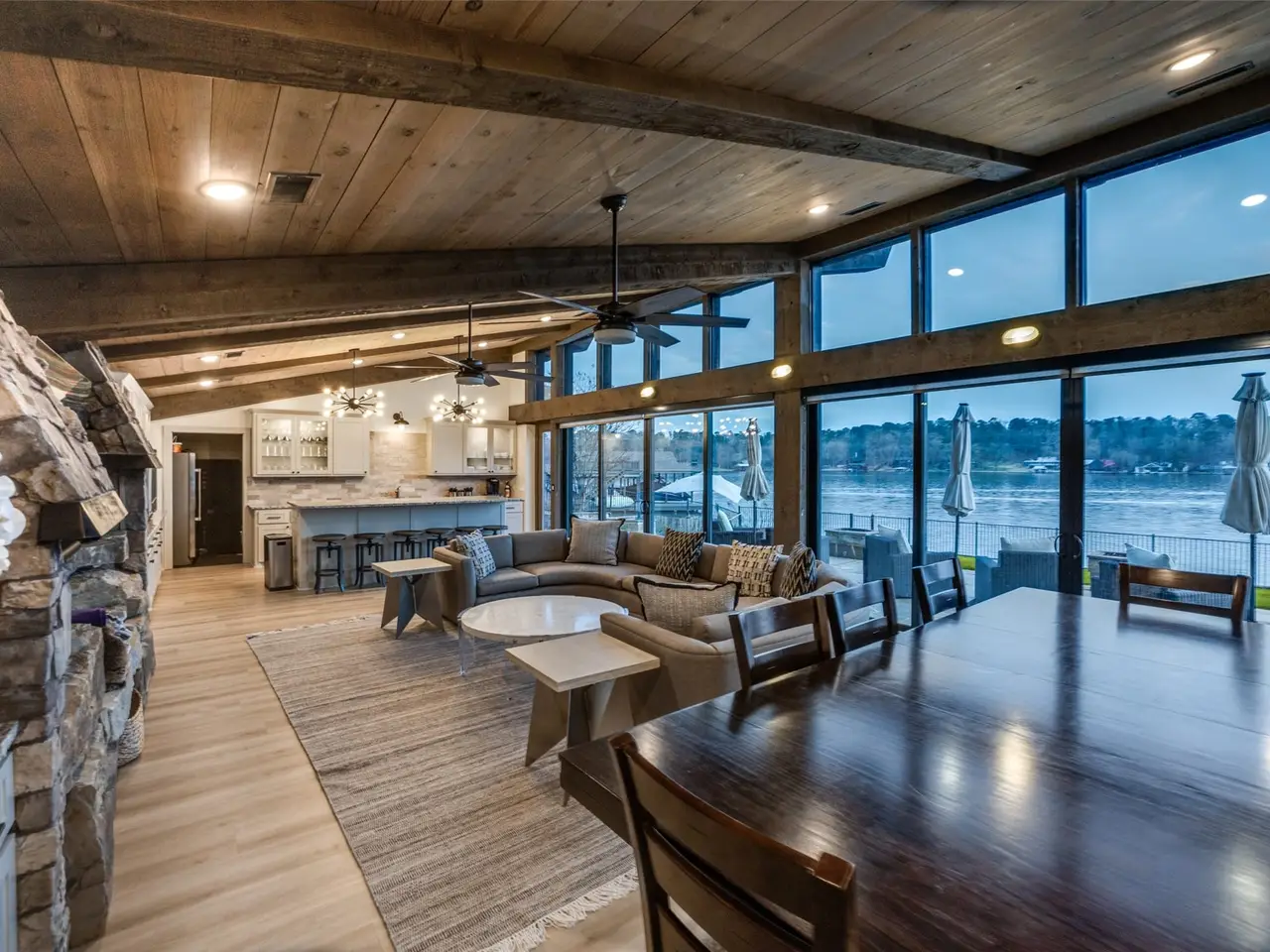 STUNNING & BEAUTIFULLY UPDATED multi-generational property HAS IT ALL & is on 1 acre of gated lakefront accommodating 20+ family & friends! Over 6400 sq ft of living space includes Main House (3602), Pool House-Great Room (1077), 2 Story Guest Carriage House (1236) & Guest Room over garage (499)! Main house has gorgeous kitchen and living room with lake view, 3 bedrooms, game room, loft & wrap around porch! Amazing pool house with wall of windows has full kitchen, plus bath & is perfect for entertaining & opens to amazing pool & outdoor fireplace! 2 story Carriage House has kitchenette, living, full bath & bedroom on first floor. Second floor offers king bedroom, two sets of full sized built in bunk beds, full bath, & beautiful cathedral ceiling & windows with lake view! Guest room & bath over 2 car garage! Boat house for 2 boats-2 jet skis has a sitting & sun deck! Minutes to charming restaurants & shops in Mt Vernon & Winnsboro, The Cove Marina & Restaurant. Quick access from I30.