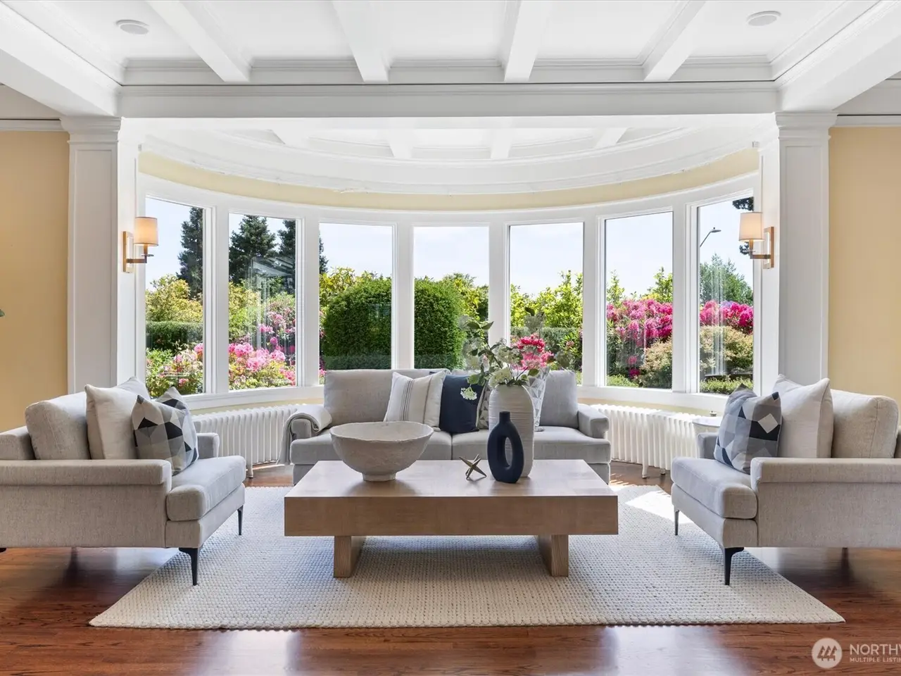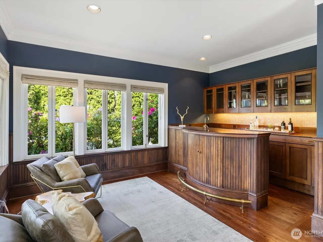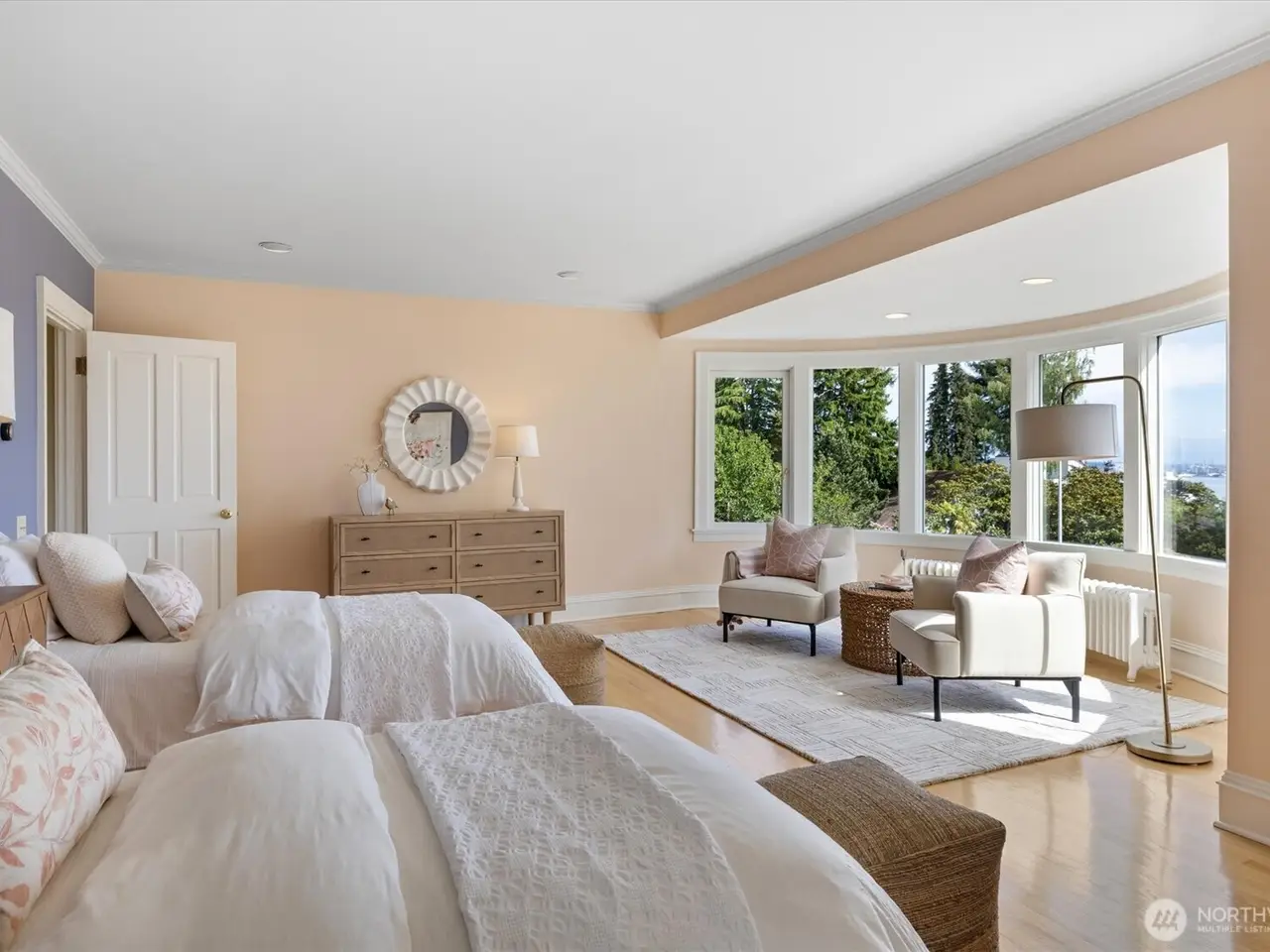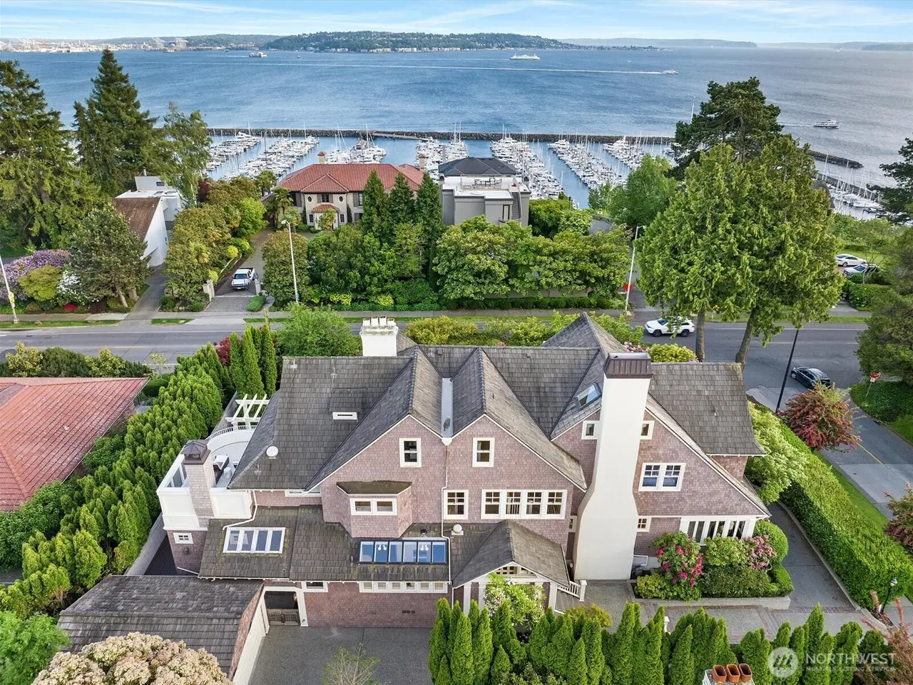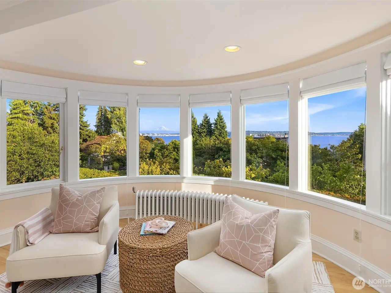 A true legacy home. This estate has been beautifully restored and updated with modern amenities. Surrounded by curved windows and ever-changing vistas, the light-filled rooms flow seamlessly for entertaining and intimate gatherings. Spacious, double-ensuite primary bedroom and generously sized additional bedrooms upstairs. 180-degree views of Seattle skyline, Elliot Bay, and majestic Mount Rainier on the horizon. Fully renovated lower level includes all new mechanicals, spa room, designer kitchenette with Sub-Zero appliances and a top-of-the-line theater and game room. A rare blend of heritage and coveted location, this remarkable home is not only a piece of Seattle's history, but also a front-row seat to its most iconic scenery.