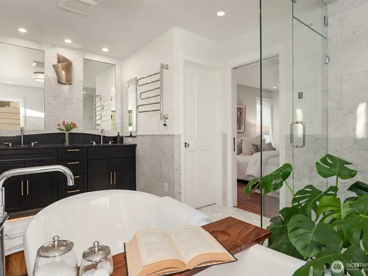 Completely rebuilt home offers an unparalleled blend of luxury, sophistication, and artisan craftsmanship. Throughout the home, you'll discover masterful woodwork, premium hardware, and designer fixtures. Gourmet kitchen is a chef's dream, featuring custom cabinetry, rich soapstone countertops, and top-of-the-line appliances from Wolf, Sub-Zero, and Asko. The lower level offers a generously sized family room, perfect for a home theater, game room, or hobby space. Step into the inviting backyard with patio including BBQ grill, custom brick fireplace, and pizza oven. Located in Carleton Park within Magnolia and just minutes to Magnolia Village, with inspiring views of the Seattle skyline, Puget Sound, and majestic Mount Rainier.