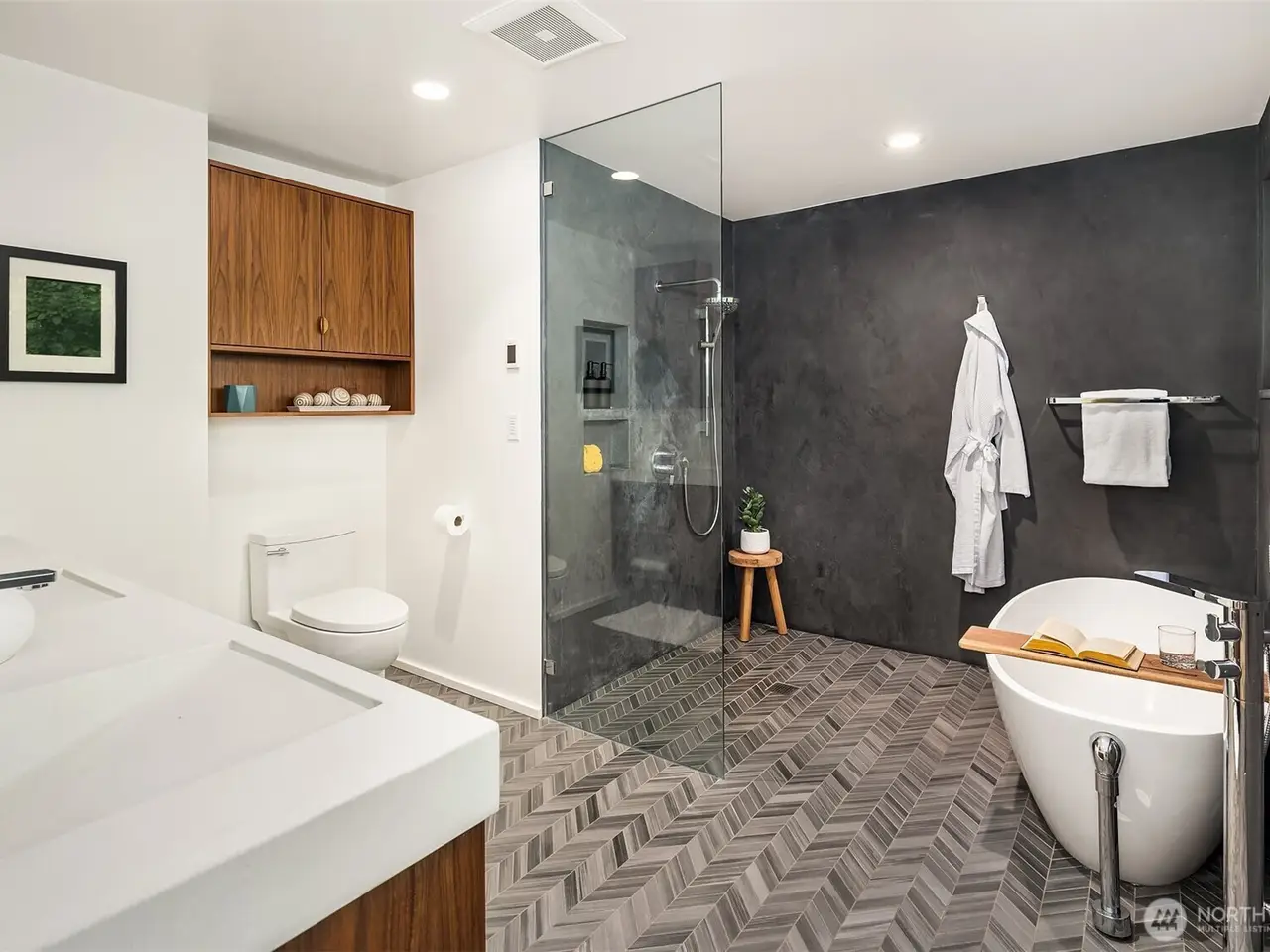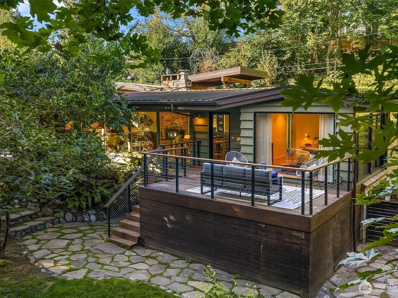 Nestled along a lush greenbelt between Magnolia Blvd and Perkins Lane, this Palm Springs-inspired midcentury modern has been reimagined with a studs out remodel in 2019. Inside, every detail is thoughtfully designed—from custom cabinetry with hidden coffee station and integrated charging ports to a dramatic wall of floor-to-ceiling windows that seamlessly connect interior living spaces to lush outdoor gardens with year-round blooming interest. Outside, bird enthusiasts will enjoy visits from the eagles, owls and Cooper hawks before retreating into the spa-like primary suite and sounds of the babbling brook just outside. BLISS! Just down the street, enjoy Elliott Bay beach walks and waterfront exploration. Come visit this magical setting.